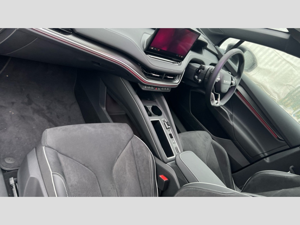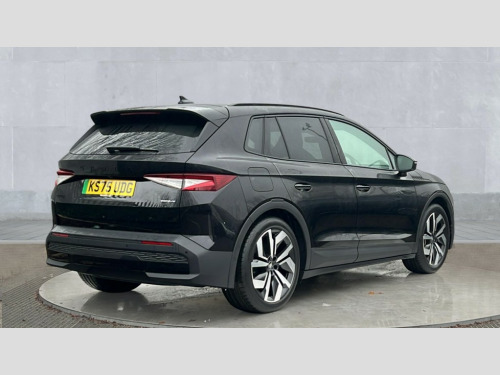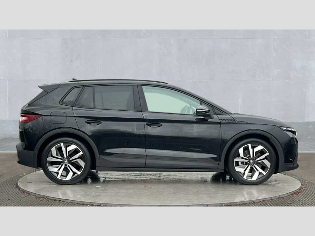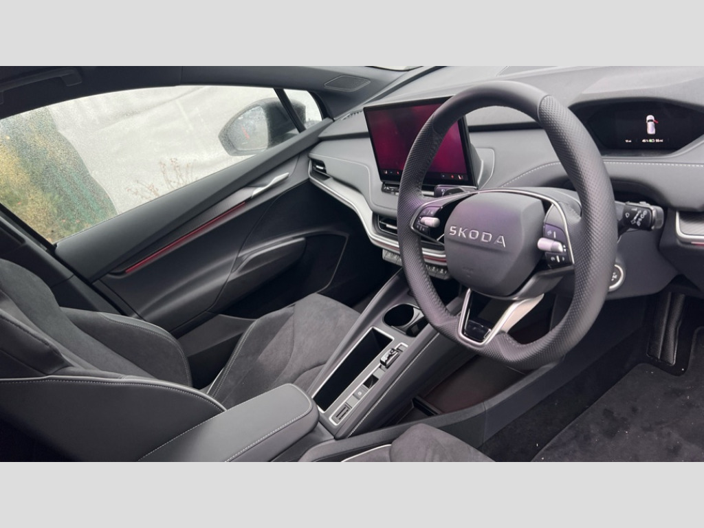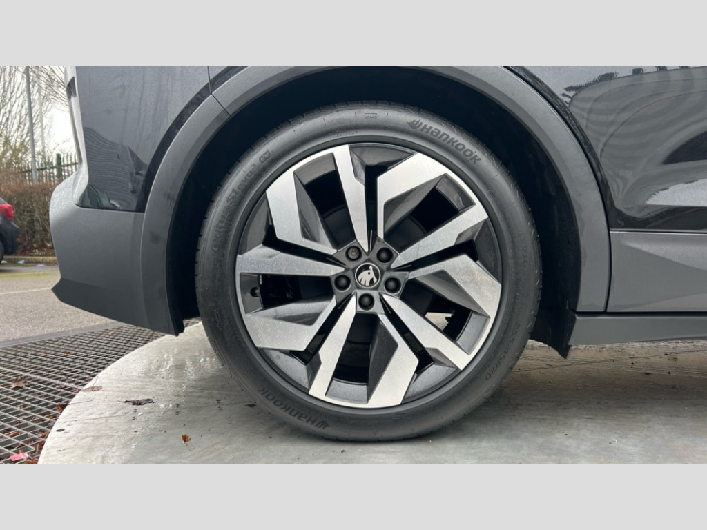 Skoda Elroq 210kW 85 SportLine 82kWh 5dr Auto 13" touchscreen display, 15W wireless charging with cooling function, Blind spot detection, Bluetooth, Digital cockpit, Drive mode select, Driver alert control, eCall emergency system, Electronic engine sound, Emergency steering support with turn assist, Front parking sensors, Gesture control, Predictive adaptive cruise control with traffic jam assist, Progressive dynamic steering, Rear parking sensors, Rear view camera, Satellite navigation system, Skoda Connect iV remote services with charging, air conditioning and smart schedules, Speed assist, Traffic sign recognition, Travel assist plus - emergency assist, lane assist plus with narrow lane assist, urban evasive steering support, Voice control, Washer fluid level indicator, Wi-Fi hotspot, Wireless smartlink, 175 kW DC charging, 6m mode 3 cable (32A), Sports suspension, 45W USB-C ports (charging + data) front and rear, 8 Speakers, DAB Digital radio, Black door mirrors heated, electrically adjustable, folding and auto dimming with boarding spots and welcome logo, Frameless auto dimming rear view mirror, Gloss black roof rails, Gloss black tailgate lettering, Gloss black window surround, Heat insulating glass windscreen, LED 3rd brake light, LED daytime running lights, Light and rain sensors, Light assistant including coming home and leaving function, Manually operated boot, Preparation for tow bar, Privacy glass and acoustic side windows, Rear side wing doors, Rear spoiler, Rear window wiper with washer system and intermittent control, Side and rear windows in heat insulating glass, Sportline bumpers, 12V socket in boot, 1x umbrella, 3 rear headrests, 3 seat bench in 2nd row, 3 spoke leather heated sports multifunction steering wheel with paddles for recuperation level selection, Aluminium pedals, Boot lighting, Extended interior noise suspension, Folding boot cover, Front sport seats, Heated front seats, Integrated head restraints, Isofix child seat fittings in outer rear seats with top tether, Isofix child seat preparation for front passenger seat, LED ambient lighting, Manual lumbar support for front seats, Manually adjustable front seats, Single front passenger seat, SportLine design pack - Elroq, 3 point rear seatbelts, Crew protect assist, Driver and front passenger airbag with passenger airbag deactivation, Electric child locks, ESC (incl. ABS+MSR+ASR+EDS+HBA+DSR+RBS+MKB), Front assist with braking reaction to vehicles, pedestrians and cyclists, Front disc brakes, Front side airbags with curtain airbags and central interaction airbag, Rear drum brakes, Three point seatbelt in front, with pretensioner, lap belt pretensioner and height adjustment, Two tone horn, Tyre pressure monitoring system, Visual and acoustic seat belt reminder, Anti theft alarm system with interior monitoring, backup horn and towing protection, Central locking system with SAFE system, Keyless entry and start/stop system advanced with walk away locking, Anti-theft wheel bolts protection, Tyre repair kit