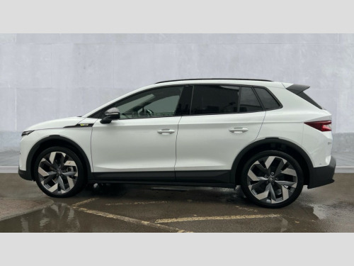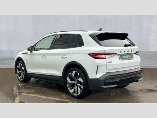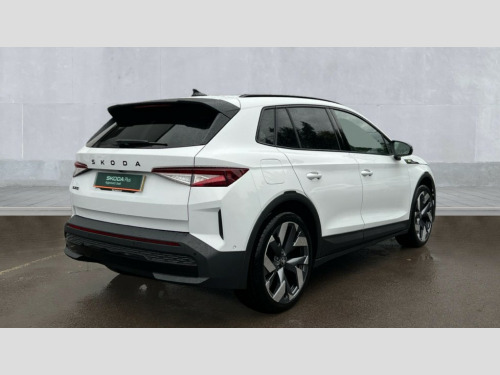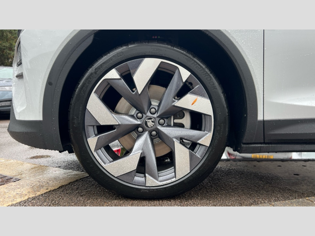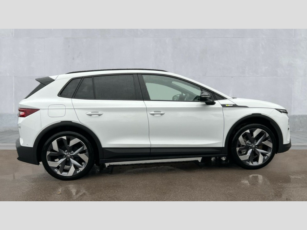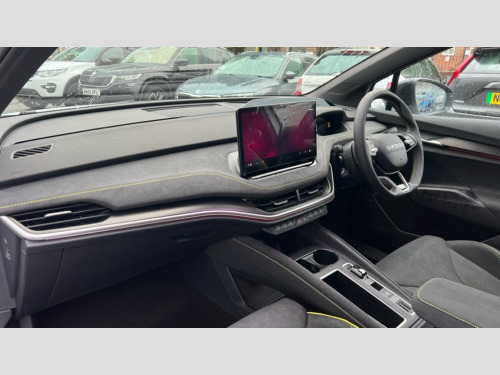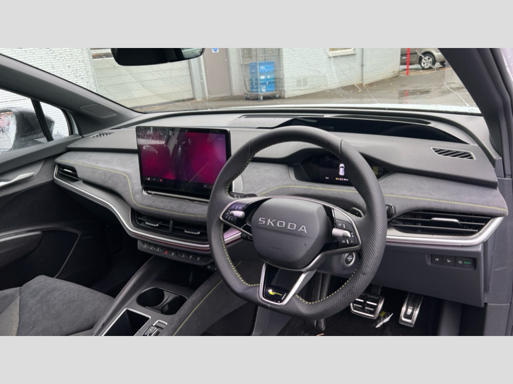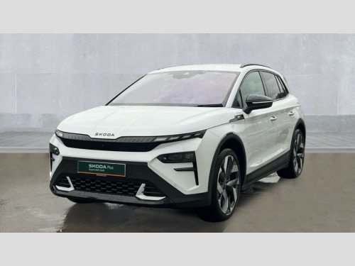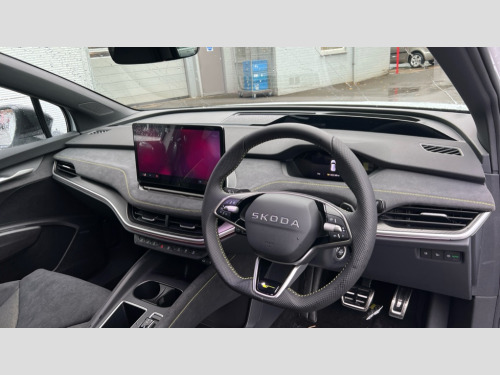 Skoda Elroq 250kW vRS 84kWh 4x4 5dr Auto 13" touchscreen display, 15W wireless charging with cooling function, Blind spot detection, Bluetooth, Digital cockpit, Drive mode select, Driver alert control, eCall emergency system, Electronic engine sound, Emergency steering support with turn assist, Front parking sensors, Gesture control, Predictive adaptive cruise control with traffic jam assist, Progressive dynamic steering, Rear parking sensors, Satellite navigation system, Skoda Connect iV remote services with charging, air conditioning and smart schedules, Speed assist, Traffic sign recognition, Travel assist plus - emergency assist, lane assist plus with narrow lane assist, urban evasive steering support, Voice control, Washer fluid level indicator, Wi-Fi hotspot, Wireless smartlink, 185kW DC charging capacity, 6m mode 3 cable (32A), Sports suspension, 45W USB-C ports (charging + data) front and rear, DAB Digital radio, Black door mirrors heated, electrically adjustable, folding and auto dimming with boarding spots and welcome logo, Black lettering on boot lid, Black rear bumpers, Black roof rails, Black window trims, Body colour door sills, Frameless auto dimming rear view mirror, Heat insulating glass windscreen, LED 3rd brake light, LED daytime running lights, Light and rain sensors, Light assistant including coming home and leaving function, Manually operated boot, Preparation for tow bar, Privacy glass and acoustic side windows, Rear side wing doors, Rear spoiler, Rear window wiper with washer system and intermittent control, Side and rear windows in heat insulating glass, vRS badge, vRS sports bumpers, 12V socket in boot, 1x umbrella, 3 rear headrests, 3 seat bench in 2nd row, Aluminium pedals, Boot lighting, Extended interior noise suspension, Folding boot cover, Front sport seats, Heated front seats, Illuminated tech deck, Integrated head restraints, Isofix child seat fittings in outer rear seats with top tether, Isofix child seat preparation for front passenger seat, LED ambient lighting, Single front passenger seat, Advanced package - Elroq, Drive pack - Elroq, vRS Lounge design selection pack - Elroq, 3 point rear seatbelts, Crew protect assist, Driver and front passenger airbag with passenger airbag deactivation, Electric child locks, ESC (incl. ABS+MSR+ASR+EDS+HBA+DSR+RBS+MKB), Front assist with braking reaction to vehicles, pedestrians and cyclists, Front disc brakes, Front side airbags with curtain airbags and central interaction airbag, Rear drum brakes, Three point seatbelt in front, with pretensioner, lap belt pretensioner and height adjustment, Two tone horn, Tyre pressure monitoring system, Visual and acoustic seat belt reminder, Anti theft alarm system with interior monitoring, backup horn and towing protection, Central locking system with SAFE system, Keyless entry and start/stop system advanced with walk away locking, Anti-theft wheel bolts protection, Tyre repair kit