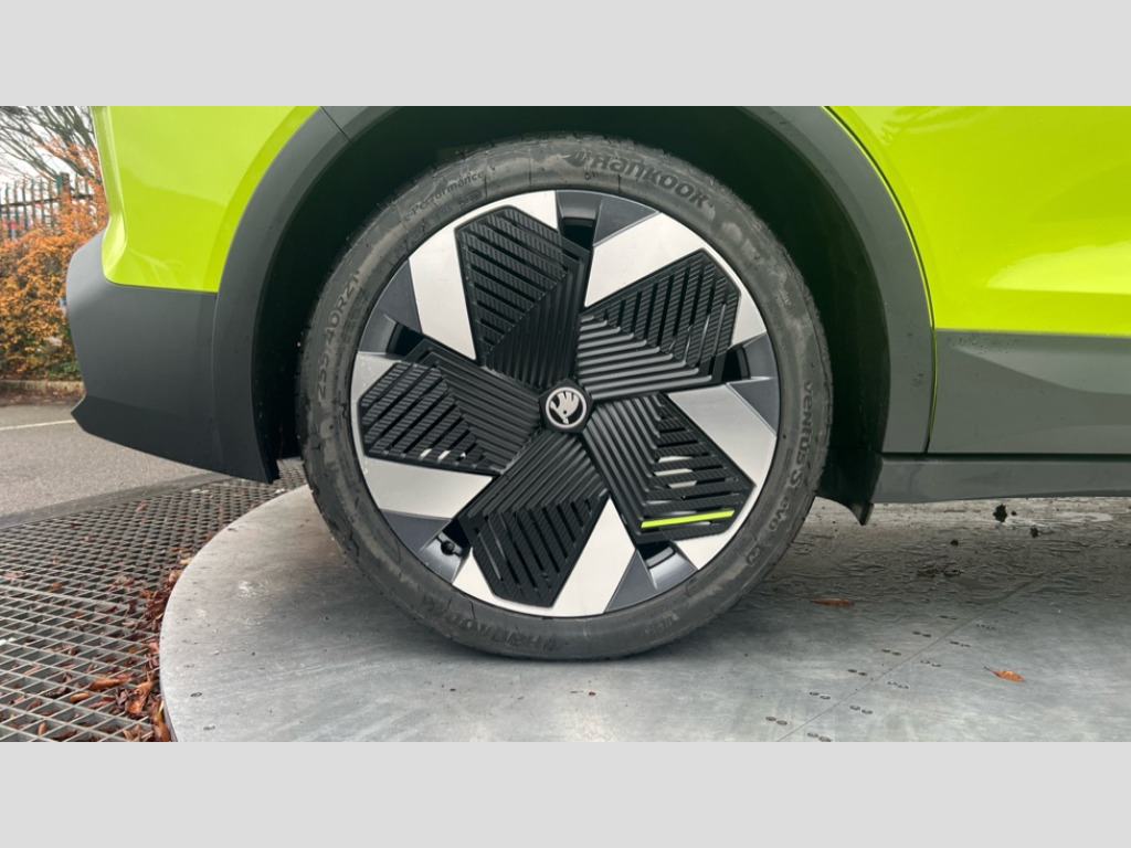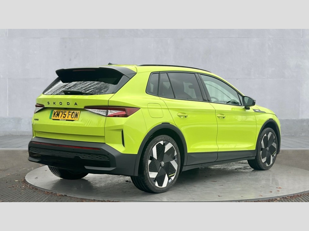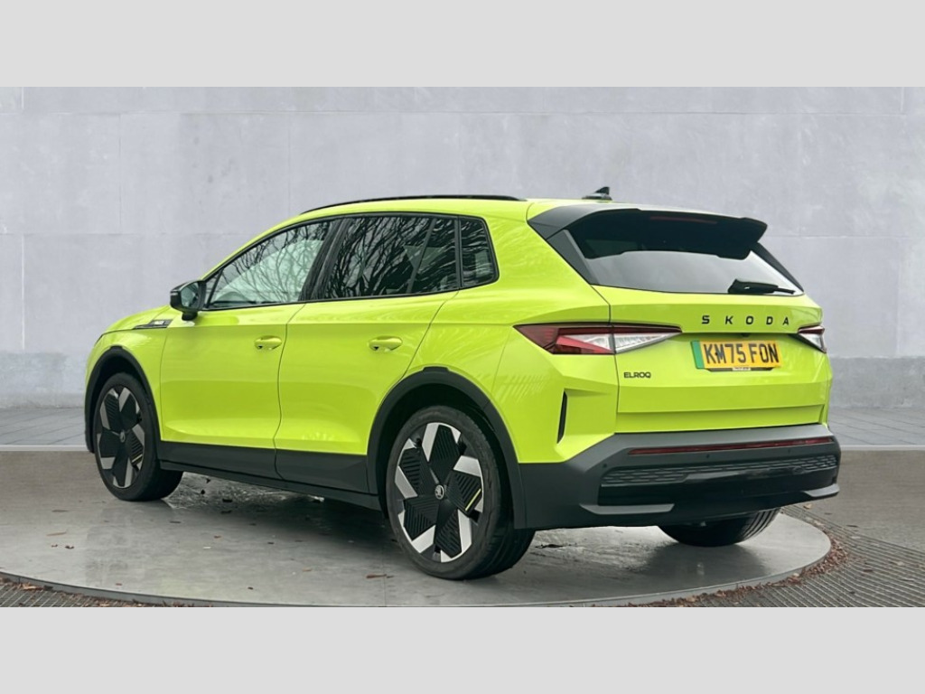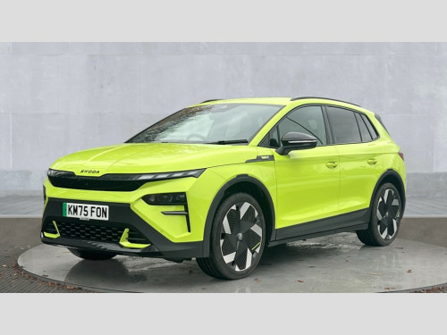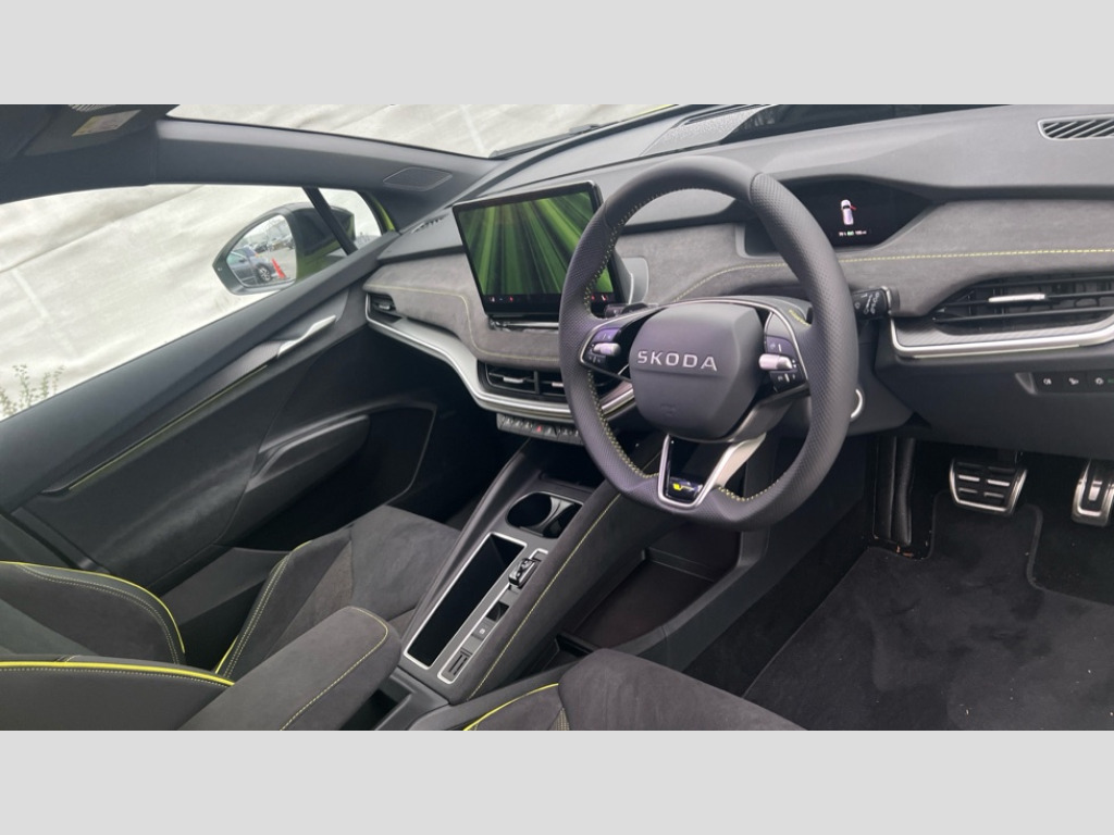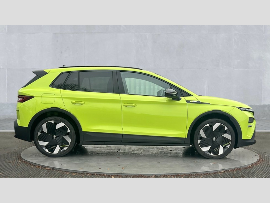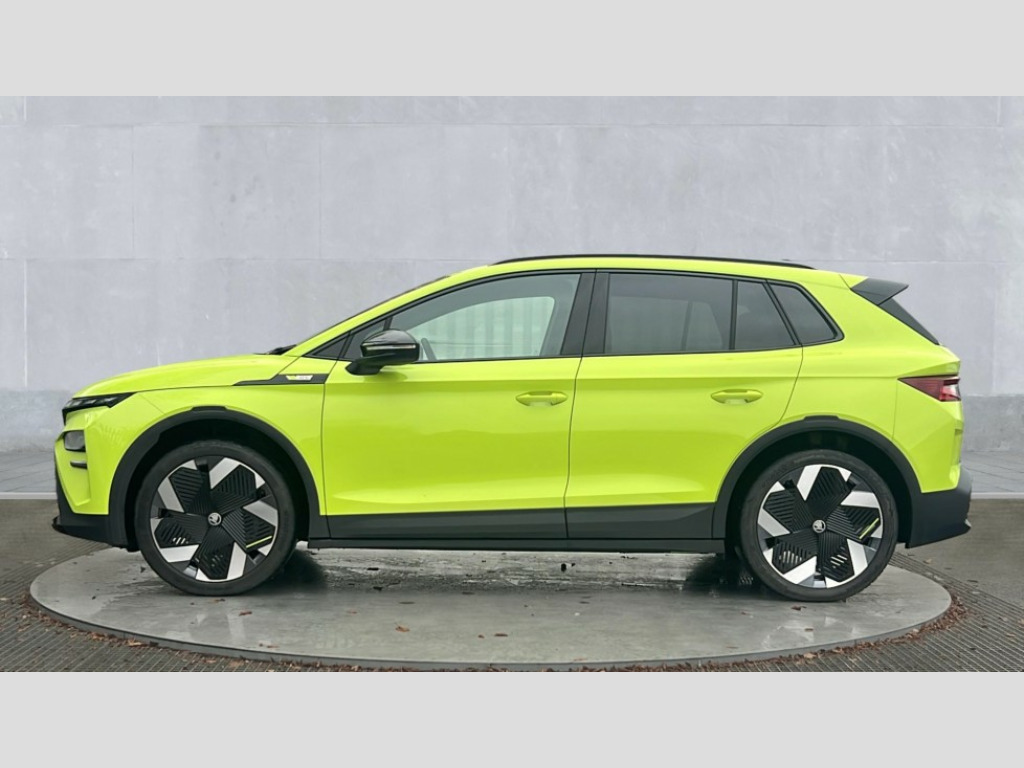 Skoda Elroq 250kW vRS 84kWh 4x4 5dr Auto 13" touchscreen display, 15W wireless charging with cooling function, Blind spot detection, Bluetooth, Digital cockpit, Drive mode select, Driver alert control, eCall emergency system, Electronic engine sound, Emergency steering support with turn assist, Front parking sensors, Gesture control, Predictive adaptive cruise control with traffic jam assist, Progressive dynamic steering, Rear parking sensors, Satellite navigation system, Skoda Connect iV remote services with charging, air conditioning and smart schedules, Speed assist, Traffic sign recognition, Travel assist plus - emergency assist, lane assist plus with narrow lane assist, urban evasive steering support, Voice control, Washer fluid level indicator, Wi-Fi hotspot, Wireless smartlink, 185kW DC charging capacity, 6m mode 3 cable (32A), Sports suspension, 45W USB-C ports (charging + data) front and rear, DAB Digital radio, Black door mirrors heated, electrically adjustable, folding and auto dimming with boarding spots and welcome logo, Black lettering on boot lid, Black rear bumpers, Black roof rails, Black window trims, Body colour door sills, Frameless auto dimming rear view mirror, Heat insulating glass windscreen, LED 3rd brake light, LED daytime running lights, Light and rain sensors, Light assistant including coming home and leaving function, Manually operated boot, Preparation for tow bar, Privacy glass and acoustic side windows, Rear side wing doors, Rear spoiler, Rear window wiper with washer system and intermittent control, Side and rear windows in heat insulating glass, vRS badge, vRS sports bumpers, 12V socket in boot, 1x umbrella, 3 rear headrests, 3 seat bench in 2nd row, Aluminium pedals, Boot lighting, Extended interior noise suspension, Folding boot cover, Front sport seats, Heated front seats, Illuminated tech deck, Integrated head restraints, Isofix child seat fittings in outer rear seats with top tether, Isofix child seat preparation for front passenger seat, LED ambient lighting, Single front passenger seat, Drive pack - Elroq, vRS Lounge design selection pack - Elroq, 3 point rear seatbelts, Crew protect assist, Driver and front passenger airbag with passenger airbag deactivation, Electric child locks, ESC (incl. ABS+MSR+ASR+EDS+HBA+DSR+RBS+MKB), Front assist with braking reaction to vehicles, pedestrians and cyclists, Front disc brakes, Front side airbags with curtain airbags and central interaction airbag, Rear drum brakes, Three point seatbelt in front, with pretensioner, lap belt pretensioner and height adjustment, Two tone horn, Tyre pressure monitoring system, Visual and acoustic seat belt reminder, Anti theft alarm system with interior monitoring, backup horn and towing protection, Central locking system with SAFE system, Keyless entry and start/stop system advanced with walk away locking, Anti-theft wheel bolts protection, Tyre repair kit