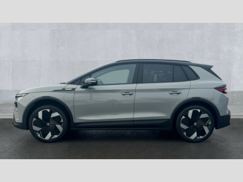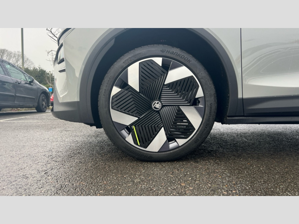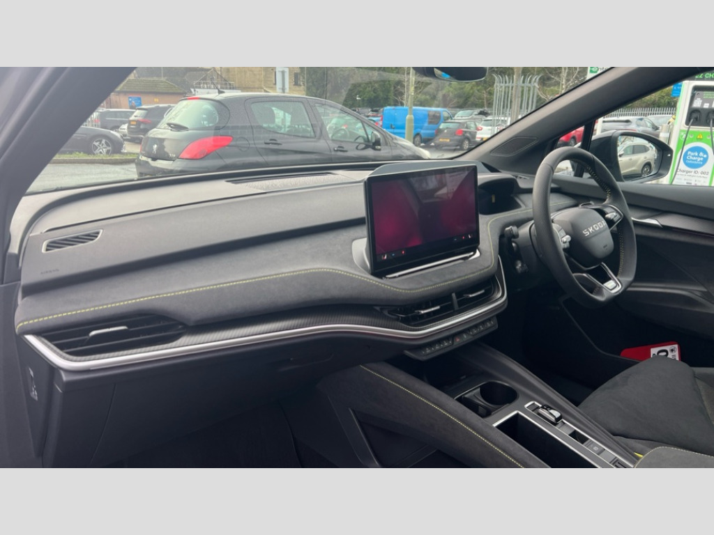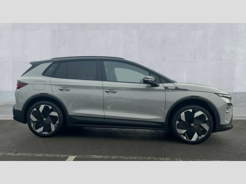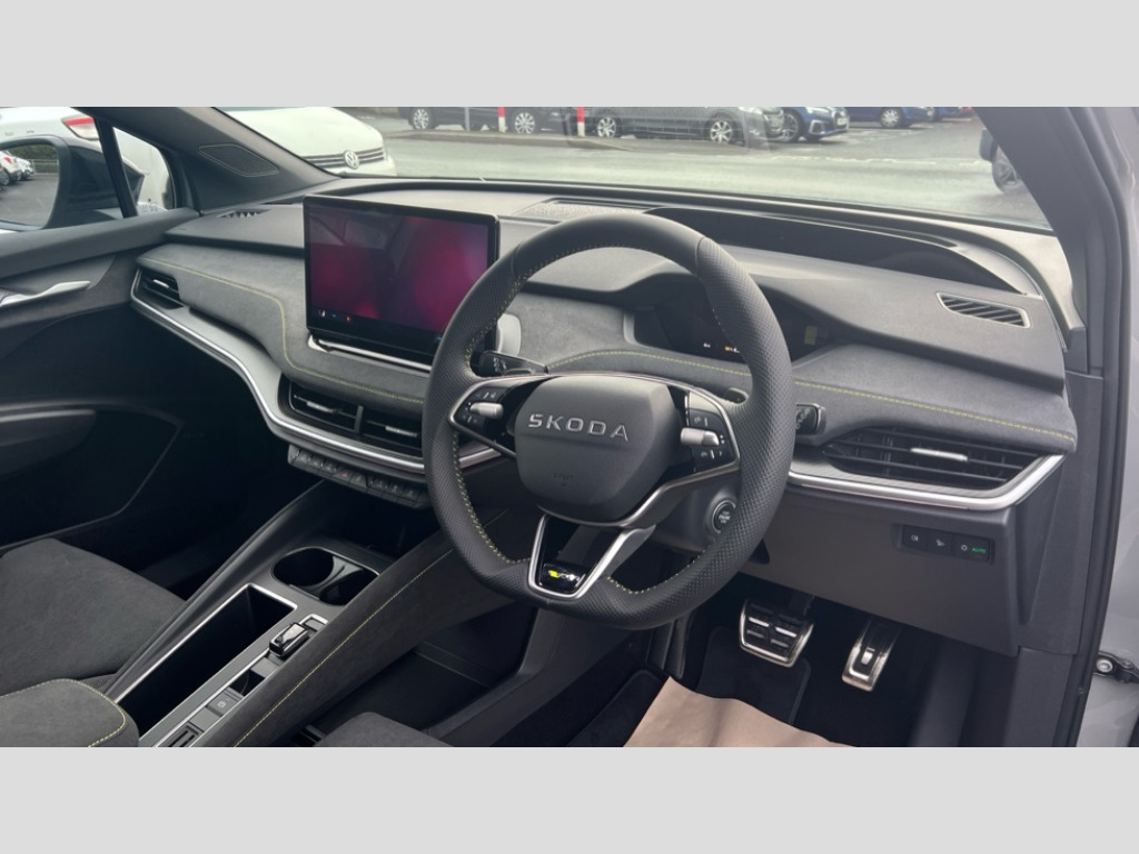 Skoda Elroq 250kW vRS 84kWh 4x4 5dr Auto 13" touchscreen display, 15W wireless charging with cooling function, Blind spot detection, Bluetooth, Digital cockpit, Drive mode select, Driver alert control, eCall emergency system, Electronic engine sound, Emergency steering support with turn assist, Front parking sensors, Gesture control, Predictive adaptive cruise control with traffic jam assist, Progressive dynamic steering, Rear parking sensors, Satellite navigation system, Skoda Connect iV remote services with charging, air conditioning and smart schedules, Speed assist, Traffic sign recognition, Travel assist plus - emergency assist, lane assist plus with narrow lane assist, urban evasive steering support, Voice control, Washer fluid level indicator, Wi-Fi hotspot, Wireless smartlink, 185kW DC charging capacity, 6m mode 3 cable (32A), Sports suspension, 45W USB-C ports (charging + data) front and rear, DAB Digital radio, Black door mirrors heated, electrically adjustable, folding and auto dimming with boarding spots and welcome logo, Black lettering on boot lid, Black rear bumpers, Black roof rails, Black window trims, Body colour door sills, Frameless auto dimming rear view mirror, Heat insulating glass windscreen, LED 3rd brake light, LED daytime running lights, Light and rain sensors, Light assistant including coming home and leaving function, Manually operated boot, Preparation for tow bar, Privacy glass and acoustic side windows, Rear side wing doors, Rear spoiler, Rear window wiper with washer system and intermittent control, Side and rear windows in heat insulating glass, vRS badge, vRS sports bumpers, 12V socket in boot, 1x umbrella, 3 rear headrests, 3 seat bench in 2nd row, Aluminium pedals, Boot lighting, Extended interior noise suspension, Folding boot cover, Front sport seats, Heated front seats, Illuminated tech deck, Integrated head restraints, Isofix child seat fittings in outer rear seats with top tether, Isofix child seat preparation for front passenger seat, LED ambient lighting, Single front passenger seat, Drive pack - Elroq, vRS Lounge design selection pack - Elroq, 3 point rear seatbelts, Crew protect assist, Driver and front passenger airbag with passenger airbag deactivation, Electric child locks, ESC (incl. ABS+MSR+ASR+EDS+HBA+DSR+RBS+MKB), Front assist with braking reaction to vehicles, pedestrians and cyclists, Front disc brakes, Front side airbags with curtain airbags and central interaction airbag, Rear drum brakes, Three point seatbelt in front, with pretensioner, lap belt pretensioner and height adjustment, Two tone horn, Tyre pressure monitoring system, Visual and acoustic seat belt reminder, Anti theft alarm system with interior monitoring, backup horn and towing protection, Central locking system with SAFE system, Keyless entry and start/stop system advanced with walk away locking, Anti-theft wheel bolts protection, Tyre repair kit