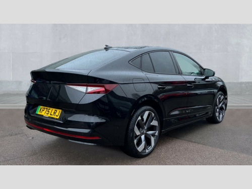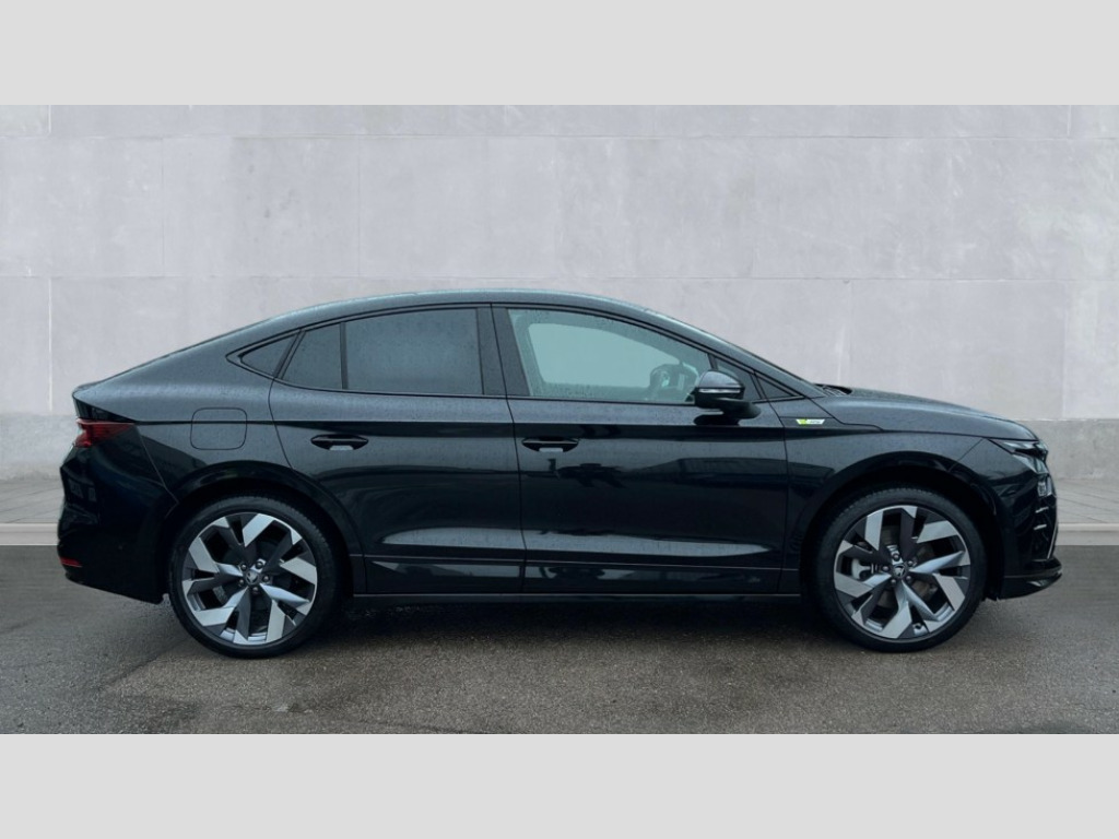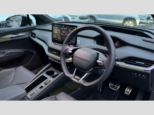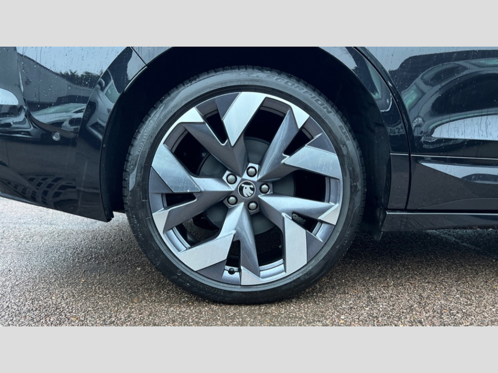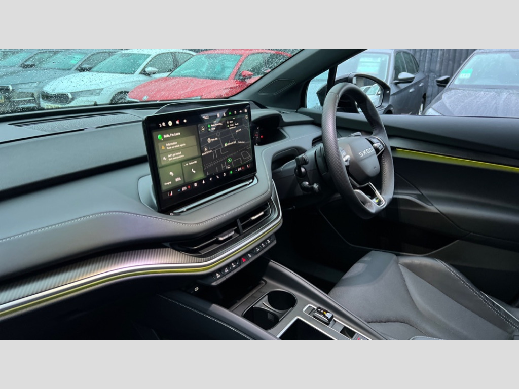 Skoda Enyaq 250kW vRS 84kWh 4x4 5dr Auto 13" touchscreen display, 15W wireless charging with cooling function, 5" Digital cockpit, Blind Spot Detection (BAS), Bluetooth system, Drive mode selector, Driver alert system, E-call, Electrically operated tailgate with kick activation (virtual pedal), Electronic engine sound, Emergency steering support with turn assist, Exterior temperature indicator, Front and rear parking sensors, Front assist with assisted automatic braking to vehicles, pedestrians and cyclists, Gesture control, Predictive adaptive cruise control with traffic jam assist, Satellite navigation system, Skoda Connect iV remote services with charging, air conditioning and smart schedules, Speed assist, Speed limiter, Traffic sign recognition, Travel assist plus with emergency assist, lane assist plus with narrow lane assist and urban evasive steering support, Voice control system, Washer fluid level indicator, Wi-Fi hotspot, Wireless smartlink, 185 kW DC charging, 6m mode 3 cable (32A), Four wheel drive, Sports suspension, 45W USB-C ports (charging + data) front and rear, DAB Digital radio, Auto dimming rear view mirror, Body colour door mirrors and handles, Body colour door sills, Dashboard and door moulding light in multiple colours, Door mirror memory, Dynamic headlight range control with cornering light function, Electric adjustable heated folding door mirrors with boarding spots and welcome logo, Electric front and rear windows, Full LED Matrix beam headlights with variable light distribution, Gloss black tailgate lettering, Gloss black window surround, Heat insulating darkened glass in side and rear windows, Heat insulating glass in windshield, Integrated fog light with all-weather function, LED daytime running lights, LED rear lights with animated indicators, LED third brake light, Light assistant (coming and leaving home), Panoramic opening glass sunroof, Privacy glass and acoustic side windows, Radiator grille in gloss black, Rain and light sensors, Rear side wing doors, Rear wiper, Safety reflectors on front and rear doors, Variable front intermittent wipers, vRS bumper, 12V socket in boot, 1x umbrella, 3 rear headrests, 3 seat bench in 2nd row, 60:40 foldable rear seat with sliding adjustment and backrest angle adjustment, Aluminium pedals, Boot lighting, Electrically adjustable driver seat with memory function, Extended interior noise suppression, Folding boot cover, Front courtesy lights, Front reading lights, Front sport seats, Front sports head restraints, Gloss black lining around drive selector, Heated front seats, Height adjustable drivers seat, High centre console with armrest, Isofix child seat fittings in outer rear seats with top tether, Isofix child seat preparation for front passenger seat, Laminated soft-touch plastic knee rest, LED ambient lighting, Manual rear window blind, Manually adjustable steering column, Massage functionality for drivers seat, Pollen filter, Power adjustable lumbar front seats, Rear reading lights, Single front passenger seat, Sunvisors with illuminated vanity mirrors, Tri zone climate control, Ventilated front seats, White front and rear footwell lighting and door handle lighting, Maxx package with head up display - Enyaq, 3 point height adj front seatbelts + pretensioners, Auto door release and activation of warning lights in the event of an accident, Black seatbelts, Central interaction airbag, Crew protection assist, Driver and front passenger airbags, ESC (incl. ABS+MSR+ASR+EDS+HBA+DSR+RBS+MKB), Front and rear three point safety belt on all seats, Front disc brakes, Front passenger airbag deactivation switch, Front side airbags with curtain airbags, Height adjustable seatbelts, Power child locks, Rear drum brakes, Rear side airbags, Two tone horn, Tyre pressure monitor, Visual and acoustic seat belt reminder, Warning lights in front doors, Anti theft alarm system with interior monitoring, backup horn and towing protection, Central locking system with SAFE system, Keyless entry and start/stop system advanced with walk away locking, Black fabric headlining, Carbon effect decorative inserts, Anti-theft wheel bolts protection, Tyre repair kit with compressor