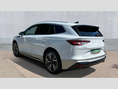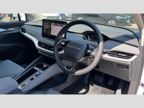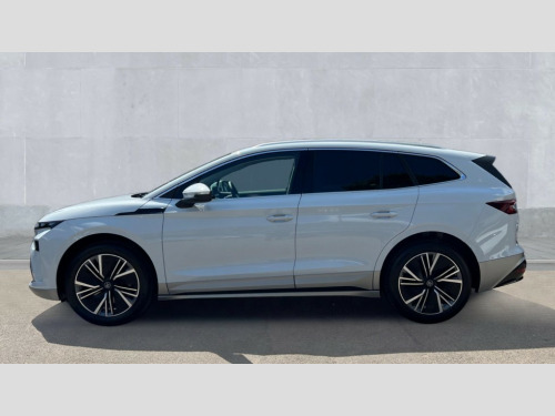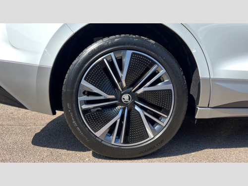 Skoda Enyaq 210kW 85 Edition 82kWh 5dr Auto 13" touchscreen display, 15W wireless charging with cooling function, 5" Digital cockpit, Blind Spot Detection (BAS), Bluetooth system, Drive mode selector, Driver alert system, E-call, Electrically operated tailgate with kick activation (virtual pedal), Electronic engine sound, Emergency steering support with turn assist, Exterior temperature indicator, Front and rear parking sensors, Front assist with assisted automatic braking to vehicles, pedestrians and cyclists, Gesture control, Power assist steering, Predictive adaptive cruise control with traffic jam assist, Rear view camera, Satellite navigation system, Skoda Connect iV remote services with charging, air conditioning and smart schedules, Speed assist, Speed limiter, Traffic sign recognition, Travel assist plus with emergency assist, lane assist plus with narrow lane assist and urban evasive steering support, Voice control system, Washer fluid level indicator, Wi-Fi hotspot, Wireless smartlink, 135 kW DC charging, 6m mode 3 cable (32A), 45W USB-C ports (charging + data) front and rear, 8 Speakers, DAB Digital radio, Auto dimming rear view mirror, Body colour door mirrors and handles, Dashboard and door moulding light in multiple colours, Door mirror memory, Dynamic headlight range control with cornering light function, Electric adjustable heated folding door mirrors with boarding spots and welcome logo, Electric front and rear windows, Full LED Matrix beam headlights with variable light distribution, Heat insulating darkened glass in side and rear windows, Heat insulating glass in windshield, Integrated fog light with all-weather function, LED daytime running lights, LED rear lights with animated indicators, LED third brake light, Light assistant (coming and leaving home), Privacy glass and acoustic side windows, Radiator grille in matt black with chrome surround, Rain and light sensors, Rear side wing doors, Rear spoiler, Rear window wiper with washer system and intermittent control, Safety reflectors on front and rear doors, Unique dark chrome roof rails, Unique dark chrome side window surrounds, Variable front intermittent wipers, 12V socket in boot, 1x umbrella, 2 spoke black leather heated multi function steering wheel with paddles for recuperation level selection, 3 rear headrests, 3 seat bench in 2nd row, 60:40 foldable rear seat with sliding adjustment and backrest angle adjustment, Black textile floor mats with black stitching, Boot lighting, Electrically adjustable driver seat with memory function, Extended interior noise suppression, Fabric/artificial leather upholstery, Front and rear footwell lighting, Front courtesy lights, Front headrests, Front reading lights, Grey fabric dashboard with grey stitching, Grey headlining, Heated front seats, Height adjustable drivers seat, Height adjustable front passenger seat, High centre console with armrest, Interior door handle lighting in front and rear, Isofix child seat fittings in outer rear seats with top tether, Isofix child seat preparation for front passenger seat, Laminated soft-touch plastic knee rest, LED ambient lighting, Manual rear window blind, Manually adjustable steering column, Massage functionality for drivers seat, Pollen filter, Power adjustable lumbar front seats, Rear reading lights, Single front passenger seat, Sliding boot cover, Sunvisors with illuminated vanity mirrors, Tri zone climate control, 3 point height adj front seatbelts + pretensioners, Auto door release and activation of warning lights in the event of an accident, Central interaction airbag, Crew protection assist, Driver and front passenger airbags, ESC (incl. ABS+MSR+ASR+EDS+HBA+DSR+RBS+MKB), Front and rear three point safety belt on all seats, Front disc brakes, Front passenger airbag deactivation switch, Front side airbags with curtain airbags, Height adjustable seatbelts, Power child locks, Rear drum brakes, Rear side airbags, Single tone horn, Tyre pressure monitor, Visual and acoustic seat belt reminder, Warning lights in front doors, Anti theft alarm system with interior monitoring, backup horn and towing protection, Central locking system with SAFE system, Keyless entry and start/stop system advanced with walk away locking, Brushed aluminium decorative inserts, Matte black lining around drive selector, Anti-theft wheel bolts protection, Tyre repair kit with compressor