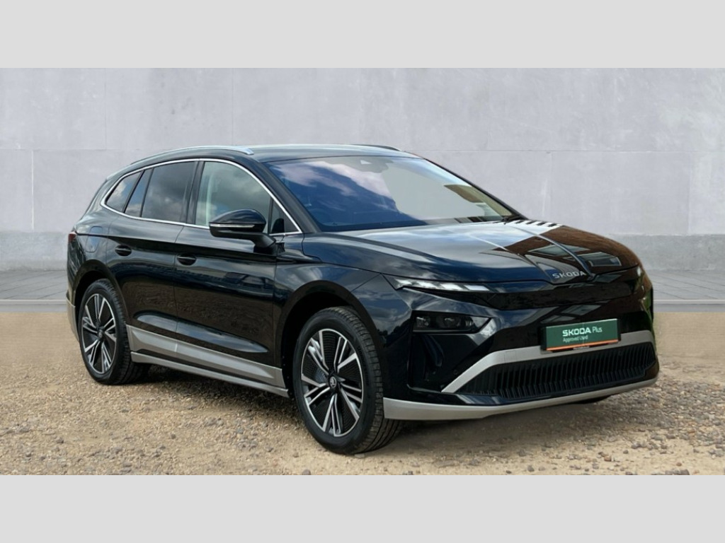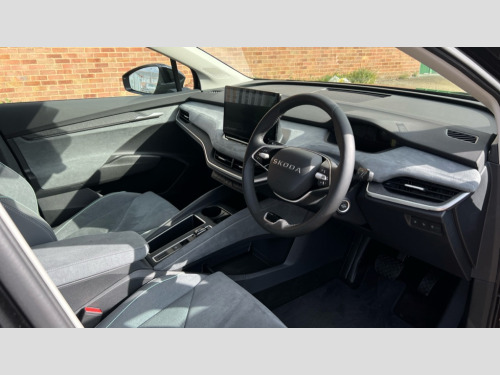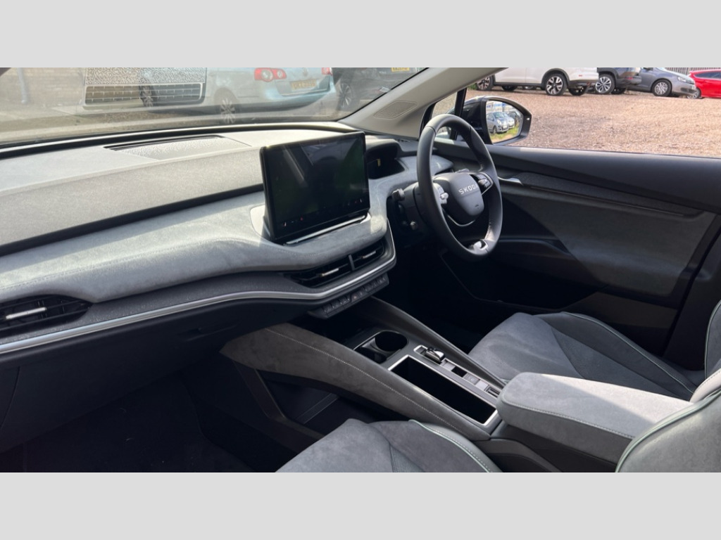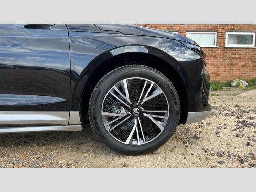 Skoda Enyaq 210kW 85 Edition 82kWh 5dr Auto 13" touchscreen display, 15W wireless charging with cooling function, 5" Digital cockpit, Blind Spot Detection (BAS), Bluetooth system, Drive mode selector, Driver alert system, E-call, Electrically operated tailgate with kick activation (virtual pedal), Electronic engine sound, Emergency steering support with turn assist, Exterior temperature indicator, Front and rear parking sensors, Front assist with assisted automatic braking to vehicles, pedestrians and cyclists, Gesture control, Power assist steering, Predictive adaptive cruise control with traffic jam assist, Rear view camera, Satellite navigation system, Skoda Connect iV remote services with charging, air conditioning and smart schedules, Speed assist, Speed limiter, Traffic sign recognition, Travel assist plus with emergency assist, lane assist plus with narrow lane assist and urban evasive steering support, Voice control system, Washer fluid level indicator, Wi-Fi hotspot, Wireless smartlink, 135 kW DC charging, 6m mode 3 cable (32A), 45W USB-C ports (charging + data) front and rear, 8 Speakers, DAB Digital radio, Auto dimming rear view mirror, Body colour door mirrors and handles, Dashboard and door moulding light in multiple colours, Door mirror memory, Dynamic headlight range control with cornering light function, Electric adjustable heated folding door mirrors with boarding spots and welcome logo, Electric front and rear windows, Full LED Matrix beam headlights with variable light distribution, Heat insulating darkened glass in side and rear windows, Heat insulating glass in windshield, Integrated fog light with all-weather function, LED daytime running lights, LED rear lights with animated indicators, LED third brake light, Light assistant (coming and leaving home), Privacy glass and acoustic side windows, Radiator grille in matt black with chrome surround, Rain and light sensors, Rear side wing doors, Rear spoiler, Rear window wiper with washer system and intermittent control, Safety reflectors on front and rear doors, Unique dark chrome roof rails, Unique dark chrome side window surrounds, Variable front intermittent wipers, 12V socket in boot, 1x umbrella, 2 spoke black leather heated multi function steering wheel with paddles for recuperation level selection, 3 rear headrests, 3 seat bench in 2nd row, 60:40 foldable rear seat with sliding adjustment and backrest angle adjustment, Black textile floor mats with black stitching, Boot lighting, Electrically adjustable driver seat with memory function, Extended interior noise suppression, Fabric/artificial leather upholstery, Front courtesy lights, Front headrests, Front reading lights, Grey fabric dashboard with grey stitching, Grey headlining, Heated front seats, Height adjustable drivers seat, Height adjustable front passenger seat, High centre console with armrest, Isofix child seat fittings in outer rear seats with top tether, Isofix child seat preparation for front passenger seat, Laminated soft-touch plastic knee rest, LED ambient lighting, Manual rear window blind, Manually adjustable steering column, Massage functionality for drivers seat, Pollen filter, Power adjustable lumbar front seats, Rear reading lights, Single front passenger seat, Sliding boot cover, Sunvisors with illuminated vanity mirrors, Tri zone climate control, White front footwell lighting and door handle lighting, 3 point height adj front seatbelts + pretensioners, Auto door release and activation of warning lights in the event of an accident, Central interaction airbag, Crew protection assist, Driver and front passenger airbags, ESC (incl. ABS+MSR+ASR+EDS+HBA+DSR+RBS+MKB), Front and rear three point safety belt on all seats, Front disc brakes, Front passenger airbag deactivation switch, Front side airbags with curtain airbags, Height adjustable seatbelts, Power child locks, Rear drum brakes, Rear side airbags, Two tone horn, Tyre pressure monitor, Visual and acoustic seat belt reminder, Warning lights in front doors, Anti theft alarm system with interior monitoring, backup horn and towing protection, Central locking system with SAFE system, Keyless entry and start/stop system advanced with walk away locking, Brushed aluminium decorative inserts, Matte black lining around drive selector, Anti-theft wheel bolts protection, Tyre repair kit with compressor