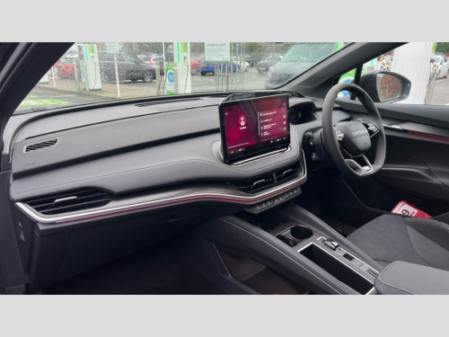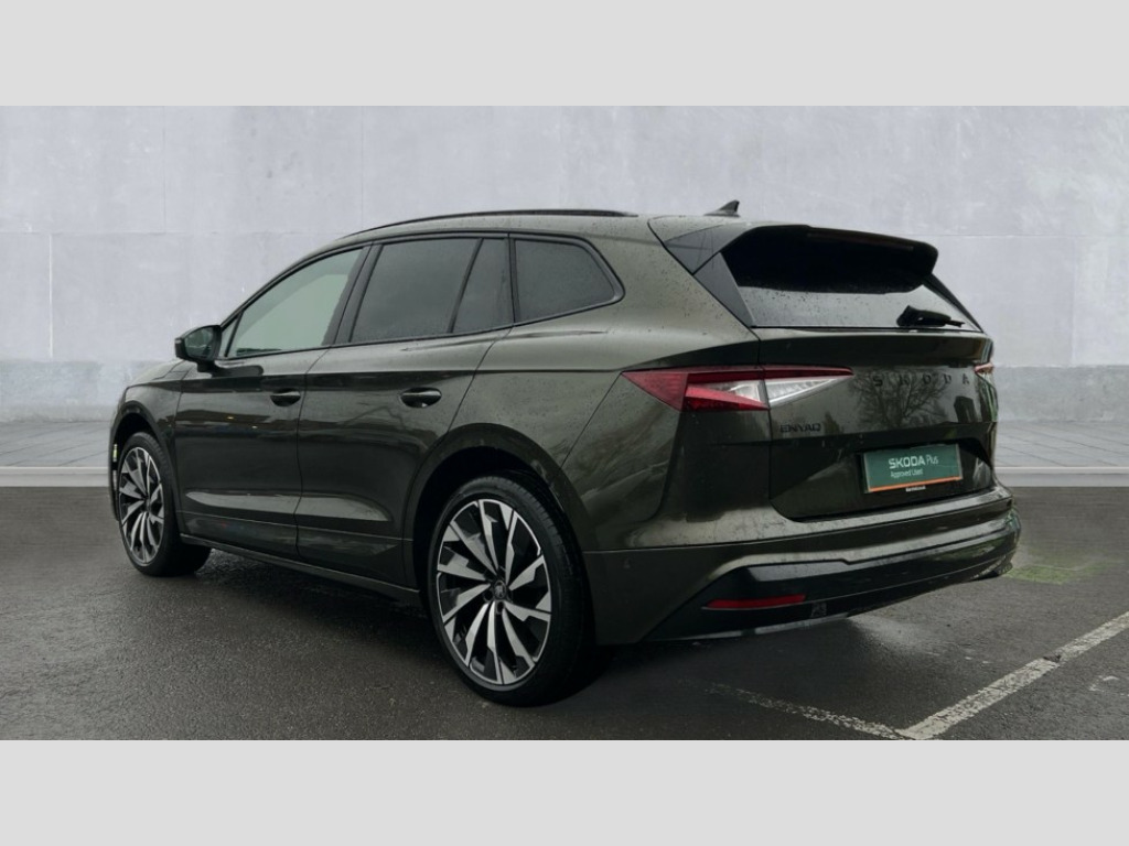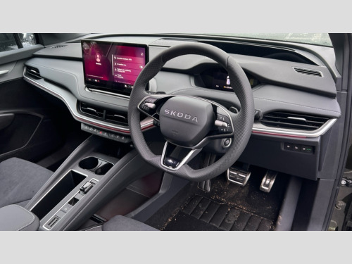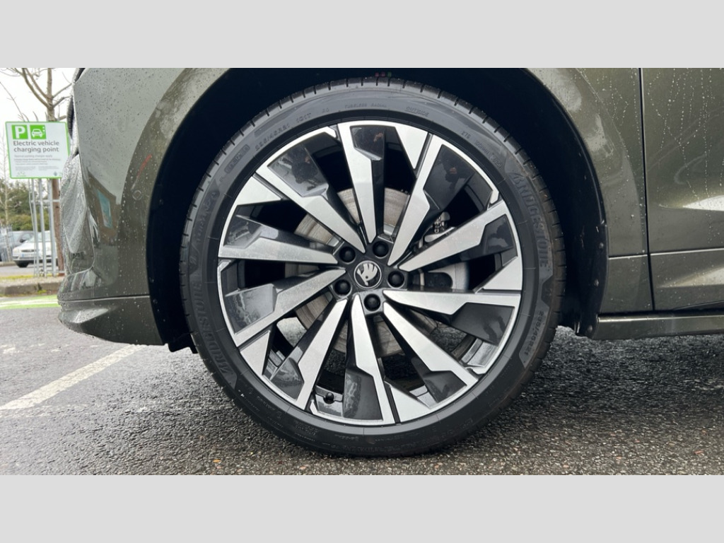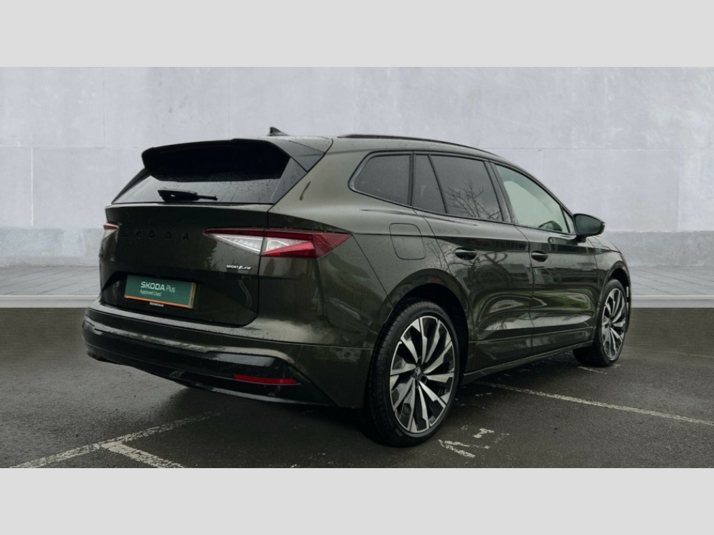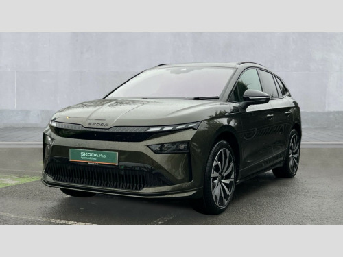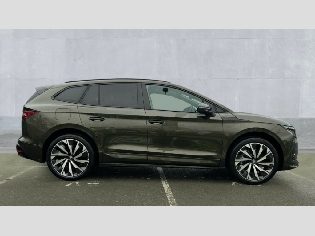 Skoda Enyaq 210kW 85x Sportline 82kWh 4x4 5dr Auto 13" touchscreen display, 15W wireless charging with cooling function, 5" Digital cockpit, Blind Spot Detection (BAS), Bluetooth system, Drive mode selector, Driver alert system, E-call, Electrically operated tailgate with kick activation (virtual pedal), Electronic engine sound, Emergency steering support with turn assist, Exterior temperature indicator, Front and rear parking sensors, Front assist with assisted automatic braking to vehicles, pedestrians and cyclists, Gesture control, Predictive adaptive cruise control with traffic jam assist, Progressive steering, Satellite navigation system, Skoda Connect iV remote services with charging, air conditioning and smart schedules, Speed assist, Speed limiter, Traffic sign recognition, Travel assist plus with emergency assist, lane assist plus with narrow lane assist and urban evasive steering support, Voice control system, Washer fluid level indicator, Wi-Fi hotspot, Wireless smartlink, 175 kW DC charging, 6m mode 3 cable (32A), Four wheel drive, Sports suspension, 45W USB-C ports (charging + data) front and rear, DAB Digital radio, Auto dimming rear view mirror, Body colour door mirrors and handles, Body colour door sills, Dashboard and door moulding light in multiple colours, Door mirror memory, Dynamic headlight range control with cornering light function, Electric adjustable heated folding door mirrors with boarding spots and welcome logo, Electric front and rear windows, Full LED Matrix beam headlights with variable light distribution, Gloss black roof rails, Gloss black tailgate lettering, Gloss black window surround, Heat insulating darkened glass in side and rear windows, Heat insulating glass in windshield, Integrated fog light with all-weather function, LED daytime running lights, LED rear lights with animated indicators, LED third brake light, Light assistant (coming and leaving home), Privacy glass and acoustic side windows, Radiator grille in gloss black, Rain and light sensors, Rear side wing doors, Rear spoiler, Rear window wiper with washer system and intermittent control, Safety reflectors on front and rear doors, Sports bumpers, Variable front intermittent wipers, 12V socket in boot, 1x umbrella, 3 rear headrests, 3 seat bench in 2nd row, 3-spoke leather heated sports multifunction steering wheel with paddles for recuperation level selection, 60:40 foldable rear seat with sliding adjustment and backrest angle adjustment, Aluminium pedals, Black artificial leather dashboard with grey stitching, Black headlining, Black textile floor mats with grey stitching, Boot lighting, Electrically adjustable driver seat with memory function, Extended interior noise suppression, Front courtesy lights, Front reading lights, Front sport seats, Front sports head restraints, Heated front seats, Height adjustable drivers seat, Height adjustable front passenger seat, High centre console with armrest, Isofix child seat fittings in outer rear seats with top tether, Isofix child seat preparation for front passenger seat, Laminated soft-touch plastic knee rest, LED ambient lighting, Manual rear window blind, Manually adjustable steering column, Massage functionality for drivers seat, Microsuede/artificial leather upholstery, Pollen filter, Power adjustable lumbar front seats, Rear reading lights, Single front passenger seat, Sliding boot cover, Sunvisors with illuminated vanity mirrors, Tri zone climate control, White front and rear footwell lighting and door handle lighting, Advanced package with head up display - Enyaq, 3 point height adj front seatbelts + pretensioners, Auto door release and activation of warning lights in the event of an accident, Central interaction airbag, Crew protection assist, Driver and front passenger airbags, ESC (incl. ABS+MSR+ASR+EDS+HBA+DSR+RBS+MKB), Front and rear three point safety belt on all seats, Front disc brakes, Front passenger airbag deactivation switch, Front side airbags with curtain airbags, Height adjustable seatbelts, Power child locks, Rear drum brakes, Rear side airbags, Two tone horn, Tyre pressure monitor, Visual and acoustic seat belt reminder, Warning lights in front doors, Anti theft alarm system with interior monitoring, backup horn and towing protection, Central locking system with SAFE system, Keyless entry and start/stop system advanced with walk away locking, Carbon effect decorative inserts, Matte black lining around drive selector, Anti-theft wheel bolts protection, Tyre repair kit with compressor