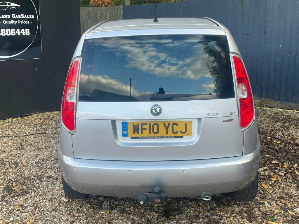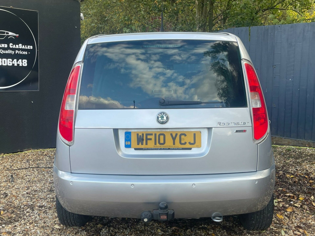 This Skoda Roomster SE from 2010 boasts a clear vehicle history, offering you peace of mind. Powered by a reliable 1.6 litre petrol engine, this SE trim model is a practical choice for everyday driving. Its spacious interior is complemented by a notably large boot, making it ideal for families or those who need ample storage for shopping, luggage, or hobbies.The Roomster SE stands out with its low insurance group rating, which can help to keep your running costs down. This, combined with its generous boot space, demonstrates how this vehicle offers excellent value and practicality compared to many others in its class. It is a well maintained and sensible option for anyone seeking a versatile and economical car.. 15in AVIOR Alloy Wheels, Adjustable Steering Column/Wheel, Air Bag Driver, Air Bag Passenger, Air Bag Side, Air-Conditioning, Alarm, Alloy Wheels (15in), Anti-Lock Brakes, Body Coloured Bumpers, Central Door Locking, Centre Rear Seat Belt, Cup Holder, Deadlocks, Electric Windows (Front), Electronic Stability Programme, Head Air Bags, Head Restraints, Heated Rear Screen, Immobiliser, In Car Entertainment (Radio/CD/MP3), Lower Glove Box Cover, Manual Air Conditioning, Mirrors External, Paint Metallic, Parking Aid (Rear), Power Socket, Power-Assisted Steering, Rev Counter, Seat - ISOFIX Anchorage Point, Seat Height Adjustment, Side Protection Mouldings, Spare Wheel (Space Saver), Speakers, Sunroof Manual, TPM (Tyre Pressure Monitoring), TPM Tyre Pressure Monitoring, TPM(Tyre Pressure Monitoring), Tinted Glass, Trip Computer, Upholstery Cloth, Windscreen Wiper. Part service history