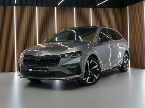 2024 Skoda Scala 1.0 TSI Monte Carlo 5dr Hatchback DSG in Grey with 2 owners and just over 12,170 miles. Fantastic spec including Panoramic Glass Sunroof, Assisted Driving Package Plus (Adaptive Cruise Control / Adaptive Lane Assist / Blind Spot Detection / Electric Folding Mirrors / Full LED Rear Lights / Rain Sensor), Convenience Plus Package (Rear View Camera / Keyless Entry / Front & Rear Parking Sensors / 10.25in Virtual Cockpit / Power Tailgate), Technology Plus Package (Phone Box with Wireless Charging / USB C Charging Ports), 9.2in Touchscreen Sat Nav, Wireless Apple CarPlay / Android Auto, Wireless Charging, Matrix LED Headlights with Adaptive Main Beam, 18in Alloy Wheels, Dual Zone Climate Control etc. Full Service History with previous services completed as follows; - 21/3/2025 @ 8,187 miles Graphite Grey, Charging Pack, Assisted Drive Package, Assisted Drive Package Plus, Convenience Plus Package, Panoramic Sunroof, 12V Socket, 18in Alloy Wheels - Ursa Black - Diamond, 3-Spoke Leather Sport Multifunction Stee, 4 USB-C Ports, 9.2in Skoda Navigation Display, ABS - Anti-Lock Braking System, Advanced Driver Attention And Drowsiness, Air Conditioning - Climate Control Dual , Airbags - Front Side, Alarm with SAFE Function for Central Loc, Aluminium Pedals, Ambient Lighting White-Red, Anti-Theft Locking Wheel Bolts, Auto Dimming Rear View Mirror, Automatic Headlight Control, Black Lettering on Boot Lid, Black Roof Headlining, Black Roof Spoiler, Bluetooth, Bumpers - Body Coloured, Car