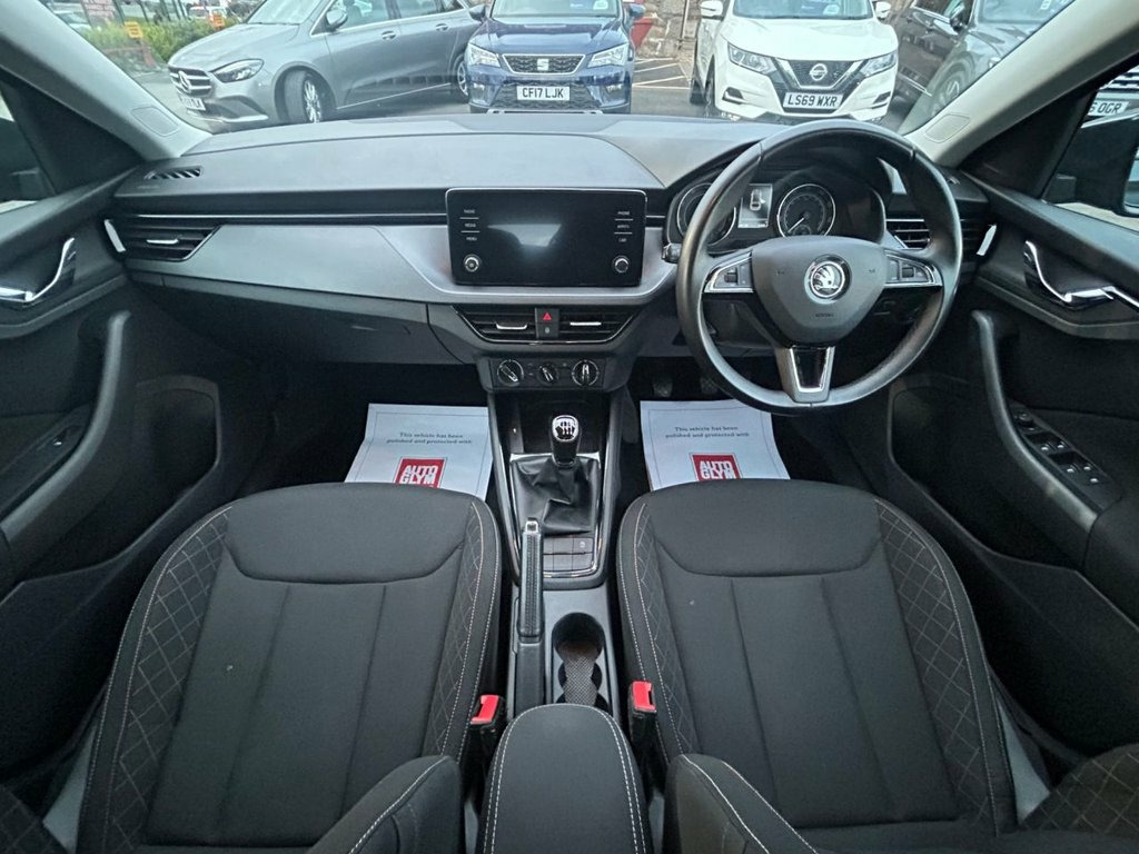 Finished in Quartz Grey Metallic, stylish, spacious, and efficient — this 2019 (69) Škoda Scala 1.0 TSI SE is a superb all-round hatchback offering comfort, practicality, and impressive economy. Powered by the 1.0-litre TSI petrol engine producing 115PS and paired with a smooth 6-speed manual gearbox, it delivers lively yet efficient performance with Euro 6 emissions compliance. The SE model comes well equipped with satellite navigation, Apple CarPlay & Android Auto, rear parking sensors, cruise control, air conditioning, and alloy wheels. With its generous interior space, refined driving experience, and Škoda's renowned build quality, the Scala is a perfect choice for families or commuters alike. Presented in excellent condition throughout and fully inspected and prepared to our high retail standards 12V Socket on Central Console, 16in Alloy Wheels - Orion, 2 USB-C Ports with One Adaptor, ABS - Anti-Lock Braking System, Alarm, Anti-Theft Locking Wheel Bolts, Basic LED Headlights with LED Daytime Ru, Bluetooth, Body Coloured Door Mirrors and Door Hand, Bolero Radio with 8in Touchscreen Displa, Chrome Grille Surround, Chrome Interior Door Handles, Cruise Control, Curtain Airbags, DAB Radio, Decor Strip on Dashboard and Door Panel, Drivers and Front Passenger Air Bag, Easy Light Assist, Electrically Adjustable and Heated Door , Emergency Call and Proactive Services, Front and Rear Electric Windows, Front Assist Radar, Front Centre Armrest with Stitching, Front Fog Lights, Front Head and Sid