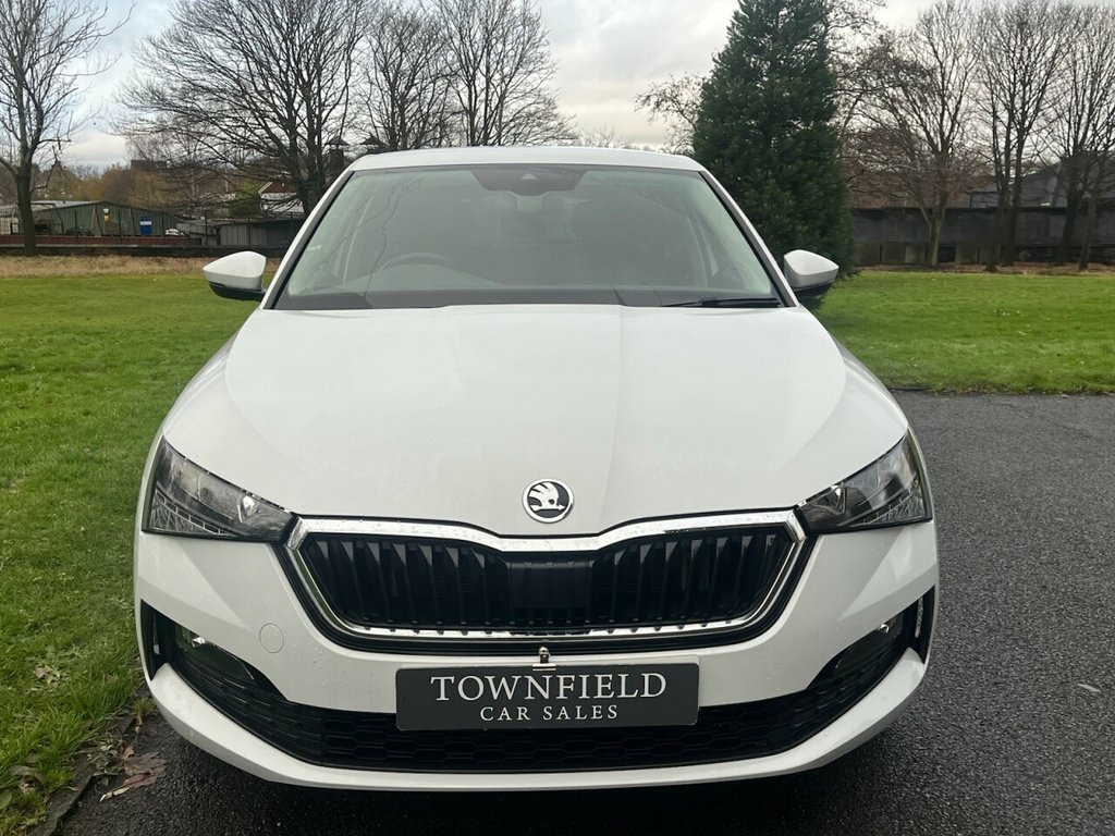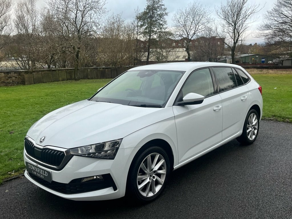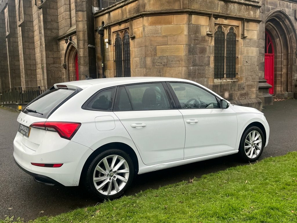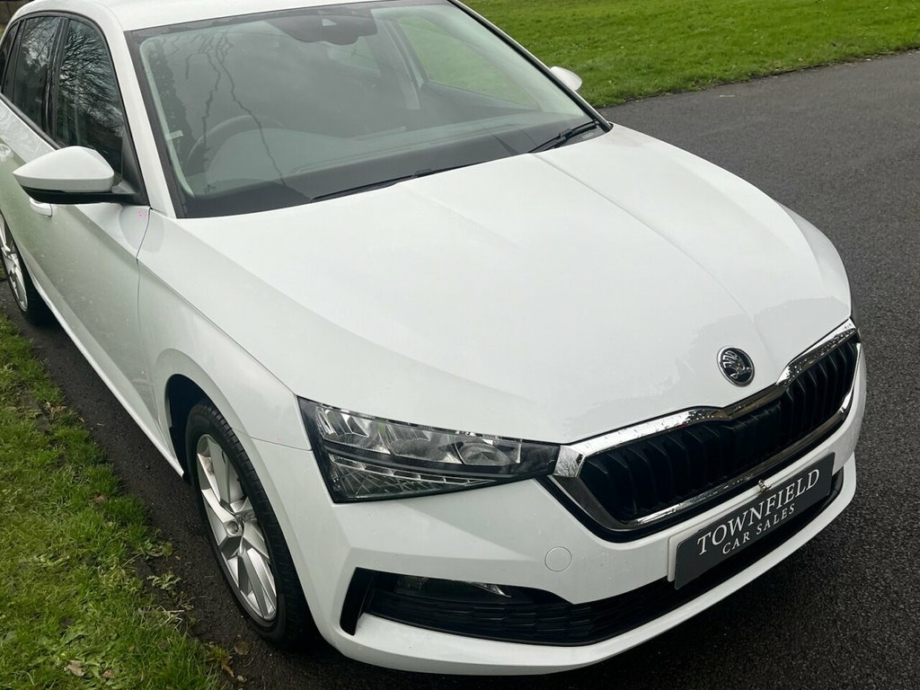 Introducing this 2021, Skoda Scala SE 1.0 TSI 115PS 6-speed DSG finished in Candy White with the optional extra 17" Stratos alloy wheels. This vehicle benefits from the optional tailgate design package, adding a high-functionality LED rear light and a tailgate with window aperture, offering both style and practicality. It also features a selection of advanced systems designed to support a safer and more convenient driving experience, including lane assist, front assist and cruise control with speed limiter. Rear parking sensors provide clear visual and audible alerts when manoeuvring, making parking more straightforward. The infotainment system includes DAB radio, Bluetooth, Apple CarPlay and Android Auto, allowing easy access to local stations or content from your mobile device. For everyday practicality, two USB-C ports are located in the centre console for convenient charging, and a space-saving spare wheel is neatly stored in the boot floor, providing peace of mind without compromising on space. ULEZ compliant. Part exchanges welcome Candy White, 12V Socket on Central Console, 17in Alloy Wheels - Stratos, 2 USB-C Ports, ABS - Anti-Lock Braking System, Air Conditioning - Climate Control Dual , Alarm, Amundsen Satellite Navigation with 9.2in, Anti-Theft Locking Wheel Bolts, Basic LED Headlights with LED Daytime Ru, Bluetooth, Body Coloured Door Mirrors and Door Hand, Bolero Radio with 8in Touchscreen Displa, Care Connect and Infotainment Online 1 Y, Chrome Grille Surround, Chrome Interior Door Handles, Chrome Strip on the Dash and Door Panell, Chrome on Gear and Handbrake Lever, Colour Multifunction Trip Computer, Cruise Control, Curtain Airbags, DAB Radio, Door Mirrors - Electrically Folding, Drivers and Front Passenger A
