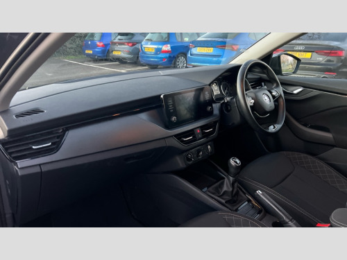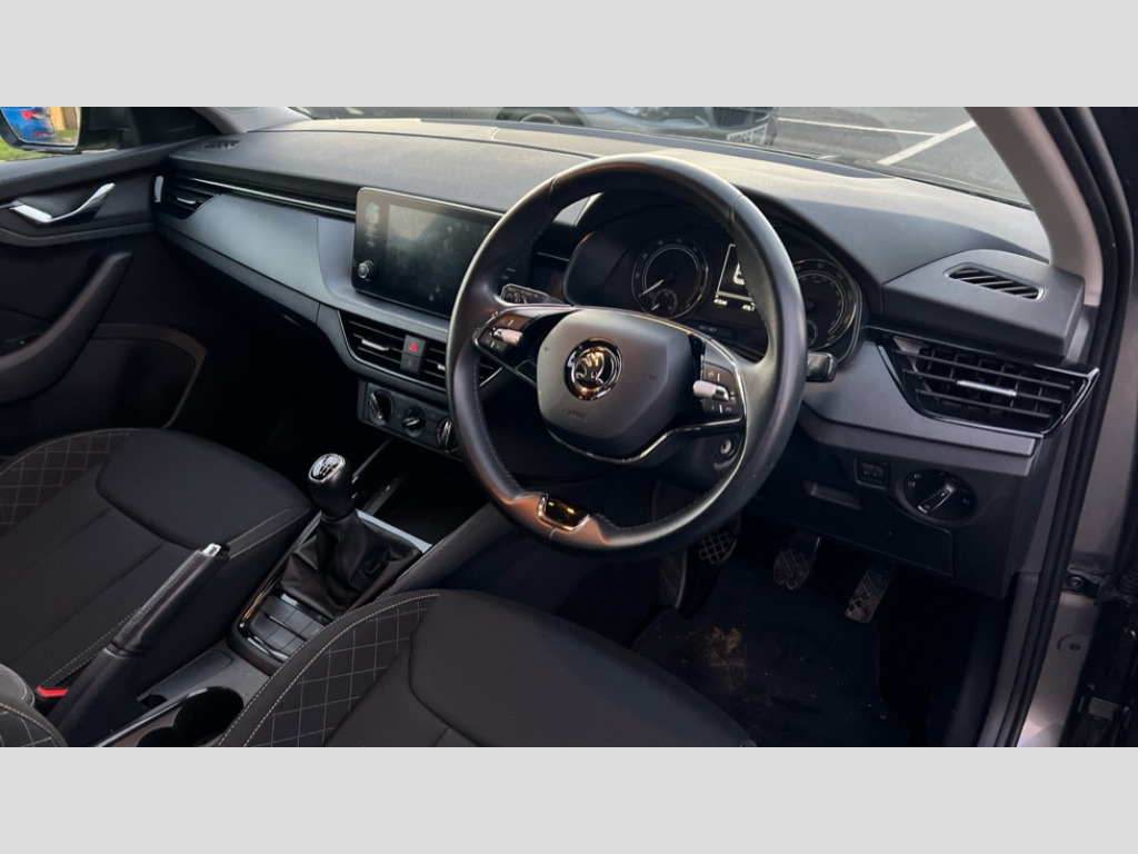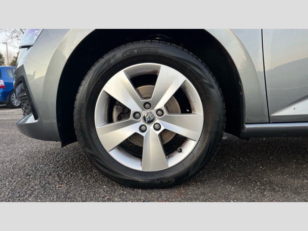 Skoda Scala 1.0 TSI 110 SE 5dr Bluetooth system, eCall emergency system, Front assist system, PAS, Rain and light assist with auto dimming rear view mirror, Speed limiter, 2 USB - C ports, 8 loudspeakers, Bolero radio with 8" touchscreen display, DAB Digital radio, 3rd brake light, Automatic headlamp activation with Coming home and Leaving home feature, Body colour door mirrors and handles, Chrome grille surround, Electric front windows, Electrically adjustable and heated door mirrors, Manual rear windows, Rear side wing doors, Rear wiper, Tinted windows, 12V Accessory socket in centre console, 3 seat bench in 2nd row, Chrome inner door handles, Cloth upholstery, Front head restraints, Glasses storage in roof liner, Height adjustable drivers seat, Height adjustable passenger seat, Instrument cluster with chrome painted decor ring, ISOFIX for rear passenger seat, Leather gearknob and handbrake lever, Manual lumbar support for front seats, Reading lights for driver and front passenger, Single front passenger seat, Sun visor with make up mirror for front passenger, Third rear headrest, Umbrella, 3x3 point rear seatbelts, Curtain airbags, Emergency call and proactive services, Front head and side airbags, Hill hold control, Manual rear child locks, One tone horn, Passenger airbag switch off function, Seat belt reminder for all seats, Alarm, Anti-theft wheel bolts, Remote central locking with 2 remote folding keys, SAFE function for remote central locking, Temporary space saver wheel
