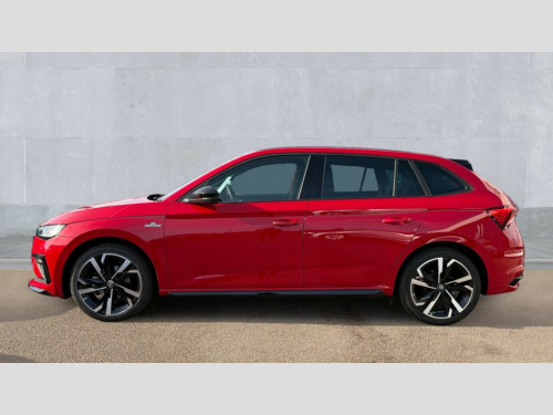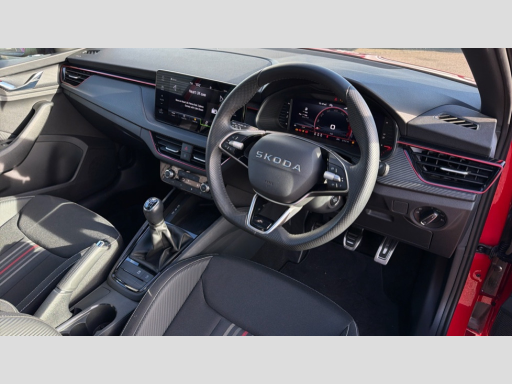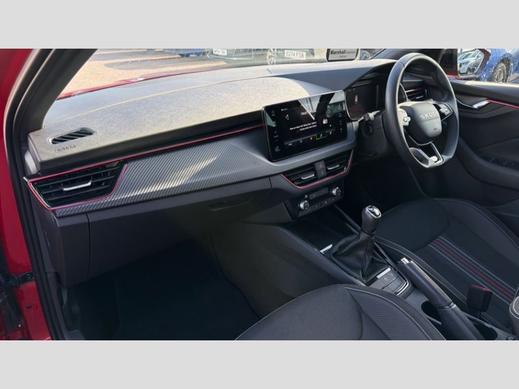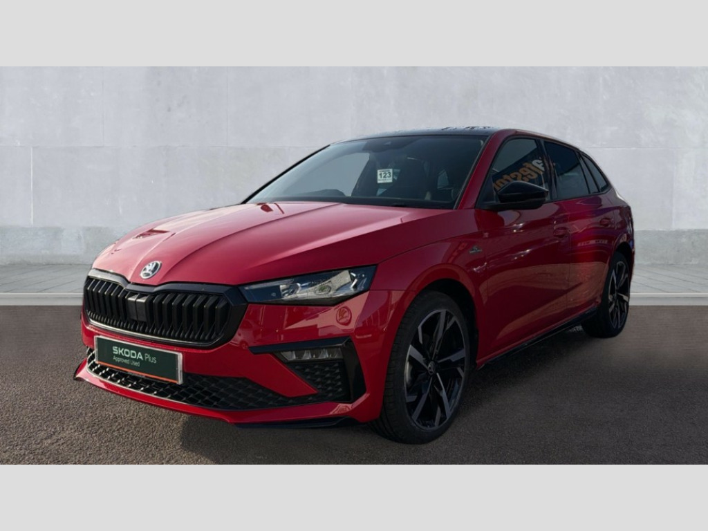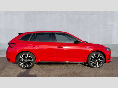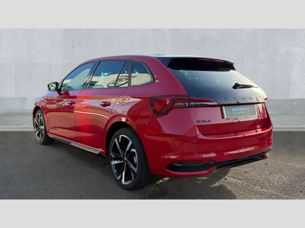 Skoda Scala 1.0 TSI 116 Monte Carlo 5dr Advanced driver attention and drowsiness monitor, Bluetooth, e-Call (emergency call), Front assist system, PAS, Rear parking sensors, Speed limiter, Tailgate, Traffic sign recognition, Virtual Cockpit - 10.25" digital display, Voice control system, Wireless smartlink, 4 USB C ports, 8 Speakers, 9.2" Skoda navigation display, DAB radio, Auto dimming rear view mirror, Automatic headlamp activation with Coming home and Leaving home feature, Automatic high/low beam, Automatic intermittent wipers, Black door mirrors, Black lettering on boot lid, Black radiator grille, Black rear diffuser, Black roof spoiler, Body colour bumpers, Body colour door handles, Chrome moulding around grille, Extended tailgate glass, Front and rear electric windows, Heated rear window, LED 3rd brake light, LED brake lights, LED daytime running lights, LED high beam, LED low beam, Light sensors, Monte carlo plaque, Panoramic glass roof, Privacy glass, Rear LED fog light, Rear side wing doors, Rear wiper, Tinted windows, 12V socket in luggage compartment, 3 seat bench in 2nd row, Aluminium pedals, Ambient lighting in white/red, Black / White armrest stitching, Black ceiling, Black roof headlining, Cargo elements, Chrome inner door handles, Door inserts in art.leather carbon, Driver and passenger sun visors with vanity mirror, Dual zone climate control, Front and rear roof lights, Front centre armrest, Front head restraints, Height adjustable driver seat, Height adjustable passenger seat, Ice scraper, Illuminated glove compartment, Inner circulation control with pollen filter, ISOFIX for front passenger seat, Isofix preparation for back seats, Leather gearknob and handbrake lever, Luggage net under rear parcel shelf, Manual lumbar support for front seats, Monte carlo cloth upholstery, Net package and top tether hooks in boot space, Pocket on the back of both front seats, incl. mobile phone pockets, Rear centre armrest, Red hotstamping, Single front passenger seat, Sport seats, Textile floor mats, Third rear headrest, Ticket holder, Top tether for front passenger seat, Umbrella in driver's door, Light and view plus pack - Scala, 3x3 point rear seatbelts, ABS, Child locks, Curtain airbags and front side airbags, Disc brakes, Driver and front passenger airbags, ESP, Hill hold control, Manual leather parking brake, One tone horn, Passenger airbag switch off function, Seatbelt reminder for driver and front passenger, Tyre pressure monitoring system, Anti theft alarm system with interior monitoring, backup horn and towing protection, Anti-theft wheel bolts, Remote central locking with 2 remote folding keys, SAFE function for remote central locking, Carbon effect decorative inserts, 18" Ursa black diamond cut alloy wheels