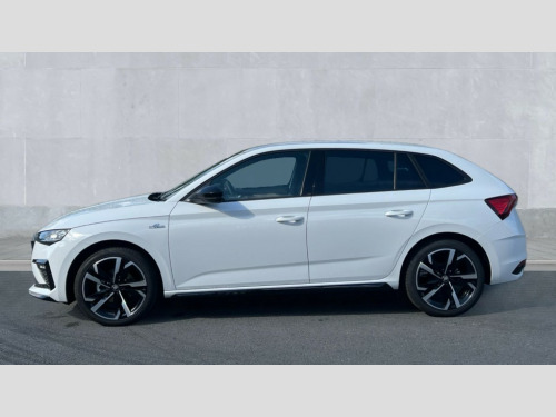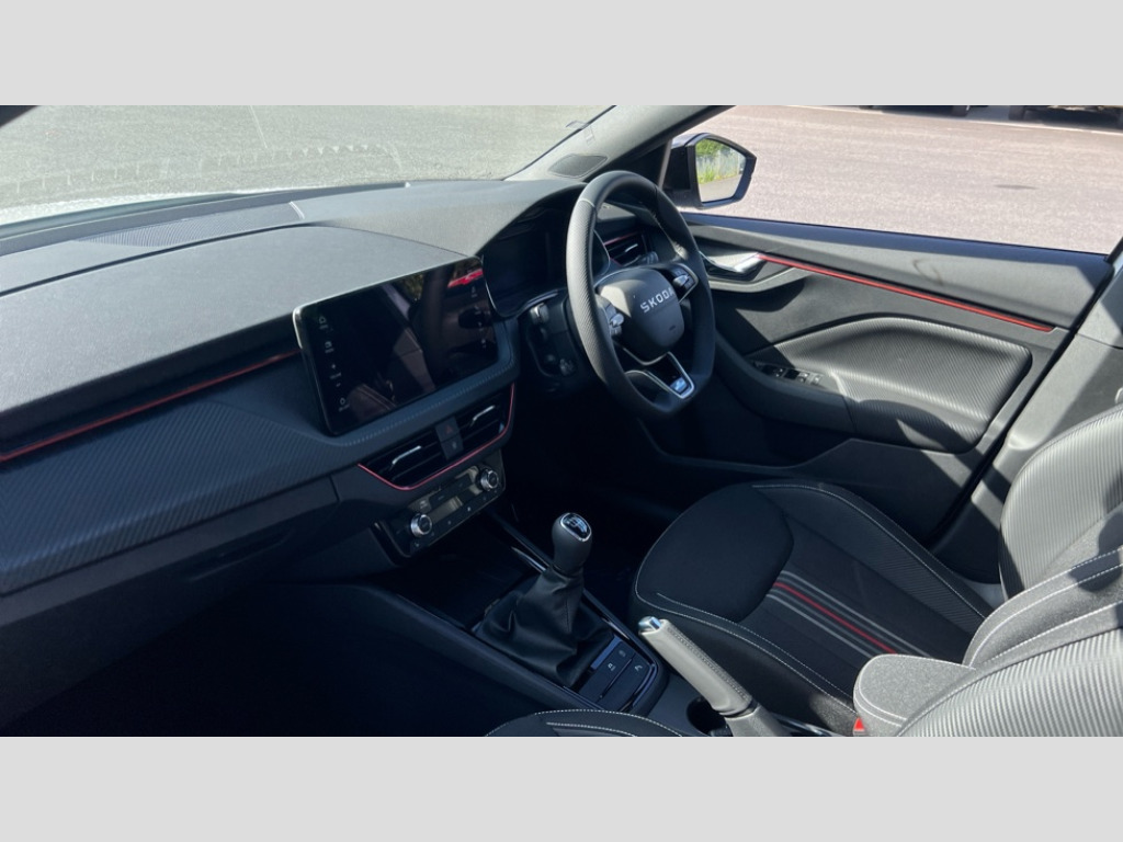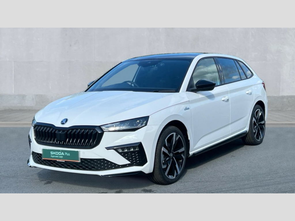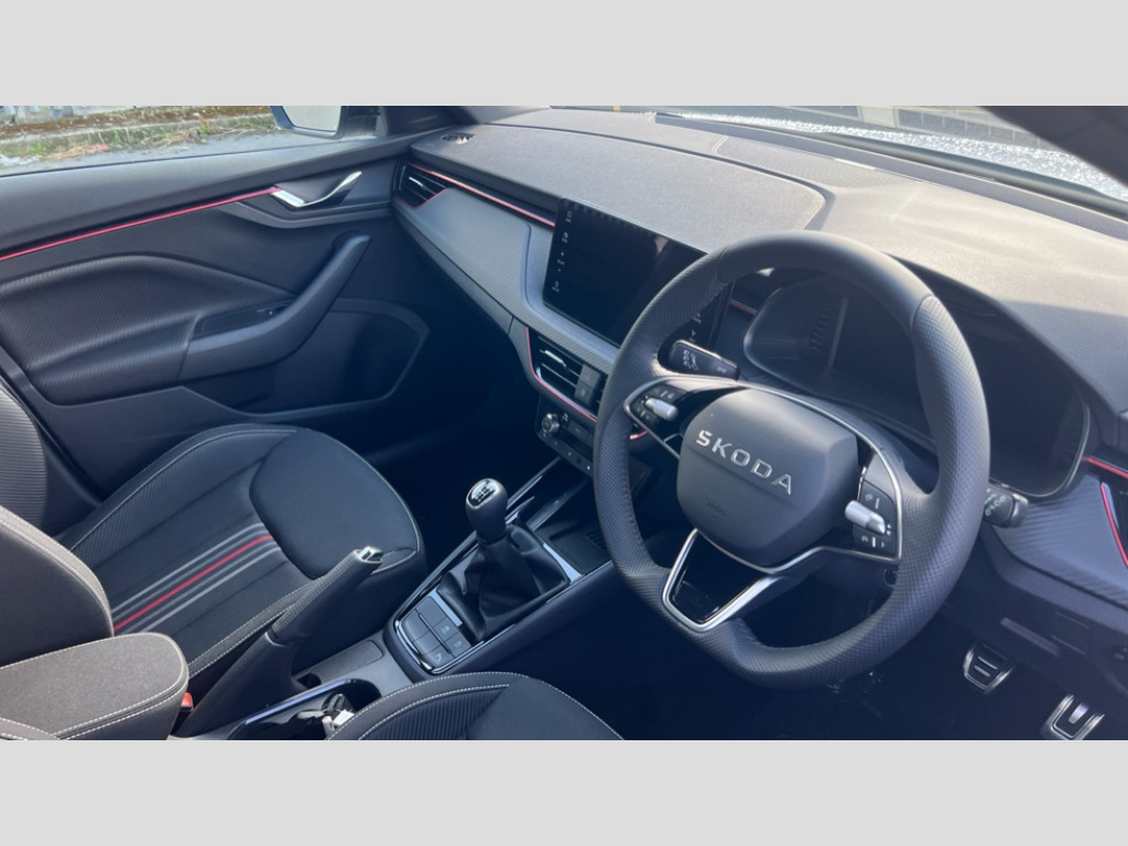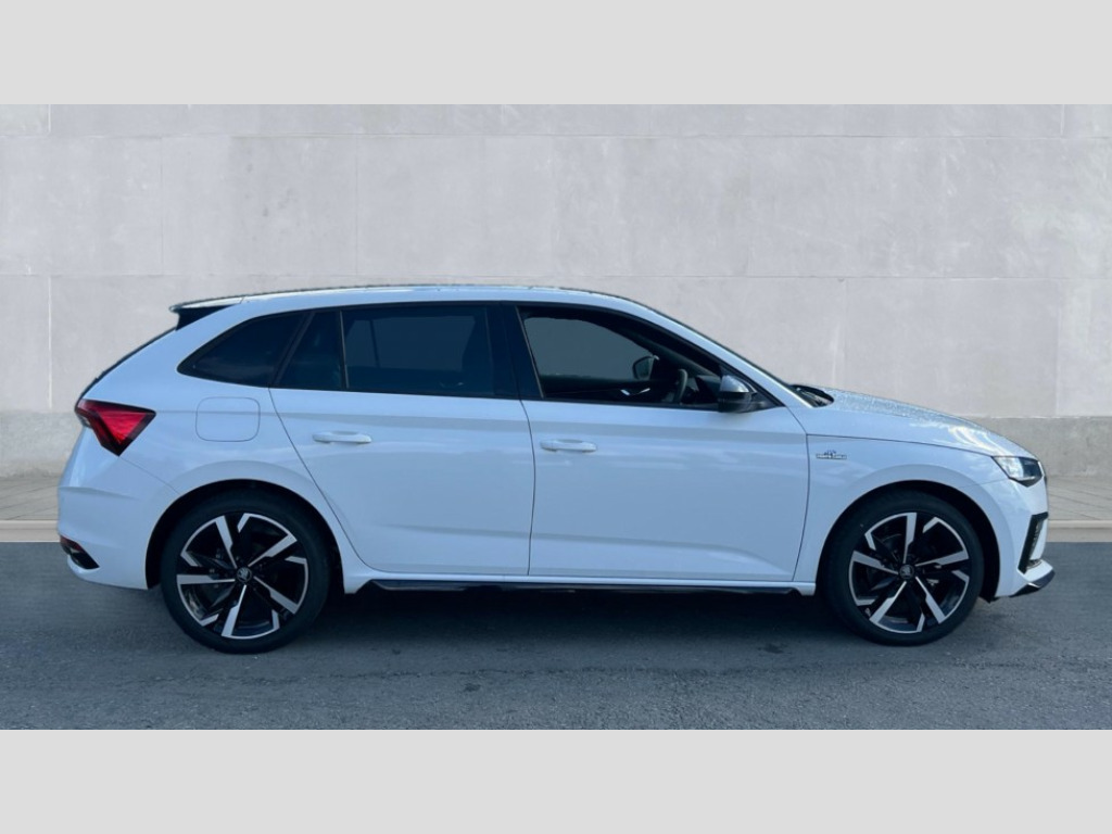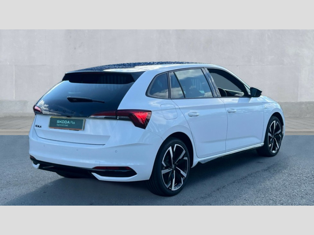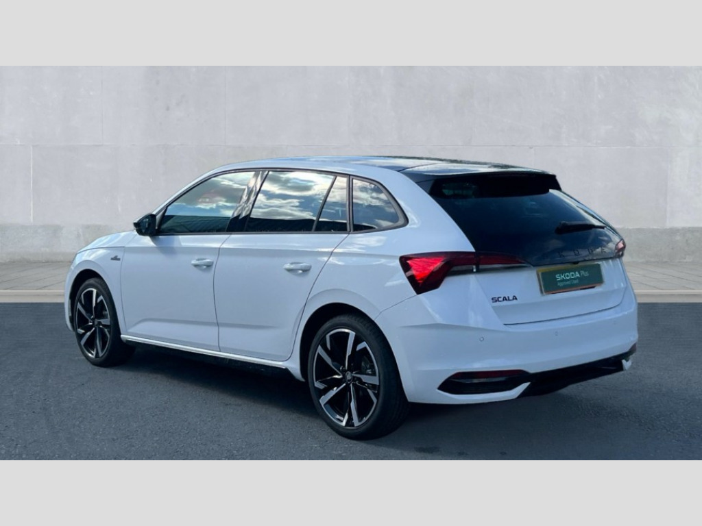 Skoda Scala 1.0 TSI 116 Monte Carlo Edition 5dr Advanced driver attention and drowsiness monitor, Bluetooth, e-Call (emergency call), Front assist system, PAS, Rear parking sensors, Rear view camera, Speed limiter, Tailgate, Traffic sign recognition, Virtual Cockpit - 10.25" digital display, Voice control system, Wireless smartlink, 4 USB C ports, 8 Speakers, 9.2" Skoda navigation display, DAB radio, Auto dimming rear view mirror, Automatic headlamp activation with Coming home and Leaving home feature, Automatic high/low beam, Automatic intermittent wipers, Black door mirrors, Black lettering on boot lid, Black radiator grille, Black rear diffuser, Black roof spoiler, Body colour bumpers, Body colour door handles, Chrome moulding around grille, Extended tailgate glass, Front and rear electric windows, Heated rear window, LED 3rd brake light, LED brake lights, LED daytime running lights, LED high beam, LED low beam, Light sensors, Monte carlo plaque, Panoramic glass roof, Privacy glass, Rear LED fog light, Rear side wing doors, Rear wiper, Tinted windows, Unique dark chrome design logo on alloy wheels, 12V socket in luggage compartment, 3 seat bench in 2nd row, Aluminium pedals, Ambient lighting in white/red, Black / White armrest stitching, Black ceiling, Black roof headlining, Cargo elements, Chrome inner door handles, Door inserts in art.leather carbon, Driver and passenger sun visors with vanity mirror, Dual zone climate control, Front and rear roof lights, Front centre armrest, Front head restraints, Height adjustable driver seat, Height adjustable passenger seat, Ice scraper, Illuminated glove compartment, Inner circulation control with pollen filter, ISOFIX for front passenger seat, Isofix preparation for back seats, Leather gearknob and handbrake lever, Luggage net under rear parcel shelf, Manual lumbar support for front seats, Monte Carlo cloth upholstery, Net package and top tether hooks in boot space, Pocket on the back of both front seats, incl. mobile phone pockets, Rear centre armrest, Red hotstamping, Single front passenger seat, Skoda lettering on steering wheel, Sport seats, Textile floor mats, Third rear headrest, Ticket holder, Top tether for front passenger seat, Umbrella in driver's door, Light and view plus pack - Scala, 3x3 point rear seatbelts, ABS, Child locks, Curtain airbags and front side airbags, Disc brakes, Driver and front passenger airbags, ESP, Hill hold control, Manual leather parking brake, One tone horn, Passenger airbag switch off function, Seatbelt reminder for driver and front passenger, Tyre pressure monitoring system, Anti theft alarm system with interior monitoring, backup horn and towing protection, Anti-theft wheel bolts, Remote central locking with 2 remote folding keys, SAFE function for remote central locking, Carbon effect decorative inserts, 18" Ursa black diamond cut alloy wheels