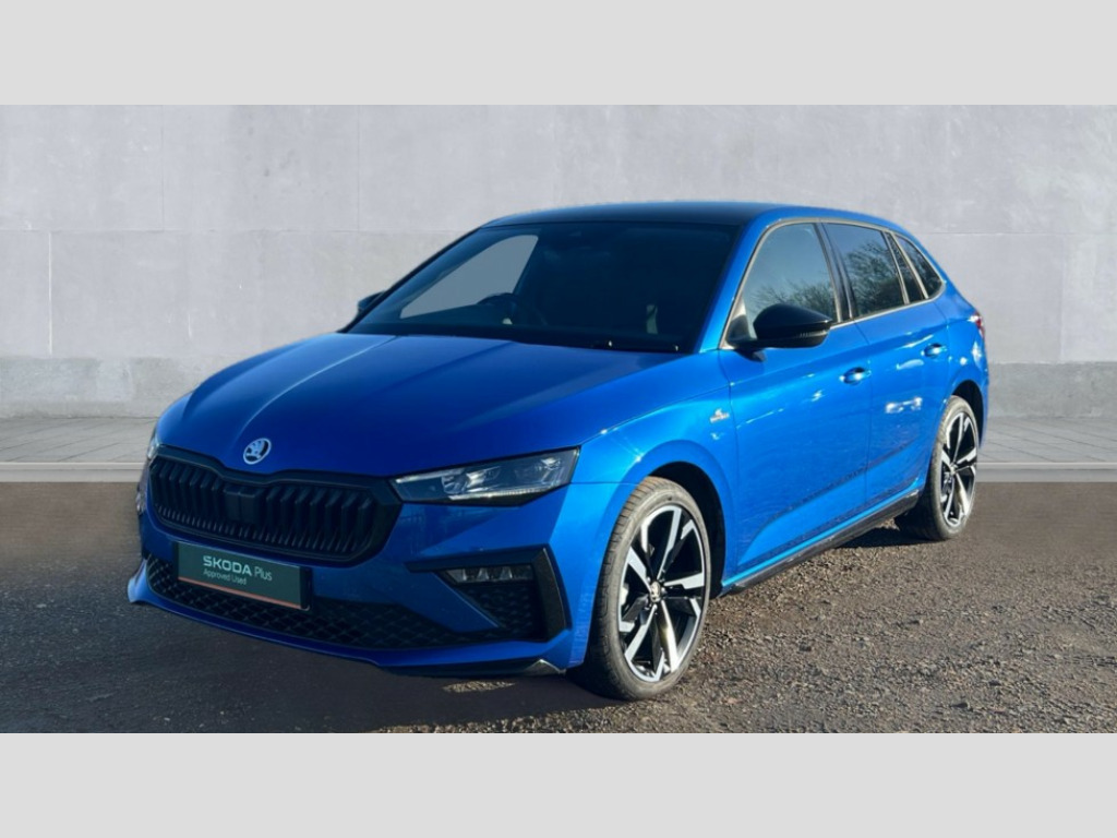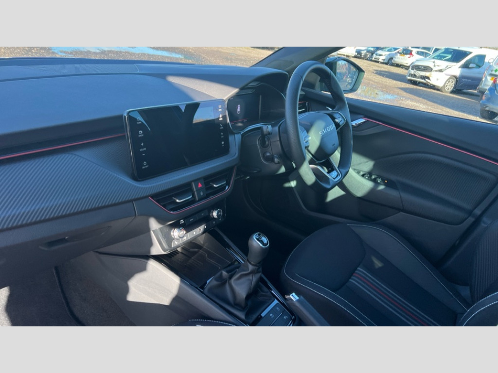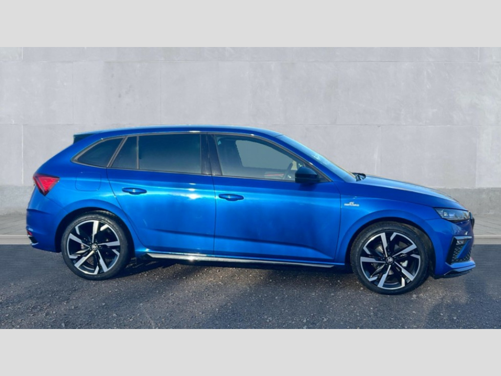 Skoda Scala 1.0 TSI 116 Monte Carlo Edition 5dr Advanced driver attention and drowsiness monitor, Bluetooth, e-Call (emergency call), Front assist system, PAS, Rear parking sensors, Rear view camera, Speed limiter, Tailgate, Traffic sign recognition, Virtual Cockpit - 10.25" digital display, Voice control system, Wireless smartlink, 4 USB C ports, 8 Speakers, 9.2" Skoda navigation display, DAB radio, Auto dimming rear view mirror, Automatic headlamp activation with Coming home and Leaving home feature, Automatic high/low beam, Automatic intermittent wipers, Black door mirrors, Black lettering on boot lid, Black radiator grille, Black rear diffuser, Black roof spoiler, Body colour bumpers, Body colour door handles, Chrome moulding around grille, Extended tailgate glass, Front and rear electric windows, Heated rear window, LED 3rd brake light, LED brake lights, LED daytime running lights, LED high beam, LED low beam, Light sensors, Monte carlo plaque, Panoramic glass roof, Privacy glass, Rear LED fog light, Rear side wing doors, Rear wiper, Tinted windows, Unique dark chrome design logo on alloy wheels, 12V socket in luggage compartment, 3 seat bench in 2nd row, Aluminium pedals, Ambient lighting in white/red, Black / White armrest stitching, Black ceiling, Black roof headlining, Cargo elements, Chrome inner door handles, Door inserts in art.leather carbon, Driver and passenger sun visors with vanity mirror, Dual zone climate control, Front and rear roof lights, Front centre armrest, Front head restraints, Height adjustable driver seat, Height adjustable passenger seat, Ice scraper, Illuminated glove compartment, Inner circulation control with pollen filter, ISOFIX for front passenger seat, Isofix preparation for back seats, Leather gearknob and handbrake lever, Luggage net under rear parcel shelf, Manual lumbar support for front seats, Monte Carlo cloth upholstery, Net package and top tether hooks in boot space, Pocket on the back of both front seats, incl. mobile phone pockets, Rear centre armrest, Red hotstamping, Single front passenger seat, Skoda lettering on steering wheel, Sport seats, Textile floor mats, Third rear headrest, Ticket holder, Top tether for front passenger seat, Umbrella in driver's door, Light and view plus pack - Scala, 3x3 point rear seatbelts, ABS, Child locks, Curtain airbags and front side airbags, Disc brakes, Driver and front passenger airbags, ESP, Hill hold control, Manual leather parking brake, One tone horn, Passenger airbag switch off function, Seatbelt reminder for driver and front passenger, Tyre pressure monitoring system, Anti theft alarm system with interior monitoring, backup horn and towing protection, Anti-theft wheel bolts, Remote central locking with 2 remote folding keys, SAFE function for remote central locking, Carbon effect decorative inserts, 18" Ursa black diamond cut alloy wheels