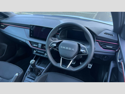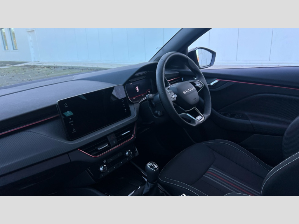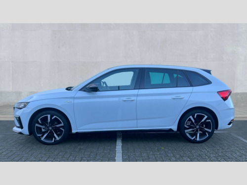 Skoda Scala 1.0 TSI 116 Monte Carlo Edition 5dr Advanced driver attention and drowsiness monitor, Bluetooth, e-Call (emergency call), Front assist system, PAS, Rear parking sensors, Rear view camera, Speed limiter, Tailgate, Traffic sign recognition, Virtual Cockpit - 10.25" digital display, Voice control system, Wireless smartlink, 4 USB C ports, 8 Speakers, 9.2" Skoda navigation display, DAB radio, Auto dimming rear view mirror, Automatic headlamp activation with Coming home and Leaving home feature, Automatic high/low beam, Automatic intermittent wipers, Black door mirrors, Black lettering on boot lid, Black radiator grille, Black rear diffuser, Black roof spoiler, Body colour bumpers, Body colour door handles, Chrome moulding around grille, Extended tailgate glass, Front and rear electric windows, Heated rear window, LED 3rd brake light, LED brake lights, LED daytime running lights, LED high beam, LED low beam, Light sensors, Monte carlo plaque, Panoramic glass roof, Privacy glass, Rear LED fog light, Rear side wing doors, Rear wiper, Tinted windows, Unique dark chrome design logo on alloy wheels, 12V socket in luggage compartment, 3 seat bench in 2nd row, Aluminium pedals, Ambient lighting in white/red, Black / White armrest stitching, Black ceiling, Black roof headlining, Cargo elements, Chrome inner door handles, Door inserts in art.leather carbon, Driver and passenger sun visors with vanity mirror, Dual zone climate control, Front and rear roof lights, Front centre armrest, Front head restraints, Height adjustable driver seat, Height adjustable passenger seat, Ice scraper, Illuminated glove compartment, Inner circulation control with pollen filter, ISOFIX for front passenger seat, Isofix preparation for back seats, Leather gearknob and handbrake lever, Luggage net under rear parcel shelf, Manual lumbar support for front seats, Monte Carlo cloth upholstery, Net package and top tether hooks in boot space, Pocket on the back of both front seats, incl. mobile phone pockets, Rear centre armrest, Red hotstamping, Single front passenger seat, Skoda lettering on steering wheel, Sport seats, Textile floor mats, Third rear headrest, Ticket holder, Top tether for front passenger seat, Umbrella in driver's door, Light and view plus pack - Scala, 3x3 point rear seatbelts, ABS, Child locks, Curtain airbags and front side airbags, Disc brakes, Driver and front passenger airbags, ESP, Hill hold control, Manual leather parking brake, One tone horn, Passenger airbag switch off function, Seatbelt reminder for driver and front passenger, Tyre pressure monitoring system, Anti theft alarm system with interior monitoring, backup horn and towing protection, Anti-theft wheel bolts, Remote central locking with 2 remote folding keys, SAFE function for remote central locking, Carbon effect decorative inserts, 18" Ursa black diamond cut alloy wheels