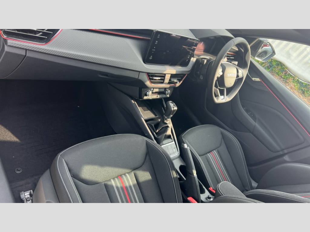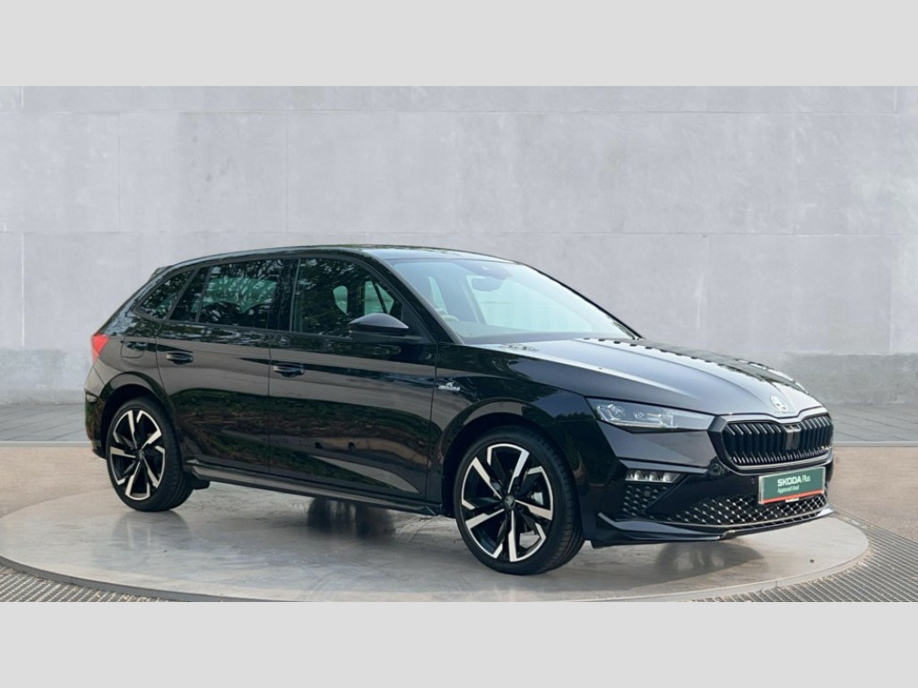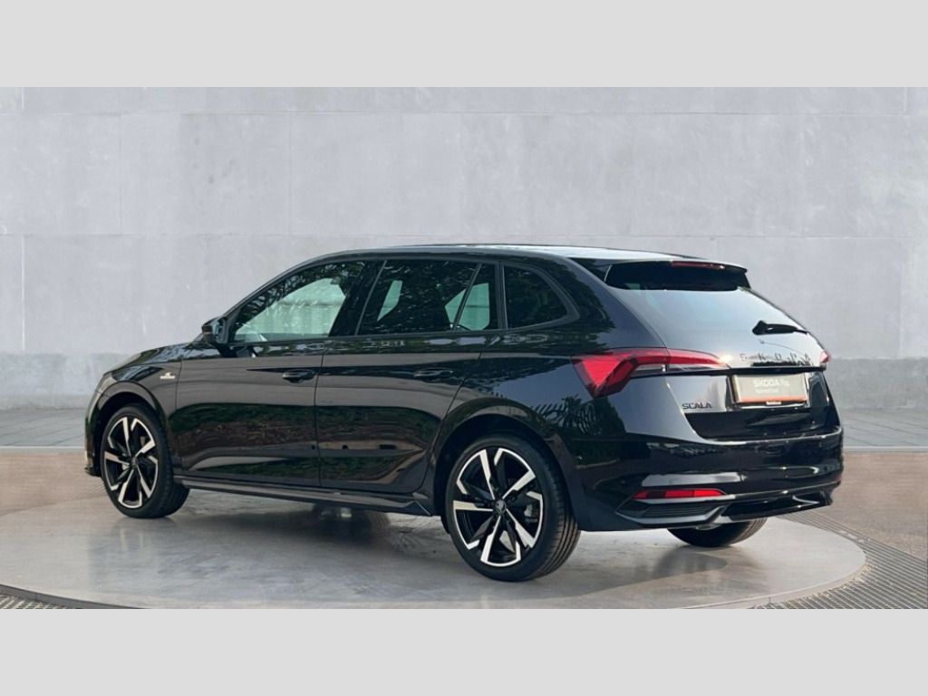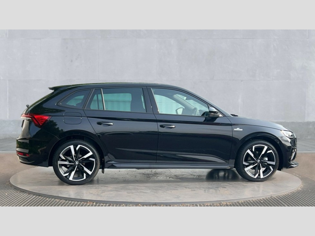 Skoda Scala 1.0 TSI 116 Monte Carlo Edition 5dr DSG Advanced driver attention and drowsiness monitor, Bluetooth, e-Call (emergency call), Front assist system, PAS, Rear parking sensors, Rear view camera, Speed limiter, Tailgate, Traffic sign recognition, Virtual Cockpit - 10.25" digital display, Voice control system, Wireless smartlink, 4 USB C ports, 8 Speakers, 9.2" Skoda navigation display, DAB radio, Auto dimming rear view mirror, Automatic headlamp activation with Coming home and Leaving home feature, Automatic high/low beam, Automatic intermittent wipers, Black door mirrors, Black lettering on boot lid, Black radiator grille, Black rear diffuser, Black roof spoiler, Body colour bumpers, Body colour door handles, Chrome moulding around grille, Extended tailgate glass, Front and rear electric windows, Heated rear window, LED 3rd brake light, LED brake lights, LED daytime running lights, LED high beam, LED low beam, Light sensors, Monte carlo plaque, Panoramic glass roof, Privacy glass, Rear LED fog light, Rear side wing doors, Rear wiper, Tinted windows, Unique dark chrome design logo on alloy wheels, 12V socket in luggage compartment, 3 seat bench in 2nd row, Aluminium pedals, Ambient lighting in white/red, Black / White armrest stitching, Black ceiling, Black roof headlining, Cargo elements, Chrome inner door handles, Door inserts in art.leather carbon, Driver and passenger sun visors with vanity mirror, Dual zone climate control, Front and rear roof lights, Front centre armrest, Front head restraints, Height adjustable driver seat, Height adjustable passenger seat, Ice scraper, Illuminated glove compartment, Inner circulation control with pollen filter, ISOFIX for front passenger seat, Isofix preparation for back seats, Leather gearknob and handbrake lever, Luggage net under rear parcel shelf, Manual lumbar support for front seats, Monte Carlo cloth upholstery, Net package and top tether hooks in boot space, Pocket on the back of both front seats, incl. mobile phone pockets, Rear centre armrest, Red hotstamping, Single front passenger seat, Skoda lettering on steering wheel, Sport seats, Textile floor mats, Third rear headrest, Ticket holder, Top tether for front passenger seat, Umbrella in driver's door, Light and view plus pack - Scala, 3x3 point rear seatbelts, ABS, Child locks, Curtain airbags and front side airbags, Disc brakes, Driver and front passenger airbags, ESP, Hill hold control, Manual leather parking brake, One tone horn, Passenger airbag switch off function, Seatbelt reminder for driver and front passenger, Tyre pressure monitoring system, Anti theft alarm system with interior monitoring, backup horn and towing protection, Anti-theft wheel bolts, Remote central locking with 2 remote folding keys, SAFE function for remote central locking, Carbon effect decorative inserts, 18" Ursa black diamond cut alloy wheels