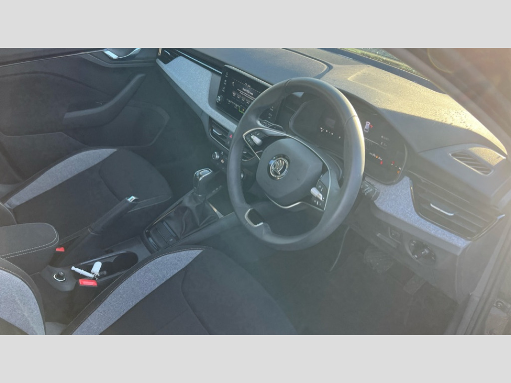 Skoda Scala 1.0 TSI 116 SE 5dr DSG 8" Digital display, Advanced driver attention and drowsiness monitor, Bluetooth, e-Call (emergency call), Front assist system, PAS, Rear parking sensors, Speed limiter, Tailgate, Traffic sign recognition, Wireless smartlink, 4 USB C ports, 8 Speakers, 8.25" Skoda infotainment display, DAB radio, Auto dimming rear view mirror, Automatic headlamp activation with Coming home and Leaving home feature, Automatic high/low beam, Body colour bumpers, Body colour door mirrors and handles, Chrome moulding around grille, Front and rear electric windows, Full LED headlights, Heated rear window, LED 3rd brake light, LED brake lights, LED daytime running lights, LED front turning lights, LED high beam, LED low beam, LED taillights, Rear LED fog light, Rear side wing doors, Rear wiper, Tinted windows, 12V socket in luggage compartment, 3 seat bench in 2nd row, Black / Grey armrest stitching, Black hotstamping, Cargo elements, Chrome inner door handles, Door inserts in satin black, Driver and passenger sun visors with vanity mirror, Dual zone climate control, Front and rear roof lights, Front centre armrest, Front head restraints, Glasses storage in roof liner, Height adjustable driver seat, Height adjustable passenger seat, Ice scraper, Illuminated glove compartment, Inner circulation control with pollen filter, ISOFIX for front passenger seat, Isofix preparation for back seats, Leather gearknob and handbrake lever, Loft cloth upholstery, Luggage net under rear parcel shelf, Manual lumbar support for front seats, Net package and top tether hooks in boot space, Pearl grey ceiling, Pocket on the back of both front seats, incl. mobile phone pockets, Single front passenger seat, Textile floor mats, Third rear headrest, Ticket holder, Top tether for front passenger seat, Umbrella in driver's door, 3x3 point rear seatbelts, ABS, Child locks, Curtain airbags and front side airbags, Disc brakes, Driver and front passenger airbags, ESP, Hill hold control, Manual leather parking brake, One tone horn, Passenger airbag switch off function, Seatbelt reminder for driver and front passenger, Tyre pressure monitoring system, Anti theft alarm system with interior monitoring, backup horn and towing protection, Anti-theft wheel bolts, Remote central locking with 2 remote folding keys, SAFE function for remote central locking, Decord pad, door inserts Kota uni