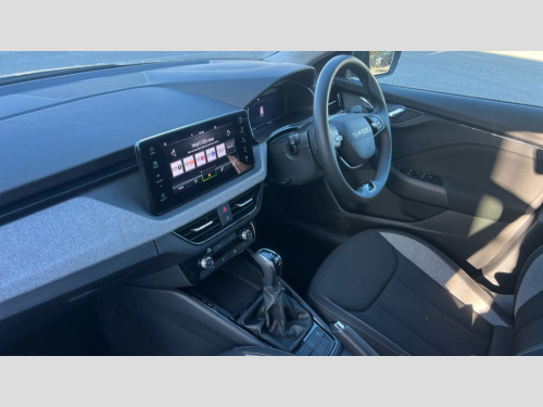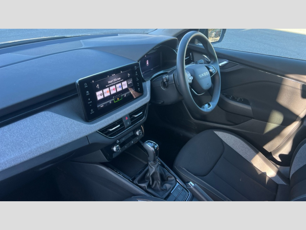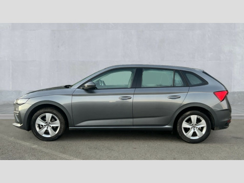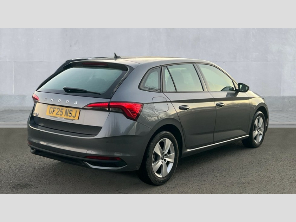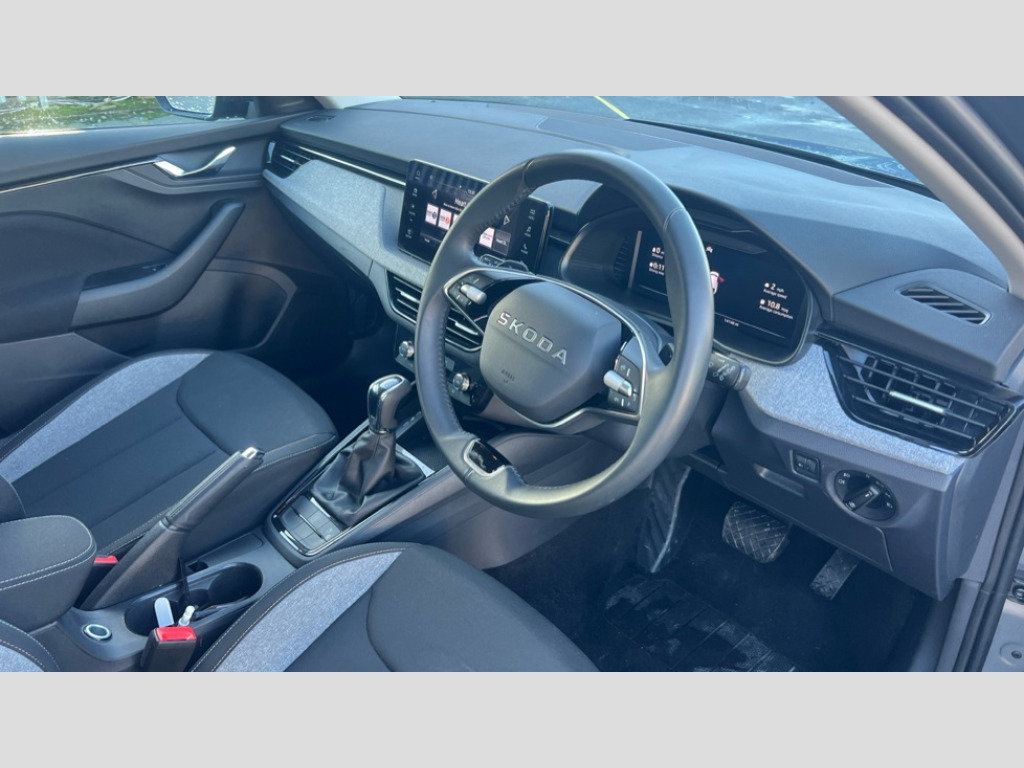 Skoda Scala 1.0 TSI 116 SE Edition 5dr DSG Advanced driver attention and drowsiness monitor, Bluetooth, e-Call (emergency call), Front assist system, PAS, Rear parking sensors, Rear view camera, Speed limiter, Tailgate, Traffic sign recognition, Virtual Cockpit - 10.25" digital display, Voice control system, Wireless smartlink, 4 USB C ports, 8 Speakers, 9.2" Skoda navigation display, DAB radio, Auto dimming rear view mirror, Automatic headlamp activation with Coming home and Leaving home feature, Automatic high/low beam, Body colour bumpers, Body colour door mirrors and handles, Chrome moulding around grille, Front and rear electric windows, Full LED headlights, Heated rear window, LED 3rd brake light, LED brake lights, LED daytime running lights, LED front turning lights, LED high beam, LED low beam, LED taillights, Rear LED fog light, Rear side wing doors, Rear wiper, Tinted windows, Unique dark chrome design logo on alloy wheels, 12V socket in luggage compartment, 3 seat bench in 2nd row, Black / Grey armrest stitching, Black hotstamping, Cargo elements, Chrome inner door handles, Door inserts in satin black, Driver and passenger sun visors with vanity mirror, Dual zone climate control, Front and rear roof lights, Front centre armrest, Front head restraints, Glasses storage in roof liner, Height adjustable driver seat, Height adjustable passenger seat, Ice scraper, Illuminated glove compartment, Inner circulation control with pollen filter, ISOFIX for front passenger seat, Isofix preparation for back seats, Leather gearknob and handbrake lever, Loft cloth upholstery, Luggage net under rear parcel shelf, Manual lumbar support for front seats, Net package and top tether hooks in boot space, Pearl grey ceiling, Pocket on the back of both front seats, incl. mobile phone pockets, Single front passenger seat, Skoda lettering on steering wheel, Textile floor mats, Third rear headrest, Ticket holder, Top tether for front passenger seat, Umbrella in driver's door, 3x3 point rear seatbelts, ABS, Child locks, Curtain airbags and front side airbags, Disc brakes, Driver and front passenger airbags, ESP, Hill hold control, Manual leather parking brake, One tone horn, Passenger airbag switch off function, Seatbelt reminder for driver and front passenger, Tyre pressure monitoring system, Anti theft alarm system with interior monitoring, backup horn and towing protection, Anti-theft wheel bolts, Remote central locking with 2 remote folding keys, SAFE function for remote central locking, Decord pad, door inserts Kota uni
