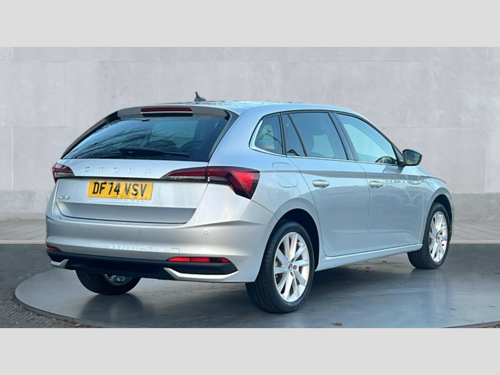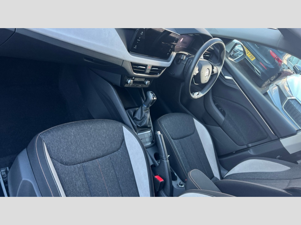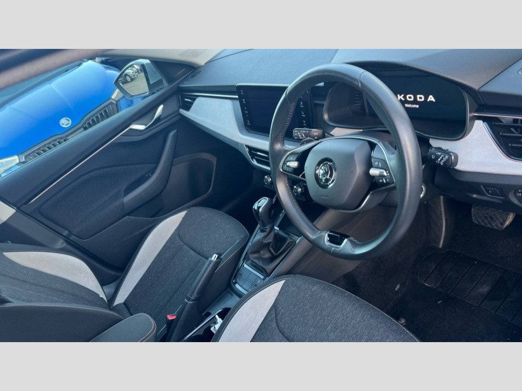 Skoda Scala 1.0 TSI 116 SE L 5dr DSG Advanced driver attention and drowsiness monitor, Bluetooth, e-Call (emergency call), Front assist system, PAS, Rear parking sensors, Speed limiter, Tailgate, Traffic sign recognition, Virtual Cockpit - 10.25" digital display, Voice control system, Wireless smartlink, 4 USB C ports, 8 Speakers, 9.2" Skoda navigation display, DAB radio, Auto dimming rear view mirror, Automatic headlamp activation with Coming home and Leaving home feature, Automatic high/low beam, Automatic intermittent wipers, Body colour bumpers, Body colour door mirrors and handles, Chrome moulding around grille, Chrome window frames, Front and rear electric windows, Heated rear window, LED 3rd brake light, LED brake lights, LED daytime running lights, LED front turning lights, LED high beam, LED low beam, Light sensors, Privacy glass, Rear LED fog light, Rear side wing doors, Rear wiper, Tinted windows, 12V socket in luggage compartment, 3 seat bench in 2nd row, Ambient lighting in white/red, Black / Copper armrest stitching, Cargo elements, Chrome inner door handles, Copper hotstamping, Door inserts in accent black, Driver and passenger sun visors with vanity mirror, Dual zone climate control, Front and rear roof lights, Front centre armrest, Front head restraints, Glasses storage in roof liner, Height adjustable driver seat, Height adjustable passenger seat, Ice scraper, Illuminated glove compartment, Inner circulation control with pollen filter, ISOFIX for front passenger seat, Isofix preparation for back seats, Leather gearknob and handbrake lever, Lodge cloth upholstery, Luggage net under rear parcel shelf, Manual lumbar support for front seats, Net package and top tether hooks in boot space, Pearl grey ceiling, Pocket on the back of both front seats, incl. mobile phone pockets, Rear centre armrest, Single front passenger seat, Textile floor mats, Third rear headrest, Ticket holder, Top tether for front passenger seat, Umbrella in driver's door, 3x3 point rear seatbelts, ABS, Child locks, Curtain airbags and front side airbags, Disc brakes, Driver and front passenger airbags, ESP, Hill hold control, Manual leather parking brake, One tone horn, Passenger airbag switch off function, Seatbelt reminder for driver and front passenger, Tyre pressure monitoring system, Anti theft alarm system with interior monitoring, backup horn and towing protection, Anti-theft wheel bolts, Remote central locking with 2 remote folding keys, SAFE function for remote central locking, Decorative inserts