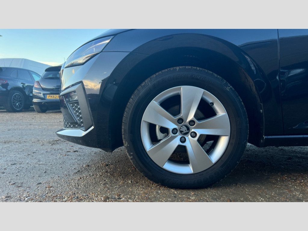 Skoda Scala 1.0 TSI 95 SE Edition 5dr Advanced driver attention and drowsiness monitor, Bluetooth, e-Call (emergency call), Front assist system, PAS, Rear parking sensors, Rear view camera, Speed limiter, Tailgate, Traffic sign recognition, Virtual Cockpit - 10.25" digital display, Voice control system, Wireless smartlink, 4 USB C ports, 8 Speakers, 9.2" Skoda navigation display, DAB radio, Auto dimming rear view mirror, Automatic headlamp activation with Coming home and Leaving home feature, Automatic high/low beam, Body colour bumpers, Body colour door mirrors and handles, Chrome moulding around grille, Front and rear electric windows, Full LED headlights, Heated rear window, LED 3rd brake light, LED brake lights, LED daytime running lights, LED front turning lights, LED high beam, LED low beam, LED taillights, Rear LED fog light, Rear side wing doors, Rear wiper, Tinted windows, Unique dark chrome design logo on alloy wheels, 12V socket in luggage compartment, 3 seat bench in 2nd row, Black / Grey armrest stitching, Black hotstamping, Cargo elements, Chrome inner door handles, Door inserts in satin black, Driver and passenger sun visors with vanity mirror, Dual zone climate control, Front and rear roof lights, Front centre armrest, Front head restraints, Glasses storage in roof liner, Height adjustable driver seat, Height adjustable passenger seat, Ice scraper, Illuminated glove compartment, Inner circulation control with pollen filter, ISOFIX for front passenger seat, Isofix preparation for back seats, Leather gearknob and handbrake lever, Loft cloth upholstery, Luggage net under rear parcel shelf, Manual lumbar support for front seats, Net package and top tether hooks in boot space, Pearl grey ceiling, Pocket on the back of both front seats, incl. mobile phone pockets, Single front passenger seat, Skoda lettering on steering wheel, Textile floor mats, Third rear headrest, Ticket holder, Top tether for front passenger seat, Umbrella in driver's door, 3x3 point rear seatbelts, ABS, Child locks, Curtain airbags and front side airbags, Disc brakes, Driver and front passenger airbags, ESP, Hill hold control, Manual leather parking brake, One tone horn, Passenger airbag switch off function, Seatbelt reminder for driver and front passenger, Tyre pressure monitoring system, Anti theft alarm system with interior monitoring, backup horn and towing protection, Anti-theft wheel bolts, Remote central locking with 2 remote folding keys, SAFE function for remote central locking, Decord pad, door inserts Kota uni