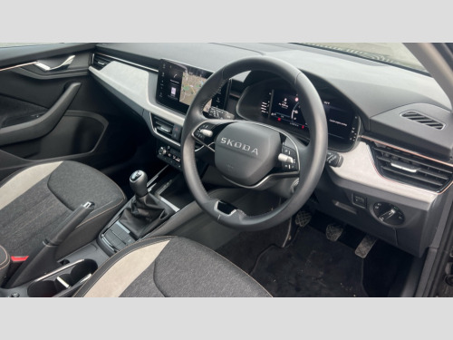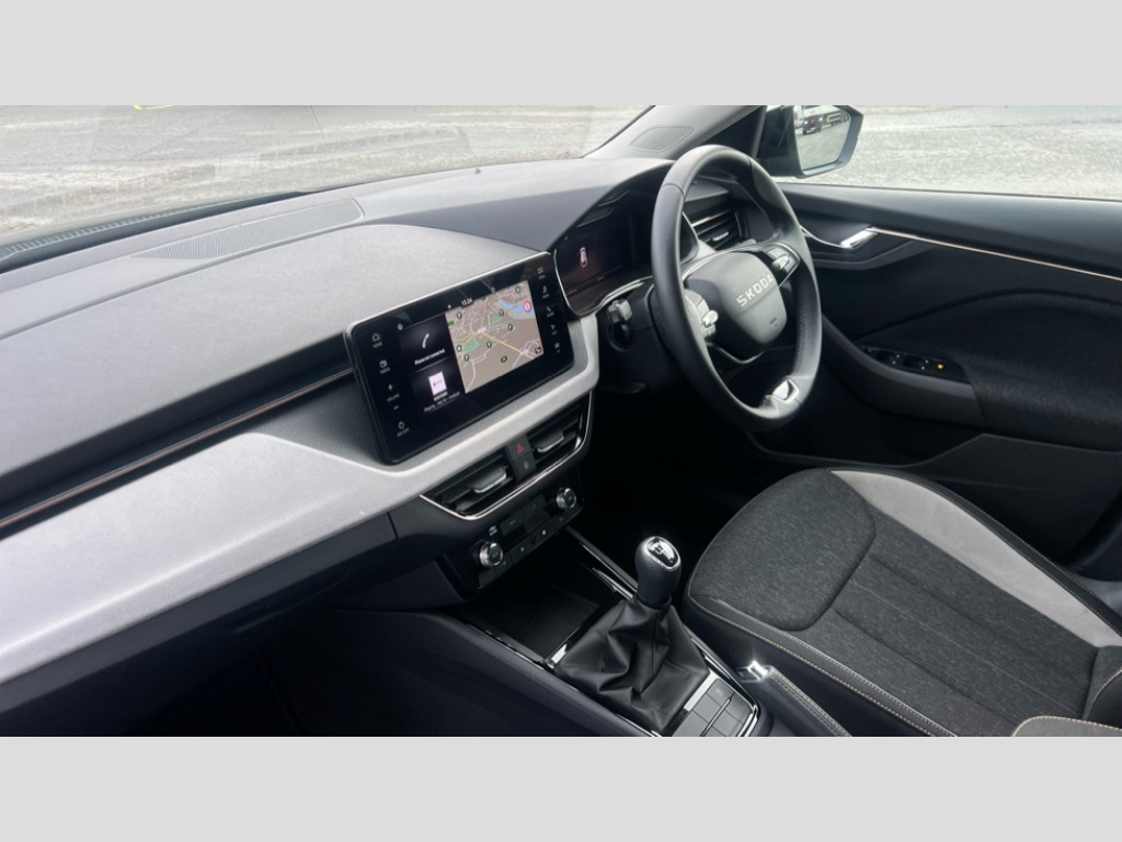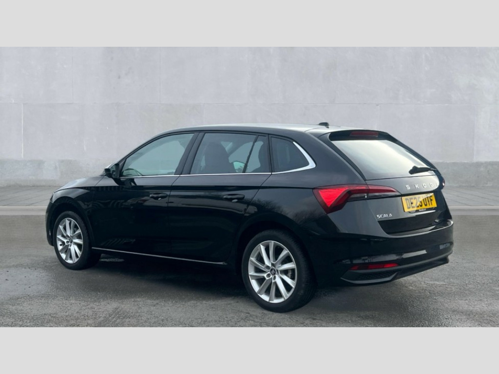 Skoda Scala 1.0 TSI 95 SE L 5dr Advanced driver attention and drowsiness monitor, Bluetooth, e-Call (emergency call), Front assist system, PAS, Rear parking sensors, Speed limiter, Tailgate, Traffic sign recognition, Virtual Cockpit - 10.25" digital display, Voice control system, Wireless smartlink, 4 USB C ports, 8 Speakers, 9.2" Skoda navigation display, DAB radio, Auto dimming rear view mirror, Automatic headlamp activation with Coming home and Leaving home feature, Automatic high/low beam, Automatic intermittent wipers, Body colour bumpers, Body colour door mirrors and handles, Chrome moulding around grille, Chrome window frames, Front and rear electric windows, Heated rear window, LED 3rd brake light, LED brake lights, LED daytime running lights, LED front turning lights, LED high beam, LED low beam, Light sensors, Privacy glass, Rear LED fog light, Rear side wing doors, Rear wiper, Tinted windows, 12V socket in luggage compartment, 3 seat bench in 2nd row, Ambient lighting in white/red, Black / Copper armrest stitching, Cargo elements, Chrome inner door handles, Copper hotstamping, Door inserts in accent black, Driver and passenger sun visors with vanity mirror, Dual zone climate control, Front and rear roof lights, Front centre armrest, Front head restraints, Glasses storage in roof liner, Height adjustable driver seat, Height adjustable passenger seat, Ice scraper, Illuminated glove compartment, Inner circulation control with pollen filter, ISOFIX for front passenger seat, Isofix preparation for back seats, Leather gearknob and handbrake lever, Lodge cloth upholstery, Luggage net under rear parcel shelf, Manual lumbar support for front seats, Net package and top tether hooks in boot space, Pearl grey ceiling, Pocket on the back of both front seats, incl. mobile phone pockets, Rear centre armrest, Single front passenger seat, Textile floor mats, Third rear headrest, Ticket holder, Top tether for front passenger seat, Umbrella in driver's door, 3x3 point rear seatbelts, ABS, Child locks, Curtain airbags and front side airbags, Disc brakes, Driver and front passenger airbags, ESP, Hill hold control, Manual leather parking brake, One tone horn, Passenger airbag switch off function, Seatbelt reminder for driver and front passenger, Tyre pressure monitoring system, Anti theft alarm system with interior monitoring, backup horn and towing protection, Anti-theft wheel bolts, Remote central locking with 2 remote folding keys, SAFE function for remote central locking, Decorative inserts