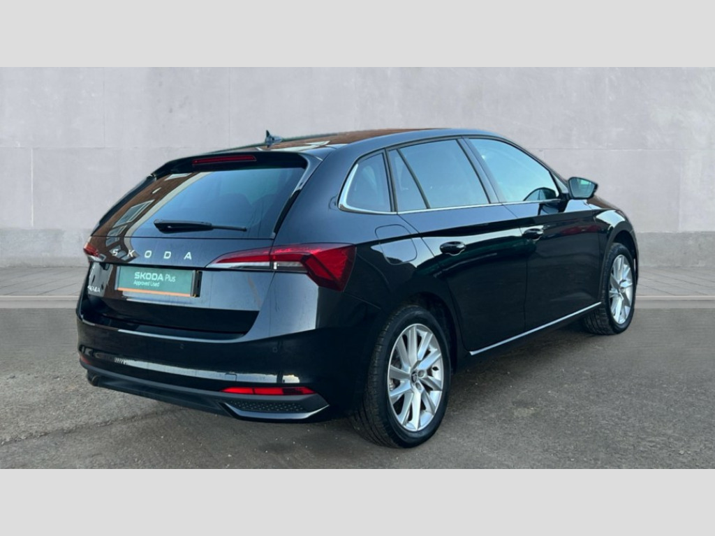 Skoda Scala 1.0 TSI 95 SE L Edition 5dr Advanced driver attention and drowsiness monitor, Bluetooth, e-Call (emergency call), Front assist system, PAS, Rear parking sensors, Rear view camera, Speed limiter, Tailgate, Traffic sign recognition, Virtual Cockpit - 10.25" digital display, Voice control system, Wireless smartlink, 4 USB C ports, 8 Speakers, 9.2" Skoda navigation display, DAB radio, Auto dimming rear view mirror, Automatic headlamp activation with Coming home and Leaving home feature, Automatic high/low beam, Automatic intermittent wipers, Body colour bumpers, Body colour door mirrors and handles, Chrome moulding around grille, Chrome window frames, Front and rear electric windows, Heated rear window, LED 3rd brake light, LED brake lights, LED daytime running lights, LED front turning lights, LED high beam, LED low beam, Light sensors, Privacy glass, Rear LED fog light, Rear side wing doors, Rear wiper, Tinted windows, Unique dark chrome design logo on alloy wheels, 12V socket in luggage compartment, 3 seat bench in 2nd row, Ambient lighting in white/red, Black / Copper armrest stitching, Cargo elements, Chrome inner door handles, Copper hotstamping, Door inserts in accent black, Driver and passenger sun visors with vanity mirror, Dual zone climate control, Front and rear roof lights, Front centre armrest, Front head restraints, Glasses storage in roof liner, Height adjustable driver seat, Height adjustable passenger seat, Ice scraper, Illuminated glove compartment, Inner circulation control with pollen filter, ISOFIX for front passenger seat, Isofix preparation for back seats, Leather gearknob and handbrake lever, Lodge cloth upholstery, Luggage net under rear parcel shelf, Manual lumbar support for front seats, Net package and top tether hooks in boot space, Pearl grey ceiling, Pocket on the back of both front seats, incl. mobile phone pockets, Rear centre armrest, Single front passenger seat, Skoda lettering on steering wheel, Textile floor mats, Third rear headrest, Ticket holder, Top tether for front passenger seat, Umbrella in driver's door, Convenience pack without rear camera - Scala, 3x3 point rear seatbelts, ABS, Child locks, Curtain airbags and front side airbags, Disc brakes, Driver and front passenger airbags, ESP, Hill hold control, Manual leather parking brake, One tone horn, Passenger airbag switch off function, Seatbelt reminder for driver and front passenger, Tyre pressure monitoring system, Anti theft alarm system with interior monitoring, backup horn and towing protection, Anti-theft wheel bolts, Remote central locking with 2 remote folding keys, SAFE function for remote central locking, Decorative inserts