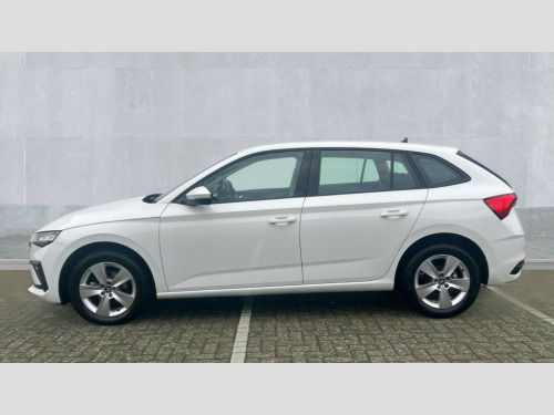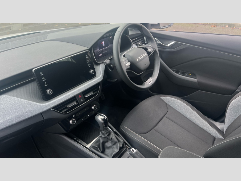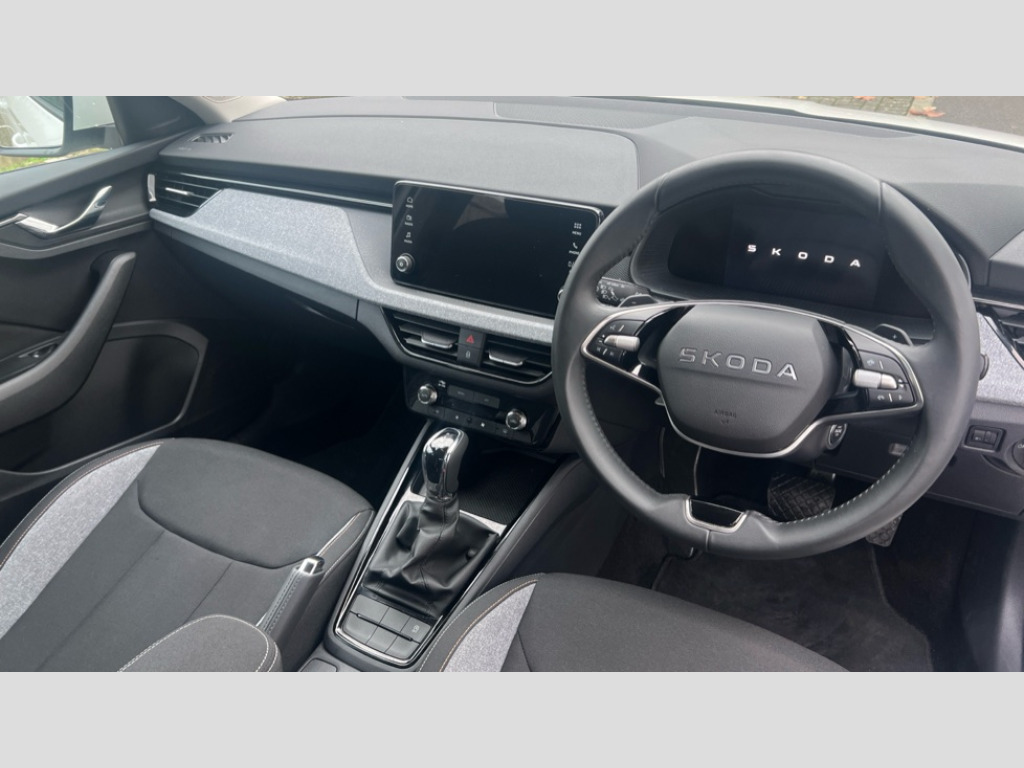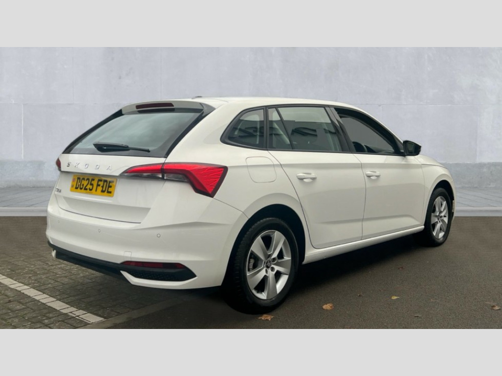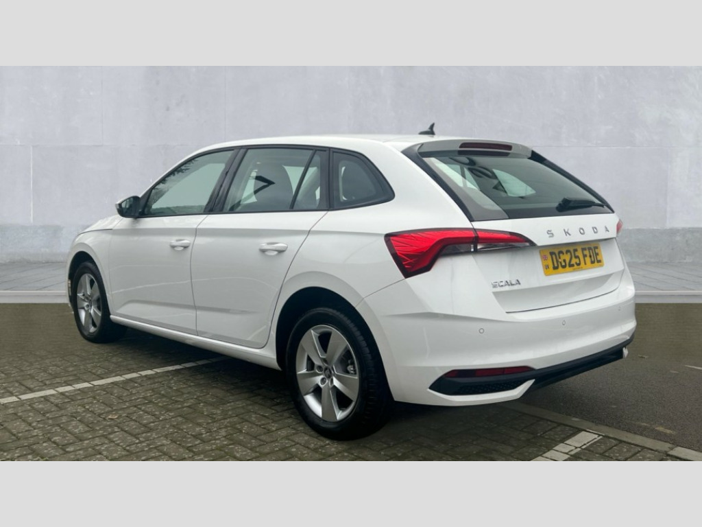 Skoda Scala 1.5 TSI SE 5dr DSG 8" Digital display, Advanced driver attention and drowsiness monitor, Bluetooth, e-Call (emergency call), Front assist system, PAS, Rear parking sensors, Speed limiter, Tailgate, Traffic sign recognition, Wireless smartlink, 4 USB C ports, 8 Speakers, 8.25" Skoda infotainment display, DAB radio, Auto dimming rear view mirror, Automatic headlamp activation with Coming home and Leaving home feature, Automatic high/low beam, Body colour bumpers, Body colour door mirrors and handles, Chrome moulding around grille, Front and rear electric windows, Full LED headlights, Heated rear window, LED 3rd brake light, LED brake lights, LED daytime running lights, LED front turning lights, LED high beam, LED low beam, LED taillights, Rear LED fog light, Rear side wing doors, Rear wiper, Tinted windows, 12V socket in luggage compartment, 3 seat bench in 2nd row, Black / Grey armrest stitching, Black hotstamping, Cargo elements, Chrome inner door handles, Door inserts in satin black, Driver and passenger sun visors with vanity mirror, Dual zone climate control, Front and rear roof lights, Front centre armrest, Front head restraints, Glasses storage in roof liner, Height adjustable driver seat, Height adjustable passenger seat, Ice scraper, Illuminated glove compartment, Inner circulation control with pollen filter, ISOFIX for front passenger seat, Isofix preparation for back seats, Leather gearknob and handbrake lever, Loft cloth upholstery, Luggage net under rear parcel shelf, Manual lumbar support for front seats, Net package and top tether hooks in boot space, Pearl grey ceiling, Pocket on the back of both front seats, incl. mobile phone pockets, Single front passenger seat, Textile floor mats, Third rear headrest, Ticket holder, Top tether for front passenger seat, Umbrella in driver's door, 3x3 point rear seatbelts, ABS, Child locks, Curtain airbags and front side airbags, Disc brakes, Driver and front passenger airbags, ESP, Hill hold control, Manual leather parking brake, One tone horn, Passenger airbag switch off function, Seatbelt reminder for driver and front passenger, Tyre pressure monitoring system, Anti theft alarm system with interior monitoring, backup horn and towing protection, Anti-theft wheel bolts, Remote central locking with 2 remote folding keys, SAFE function for remote central locking, Decord pad, door inserts Kota uni