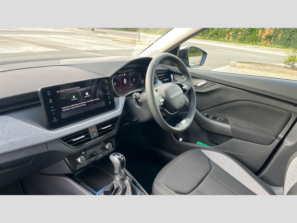 9.2" Skoda Navigation Advanced driver attention and drowsiness monitor, Bluetooth, e-Call (emergency call), Front assist system, PAS, Rear parking sensors, Rear view camera, Speed limiter, Tailgate, Traffic sign recognition, Virtual Cockpit - 10.25" digital display, Voice control system, Wireless smartlink, 4 USB C ports, 8 Speakers, 9.2" Skoda navigation display, DAB radio, Auto dimming rear view mirror, Automatic headlamp activation with Coming home and Leaving home feature, Automatic high/low beam, Body colour bumpers, Body colour door mirrors and handles, Chrome moulding around grille, Front and rear electric windows, Full LED headlights, Heated rear window, LED 3rd brake light, LED brake lights, LED daytime running lights, LED front turning lights, LED high beam, LED low beam, LED taillights, Rear LED fog light, Rear side wing doors, Rear wiper, Tinted windows, Unique dark chrome design logo on alloy wheels, 12V socket in luggage compartment, 3 seat bench in 2nd row, Black / Grey armrest stitching, Black hotstamping, Cargo elements, Chrome inner door handles, Door inserts in satin black, Driver and passenger sun visors with vanity mirror, Dual zone climate control, Front and rear roof lights, Front centre armrest, Front head restraints, Glasses storage in roof liner, Height adjustable driver seat, Height adjustable passenger seat, Ice scraper, Illuminated glove compartment, Inner circulation control with pollen filter, ISOFIX for front passenger seat, Isofix preparation for back seats, Leather gearknob and handbrake lever, Loft cloth upholstery, Luggage net under rear parcel shelf, Manual lumbar support for front seats, Net package and top tether hooks in boot space, Pearl grey ceiling, Pocket on the back of both front seats, incl. mobile phone pockets, Single front passenger seat, Skoda lettering on steering wheel, Textile floor mats, Third rear headrest, Ticket holder, Top tether for front passenger seat, Umbrella in driver's door, 3x3 point rear seatbelts, ABS, Child locks, Curtain airbags and front side airbags, Disc brakes, Driver and front passenger airbags, ESP, Hill hold control, Manual leather parking brake, One tone horn, Passenger airbag switch off function, Seatbelt reminder for driver and front passenger, Tyre pressure monitoring system, Anti theft alarm system with interior monitoring, backup horn and towing protection, Anti-theft wheel bolts, Remote central locking with 2 remote folding keys, SAFE function for remote central locking, Decord pad, door inserts Kota uni