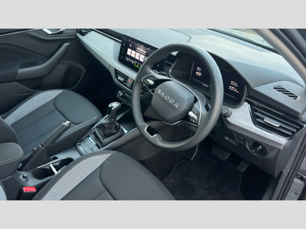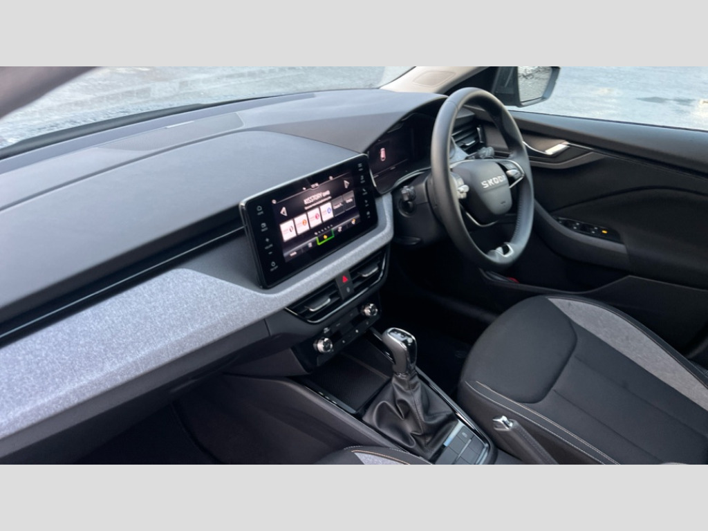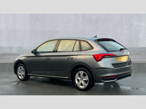 Skoda Scala 1.5 TSI SE Edition 5dr DSG Advanced driver attention and drowsiness monitor, Bluetooth, e-Call (emergency call), Front assist system, PAS, Rear parking sensors, Rear view camera, Speed limiter, Tailgate, Traffic sign recognition, Virtual Cockpit - 10.25" digital display, Voice control system, Wireless smartlink, 4 USB C ports, 8 Speakers, 9.2" Skoda navigation display, DAB radio, Auto dimming rear view mirror, Automatic headlamp activation with Coming home and Leaving home feature, Automatic high/low beam, Body colour bumpers, Body colour door mirrors and handles, Chrome moulding around grille, Front and rear electric windows, Full LED headlights, Heated rear window, LED 3rd brake light, LED brake lights, LED daytime running lights, LED front turning lights, LED high beam, LED low beam, LED taillights, Rear LED fog light, Rear side wing doors, Rear wiper, Tinted windows, Unique dark chrome design logo on alloy wheels, 12V socket in luggage compartment, 3 seat bench in 2nd row, Black / Grey armrest stitching, Black hotstamping, Cargo elements, Chrome inner door handles, Door inserts in satin black, Driver and passenger sun visors with vanity mirror, Dual zone climate control, Front and rear roof lights, Front centre armrest, Front head restraints, Glasses storage in roof liner, Height adjustable driver seat, Height adjustable passenger seat, Ice scraper, Illuminated glove compartment, Inner circulation control with pollen filter, ISOFIX for front passenger seat, Isofix preparation for back seats, Leather gearknob and handbrake lever, Loft cloth upholstery, Luggage net under rear parcel shelf, Manual lumbar support for front seats, Net package and top tether hooks in boot space, Pearl grey ceiling, Pocket on the back of both front seats, incl. mobile phone pockets, Single front passenger seat, Skoda lettering on steering wheel, Textile floor mats, Third rear headrest, Ticket holder, Top tether for front passenger seat, Umbrella in driver's door, 3x3 point rear seatbelts, ABS, Child locks, Curtain airbags and front side airbags, Disc brakes, Driver and front passenger airbags, ESP, Hill hold control, Manual leather parking brake, One tone horn, Passenger airbag switch off function, Seatbelt reminder for driver and front passenger, Tyre pressure monitoring system, Anti theft alarm system with interior monitoring, backup horn and towing protection, Anti-theft wheel bolts, Remote central locking with 2 remote folding keys, SAFE function for remote central locking, Decord pad, door inserts Kota uni