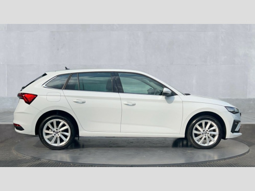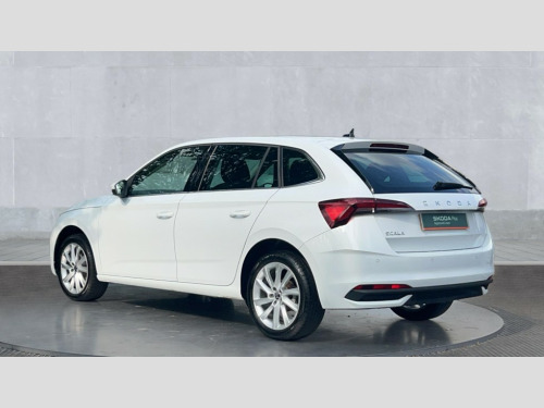 Skoda Scala 1.5 TSI SE L 5dr DSG Advanced driver attention and drowsiness monitor, Bluetooth, e-Call (emergency call), Front assist system, PAS, Rear parking sensors, Speed limiter, Tailgate, Traffic sign recognition, Virtual Cockpit - 10.25" digital display, Voice control system, Wireless smartlink, 4 USB C ports, 8 Speakers, 9.2" Skoda navigation display, DAB radio, Auto dimming rear view mirror, Automatic headlamp activation with Coming home and Leaving home feature, Automatic high/low beam, Automatic intermittent wipers, Body colour bumpers, Body colour door mirrors and handles, Chrome moulding around grille, Chrome window frames, Front and rear electric windows, Heated rear window, LED 3rd brake light, LED brake lights, LED daytime running lights, LED front turning lights, LED high beam, LED low beam, Light sensors, Privacy glass, Rear LED fog light, Rear side wing doors, Rear wiper, Tinted windows, 12V socket in luggage compartment, 3 seat bench in 2nd row, Ambient lighting in white/red, Black / Copper armrest stitching, Cargo elements, Chrome inner door handles, Copper hotstamping, Door inserts in accent black, Driver and passenger sun visors with vanity mirror, Dual zone climate control, Front and rear roof lights, Front centre armrest, Front head restraints, Glasses storage in roof liner, Height adjustable driver seat, Height adjustable passenger seat, Ice scraper, Illuminated glove compartment, Inner circulation control with pollen filter, ISOFIX for front passenger seat, Isofix preparation for back seats, Leather gearknob and handbrake lever, Lodge cloth upholstery, Luggage net under rear parcel shelf, Manual lumbar support for front seats, Net package and top tether hooks in boot space, Pearl grey ceiling, Pocket on the back of both front seats, incl. mobile phone pockets, Rear centre armrest, Single front passenger seat, Textile floor mats, Third rear headrest, Ticket holder, Top tether for front passenger seat, Umbrella in driver's door, 3x3 point rear seatbelts, ABS, Child locks, Curtain airbags and front side airbags, Disc brakes, Driver and front passenger airbags, ESP, Hill hold control, Manual leather parking brake, One tone horn, Passenger airbag switch off function, Seatbelt reminder for driver and front passenger, Tyre pressure monitoring system, Anti theft alarm system with interior monitoring, backup horn and towing protection, Anti-theft wheel bolts, Remote central locking with 2 remote folding keys, SAFE function for remote central locking, Decorative inserts