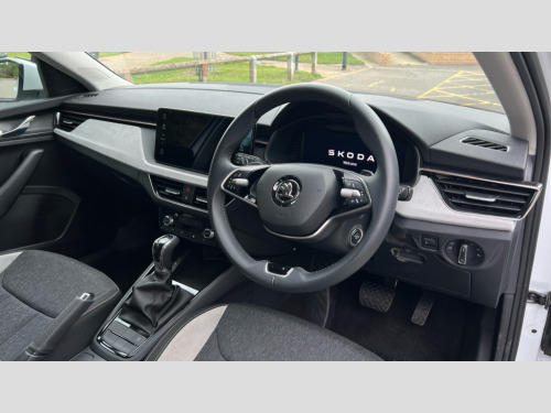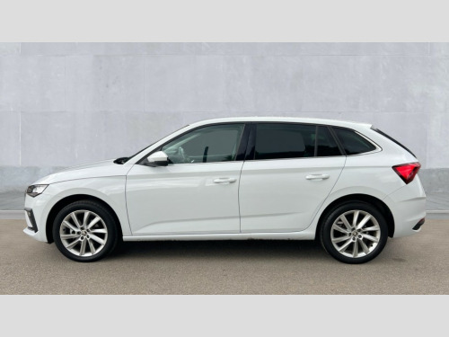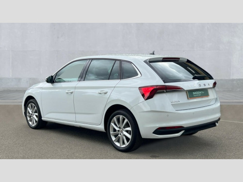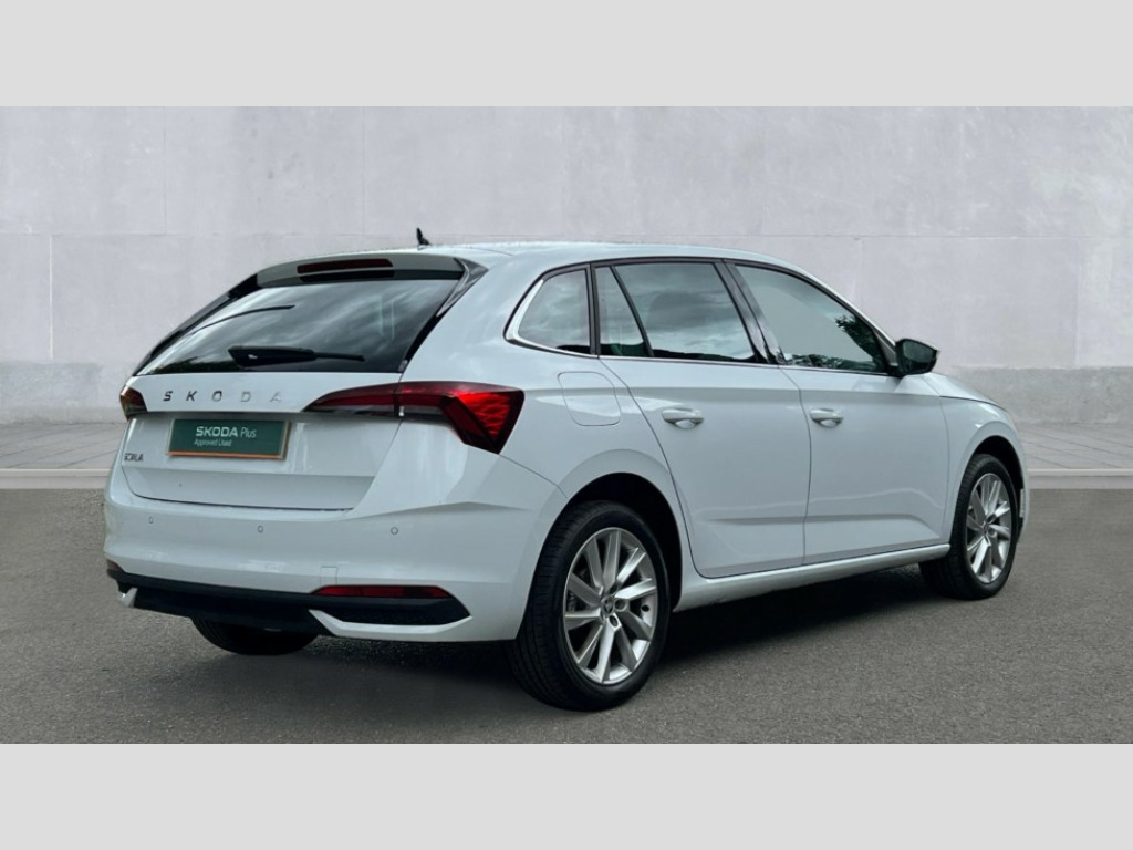 Skoda Scala 1.5 TSI SE L 5dr DSG Advanced driver attention and drowsiness monitor, Bluetooth, e-Call (emergency call), Front assist system, PAS, Rear parking sensors, Speed limiter, Tailgate, Traffic sign recognition, Virtual Cockpit - 10.25" digital display, Voice control system, Wireless smartlink, 4 USB C ports, 8 Speakers, 9.2" Skoda navigation display, DAB radio, Auto dimming rear view mirror, Automatic headlamp activation with Coming home and Leaving home feature, Automatic high/low beam, Automatic intermittent wipers, Body colour bumpers, Body colour door mirrors and handles, Chrome moulding around grille, Chrome window frames, Front and rear electric windows, Heated rear window, LED 3rd brake light, LED brake lights, LED daytime running lights, LED front turning lights, LED high beam, LED low beam, Light sensors, Privacy glass, Rear LED fog light, Rear side wing doors, Rear wiper, Tinted windows, 12V socket in luggage compartment, 3 seat bench in 2nd row, Ambient lighting in white/red, Black / Copper armrest stitching, Cargo elements, Chrome inner door handles, Copper hotstamping, Door inserts in accent black, Driver and passenger sun visors with vanity mirror, Dual zone climate control, Front and rear roof lights, Front centre armrest, Front head restraints, Glasses storage in roof liner, Height adjustable driver seat, Height adjustable passenger seat, Ice scraper, Illuminated glove compartment, Inner circulation control with pollen filter, ISOFIX for front passenger seat, Isofix preparation for back seats, Leather gearknob and handbrake lever, Lodge cloth upholstery, Luggage net under rear parcel shelf, Manual lumbar support for front seats, Net package and top tether hooks in boot space, Pearl grey ceiling, Pocket on the back of both front seats, incl. mobile phone pockets, Rear centre armrest, Single front passenger seat, Textile floor mats, Third rear headrest, Ticket holder, Top tether for front passenger seat, Umbrella in driver's door, 3x3 point rear seatbelts, ABS, Child locks, Curtain airbags and front side airbags, Disc brakes, Driver and front passenger airbags, ESP, Hill hold control, Manual leather parking brake, One tone horn, Passenger airbag switch off function, Seatbelt reminder for driver and front passenger, Tyre pressure monitoring system, Anti theft alarm system with interior monitoring, backup horn and towing protection, Anti-theft wheel bolts, Remote central locking with 2 remote folding keys, SAFE function for remote central locking, Decorative inserts