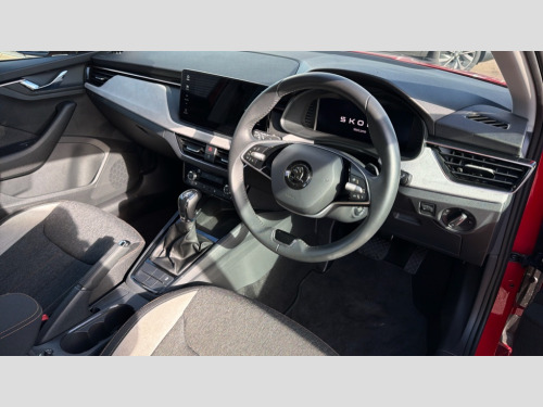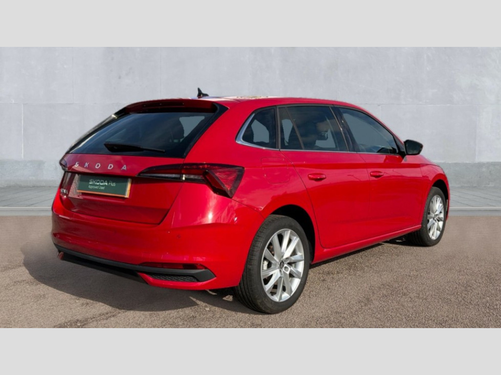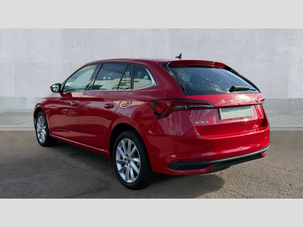 Skoda Scala 1.5 TSI SE L 5dr DSG Advanced driver attention and drowsiness monitor, Bluetooth, e-Call (emergency call), Front assist system, PAS, Rear parking sensors, Speed limiter, Tailgate, Traffic sign recognition, Virtual Cockpit - 10.25" digital display, Voice control system, Wireless smartlink, 4 USB C ports, 8 Speakers, 9.2" Skoda navigation display, DAB radio, Auto dimming rear view mirror, Automatic headlamp activation with Coming home and Leaving home feature, Automatic high/low beam, Automatic intermittent wipers, Body colour bumpers, Body colour door mirrors and handles, Chrome moulding around grille, Chrome window frames, Front and rear electric windows, Heated rear window, LED 3rd brake light, LED brake lights, LED daytime running lights, LED front turning lights, LED high beam, LED low beam, Light sensors, Privacy glass, Rear LED fog light, Rear side wing doors, Rear wiper, Tinted windows, 12V socket in luggage compartment, 3 seat bench in 2nd row, Ambient lighting in white/red, Black / Copper armrest stitching, Cargo elements, Chrome inner door handles, Copper hotstamping, Door inserts in accent black, Driver and passenger sun visors with vanity mirror, Dual zone climate control, Front and rear roof lights, Front centre armrest, Front head restraints, Glasses storage in roof liner, Height adjustable driver seat, Height adjustable passenger seat, Ice scraper, Illuminated glove compartment, Inner circulation control with pollen filter, ISOFIX for front passenger seat, Isofix preparation for back seats, Leather gearknob and handbrake lever, Lodge cloth upholstery, Luggage net under rear parcel shelf, Manual lumbar support for front seats, Net package and top tether hooks in boot space, Pearl grey ceiling, Pocket on the back of both front seats, incl. mobile phone pockets, Rear centre armrest, Single front passenger seat, Textile floor mats, Third rear headrest, Ticket holder, Top tether for front passenger seat, Umbrella in driver's door, 3x3 point rear seatbelts, ABS, Child locks, Curtain airbags and front side airbags, Disc brakes, Driver and front passenger airbags, ESP, Hill hold control, Manual leather parking brake, One tone horn, Passenger airbag switch off function, Seatbelt reminder for driver and front passenger, Tyre pressure monitoring system, Anti theft alarm system with interior monitoring, backup horn and towing protection, Anti-theft wheel bolts, Remote central locking with 2 remote folding keys, SAFE function for remote central locking, Decorative inserts