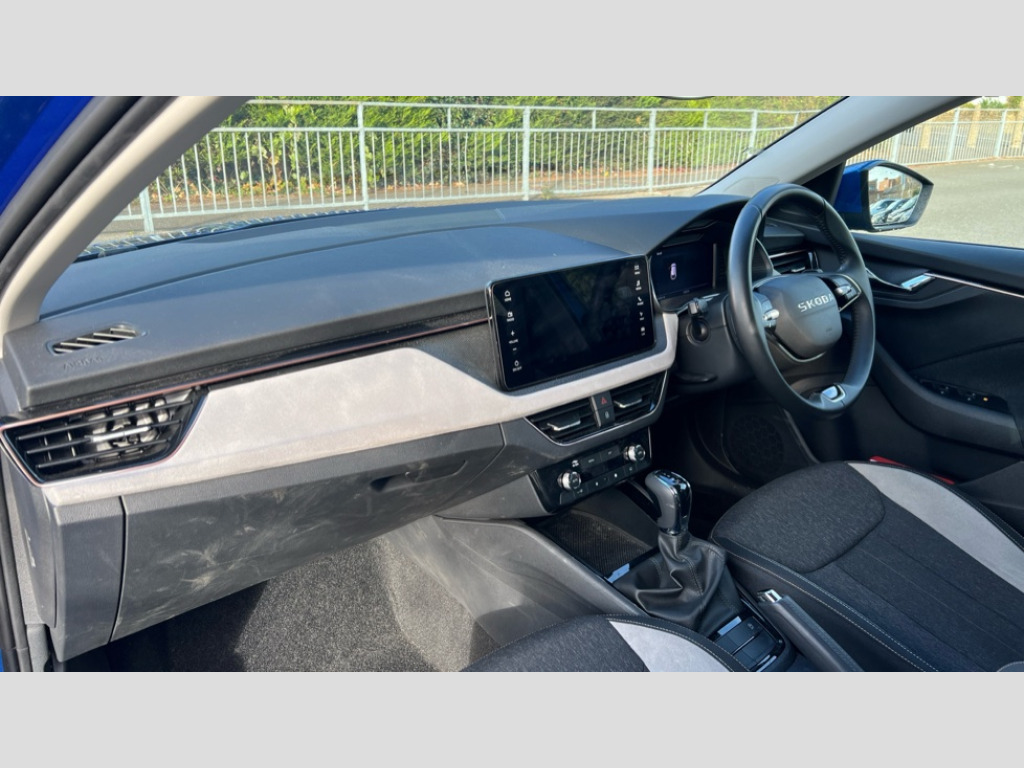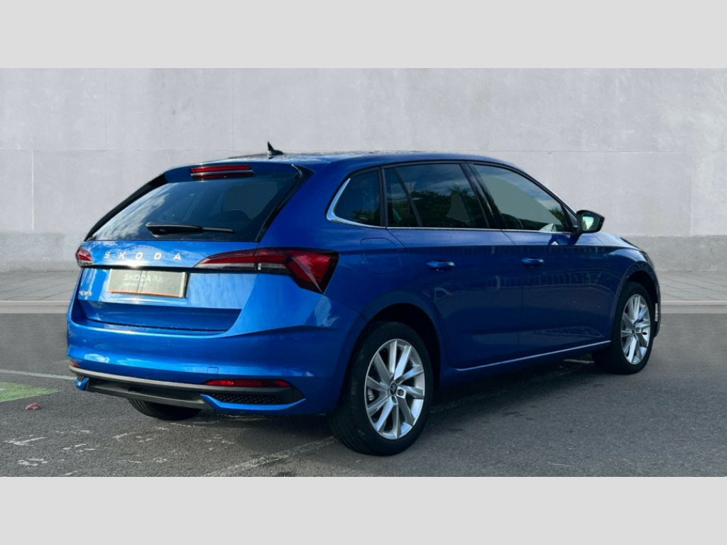 Skoda Scala 1.5 TSI SE L 5dr DSG Advanced driver attention and drowsiness monitor, Bluetooth, e-Call (emergency call), Front assist system, PAS, Rear parking sensors, Speed limiter, Tailgate, Traffic sign recognition, Virtual Cockpit - 10.25" digital display, Voice control system, Wireless smartlink, 4 USB C ports, 8 Speakers, 9.2" Skoda navigation display, DAB radio, Auto dimming rear view mirror, Automatic headlamp activation with Coming home and Leaving home feature, Automatic high/low beam, Automatic intermittent wipers, Body colour bumpers, Body colour door mirrors and handles, Chrome moulding around grille, Chrome window frames, Front and rear electric windows, Heated rear window, LED 3rd brake light, LED brake lights, LED daytime running lights, LED front turning lights, LED high beam, LED low beam, Light sensors, Privacy glass, Rear LED fog light, Rear side wing doors, Rear wiper, Tinted windows, 12V socket in luggage compartment, 3 seat bench in 2nd row, Ambient lighting in white/red, Black / Copper armrest stitching, Cargo elements, Chrome inner door handles, Copper hotstamping, Door inserts in accent black, Driver and passenger sun visors with vanity mirror, Dual zone climate control, Front and rear roof lights, Front centre armrest, Front head restraints, Glasses storage in roof liner, Height adjustable driver seat, Height adjustable passenger seat, Ice scraper, Illuminated glove compartment, Inner circulation control with pollen filter, ISOFIX for front passenger seat, Isofix preparation for back seats, Leather gearknob and handbrake lever, Lodge cloth upholstery, Luggage net under rear parcel shelf, Manual lumbar support for front seats, Net package and top tether hooks in boot space, Pearl grey ceiling, Pocket on the back of both front seats, incl. mobile phone pockets, Rear centre armrest, Single front passenger seat, Textile floor mats, Third rear headrest, Ticket holder, Top tether for front passenger seat, Umbrella in driver's door, 3x3 point rear seatbelts, ABS, Child locks, Curtain airbags and front side airbags, Disc brakes, Driver and front passenger airbags, ESP, Hill hold control, Manual leather parking brake, One tone horn, Passenger airbag switch off function, Seatbelt reminder for driver and front passenger, Tyre pressure monitoring system, Anti theft alarm system with interior monitoring, backup horn and towing protection, Anti-theft wheel bolts, Remote central locking with 2 remote folding keys, SAFE function for remote central locking, Decorative inserts