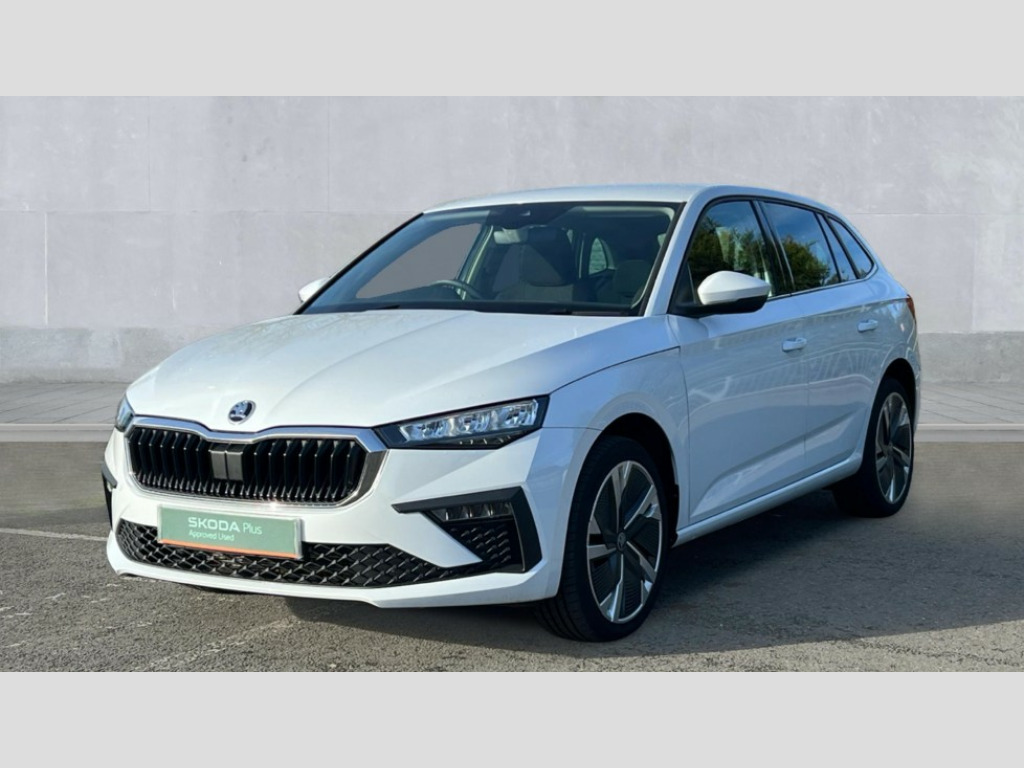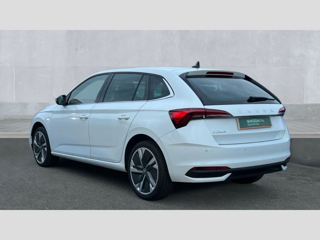 Skoda Scala 1.5 TSI SE L 5dr DSG Advanced driver attention and drowsiness monitor, Bluetooth, e-Call (emergency call), Front assist system, PAS, Rear parking sensors, Speed limiter, Tailgate, Traffic sign recognition, Virtual Cockpit - 10.25" digital display, Voice control system, Wireless smartlink, 4 USB C ports, 8 Speakers, 9.2" Skoda navigation display, DAB radio, Auto dimming rear view mirror, Automatic headlamp activation with Coming home and Leaving home feature, Automatic high/low beam, Automatic intermittent wipers, Body colour bumpers, Body colour door mirrors and handles, Chrome moulding around grille, Chrome window frames, Front and rear electric windows, Heated rear window, LED 3rd brake light, LED brake lights, LED daytime running lights, LED front turning lights, LED high beam, LED low beam, Light sensors, Privacy glass, Rear LED fog light, Rear side wing doors, Rear wiper, Tinted windows, 12V socket in luggage compartment, 3 seat bench in 2nd row, Ambient lighting in white/red, Black / Copper armrest stitching, Cargo elements, Chrome inner door handles, Copper hotstamping, Door inserts in accent black, Driver and passenger sun visors with vanity mirror, Dual zone climate control, Front and rear roof lights, Front centre armrest, Front head restraints, Glasses storage in roof liner, Height adjustable driver seat, Height adjustable passenger seat, Ice scraper, Illuminated glove compartment, Inner circulation control with pollen filter, ISOFIX for front passenger seat, Isofix preparation for back seats, Leather gearknob and handbrake lever, Lodge cloth upholstery, Luggage net under rear parcel shelf, Manual lumbar support for front seats, Net package and top tether hooks in boot space, Pearl grey ceiling, Pocket on the back of both front seats, incl. mobile phone pockets, Rear centre armrest, Single front passenger seat, Textile floor mats, Third rear headrest, Ticket holder, Top tether for front passenger seat, Umbrella in driver's door, 3x3 point rear seatbelts, ABS, Child locks, Curtain airbags and front side airbags, Disc brakes, Driver and front passenger airbags, ESP, Hill hold control, Manual leather parking brake, One tone horn, Passenger airbag switch off function, Seatbelt reminder for driver and front passenger, Tyre pressure monitoring system, Anti theft alarm system with interior monitoring, backup horn and towing protection, Anti-theft wheel bolts, Remote central locking with 2 remote folding keys, SAFE function for remote central locking, Decorative inserts