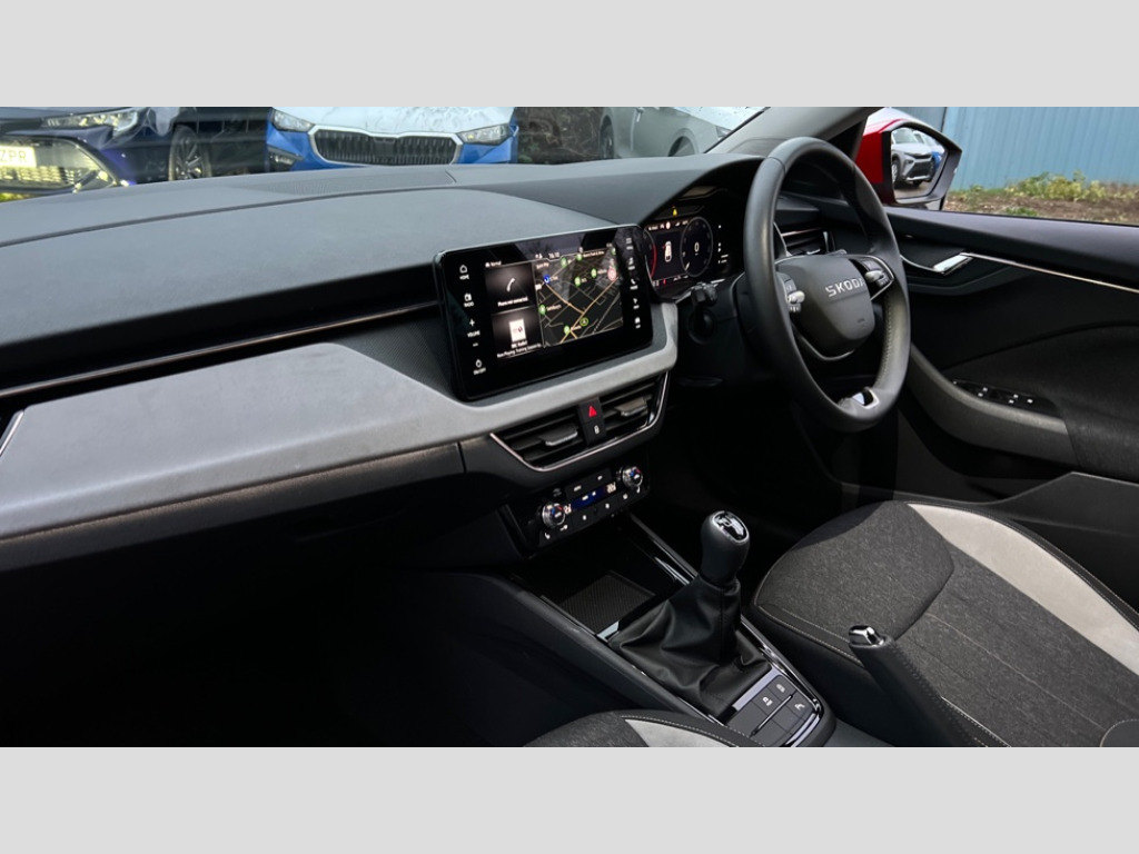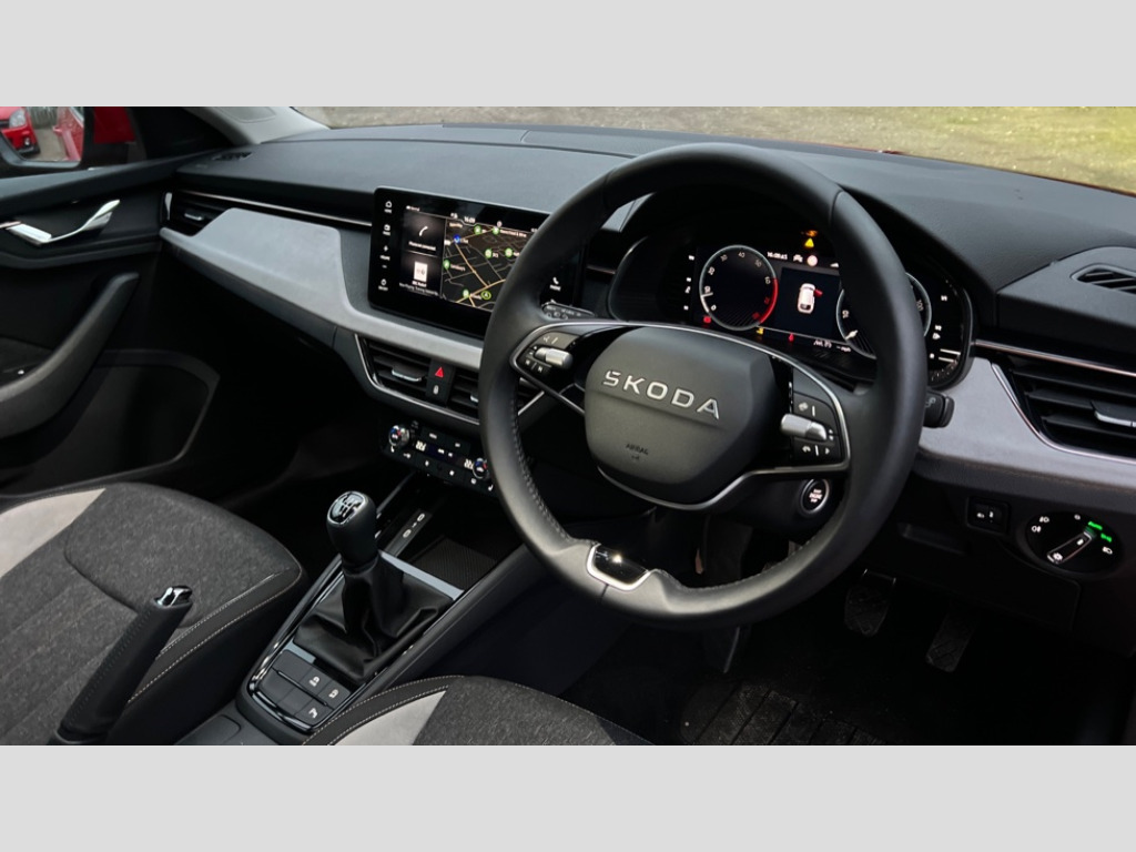 Skoda Scala 1.5 TSI SE L Edition 5dr Advanced driver attention and drowsiness monitor, Bluetooth, e-Call (emergency call), Front assist system, PAS, Rear parking sensors, Rear view camera, Speed limiter, Tailgate, Traffic sign recognition, Virtual Cockpit - 10.25" digital display, Voice control system, Wireless smartlink, 4 USB C ports, 8 Speakers, 9.2" Skoda navigation display, DAB radio, Auto dimming rear view mirror, Automatic headlamp activation with Coming home and Leaving home feature, Automatic high/low beam, Automatic intermittent wipers, Body colour bumpers, Body colour door mirrors and handles, Chrome moulding around grille, Chrome window frames, Front and rear electric windows, Heated rear window, LED 3rd brake light, LED brake lights, LED daytime running lights, LED front turning lights, LED high beam, LED low beam, Light sensors, Privacy glass, Rear LED fog light, Rear side wing doors, Rear wiper, Tinted windows, Unique dark chrome design logo on alloy wheels, 12V socket in luggage compartment, 3 seat bench in 2nd row, Ambient lighting in white/red, Black / Copper armrest stitching, Cargo elements, Chrome inner door handles, Copper hotstamping, Door inserts in accent black, Driver and passenger sun visors with vanity mirror, Dual zone climate control, Front and rear roof lights, Front centre armrest, Front head restraints, Glasses storage in roof liner, Height adjustable driver seat, Height adjustable passenger seat, Ice scraper, Illuminated glove compartment, Inner circulation control with pollen filter, ISOFIX for front passenger seat, Isofix preparation for back seats, Leather gearknob and handbrake lever, Lodge cloth upholstery, Luggage net under rear parcel shelf, Manual lumbar support for front seats, Net package and top tether hooks in boot space, Pearl grey ceiling, Pocket on the back of both front seats, incl. mobile phone pockets, Rear centre armrest, Single front passenger seat, Skoda lettering on steering wheel, Textile floor mats, Third rear headrest, Ticket holder, Top tether for front passenger seat, Umbrella in driver's door, Convenience pack without rear camera - Scala, 3x3 point rear seatbelts, ABS, Child locks, Curtain airbags and front side airbags, Disc brakes, Driver and front passenger airbags, ESP, Hill hold control, Manual leather parking brake, One tone horn, Passenger airbag switch off function, Seatbelt reminder for driver and front passenger, Tyre pressure monitoring system, Anti theft alarm system with interior monitoring, backup horn and towing protection, Anti-theft wheel bolts, Remote central locking with 2 remote folding keys, SAFE function for remote central locking, Decorative inserts