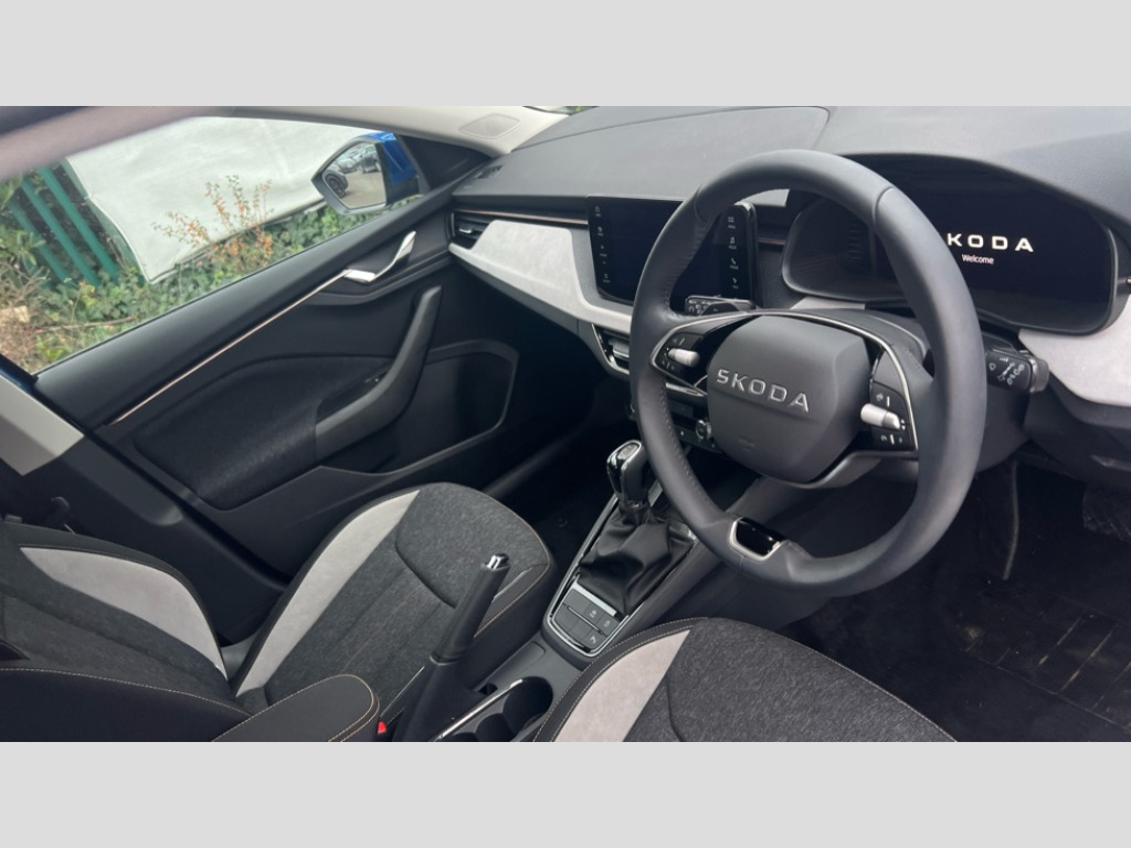 Skoda Scala 1.5 TSI SE L Edition 5dr DSG Advanced driver attention and drowsiness monitor, Bluetooth, e-Call (emergency call), Front assist system, PAS, Rear parking sensors, Rear view camera, Speed limiter, Tailgate, Traffic sign recognition, Virtual Cockpit - 10.25" digital display, Voice control system, Wireless smartlink, 4 USB C ports, 8 Speakers, 9.2" Skoda navigation display, DAB radio, Auto dimming rear view mirror, Automatic headlamp activation with Coming home and Leaving home feature, Automatic high/low beam, Automatic intermittent wipers, Body colour bumpers, Body colour door mirrors and handles, Chrome moulding around grille, Chrome window frames, Front and rear electric windows, Heated rear window, LED 3rd brake light, LED brake lights, LED daytime running lights, LED front turning lights, LED high beam, LED low beam, Light sensors, Privacy glass, Rear LED fog light, Rear side wing doors, Rear wiper, Tinted windows, Unique dark chrome design logo on alloy wheels, 12V socket in luggage compartment, 3 seat bench in 2nd row, Ambient lighting in white/red, Black / Copper armrest stitching, Cargo elements, Chrome inner door handles, Copper hotstamping, Door inserts in accent black, Driver and passenger sun visors with vanity mirror, Dual zone climate control, Front and rear roof lights, Front centre armrest, Front head restraints, Glasses storage in roof liner, Height adjustable driver seat, Height adjustable passenger seat, Ice scraper, Illuminated glove compartment, Inner circulation control with pollen filter, ISOFIX for front passenger seat, Isofix preparation for back seats, Leather gearknob and handbrake lever, Lodge cloth upholstery, Luggage net under rear parcel shelf, Manual lumbar support for front seats, Net package and top tether hooks in boot space, Pearl grey ceiling, Pocket on the back of both front seats, incl. mobile phone pockets, Rear centre armrest, Single front passenger seat, Skoda lettering on steering wheel, Textile floor mats, Third rear headrest, Ticket holder, Top tether for front passenger seat, Umbrella in driver's door, Convenience pack without rear camera - Scala, 3x3 point rear seatbelts, ABS, Child locks, Curtain airbags and front side airbags, Disc brakes, Driver and front passenger airbags, ESP, Hill hold control, Manual leather parking brake, One tone horn, Passenger airbag switch off function, Seatbelt reminder for driver and front passenger, Tyre pressure monitoring system, Anti theft alarm system with interior monitoring, backup horn and towing protection, Anti-theft wheel bolts, Remote central locking with 2 remote folding keys, SAFE function for remote central locking, Decorative inserts