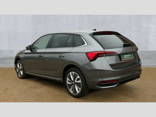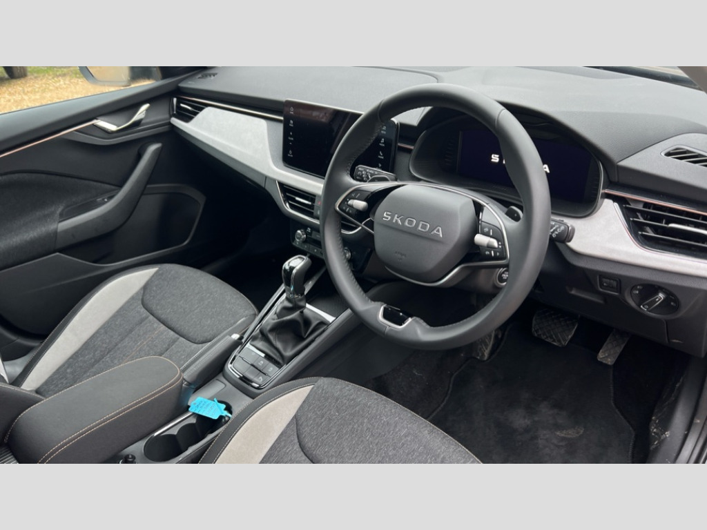 Skoda Scala 1.5 TSI SE L Edition 5dr DSG Advanced driver attention and drowsiness monitor, Bluetooth, e-Call (emergency call), Front assist system, PAS, Rear parking sensors, Rear view camera, Speed limiter, Tailgate, Traffic sign recognition, Virtual Cockpit - 10.25" digital display, Voice control system, Wireless smartlink, 4 USB C ports, 8 Speakers, 9.2" Skoda navigation display, DAB radio, Auto dimming rear view mirror, Automatic headlamp activation with Coming home and Leaving home feature, Automatic high/low beam, Automatic intermittent wipers, Body colour bumpers, Body colour door mirrors and handles, Chrome moulding around grille, Chrome window frames, Front and rear electric windows, Heated rear window, LED 3rd brake light, LED brake lights, LED daytime running lights, LED front turning lights, LED high beam, LED low beam, Light sensors, Privacy glass, Rear LED fog light, Rear side wing doors, Rear wiper, Tinted windows, Unique dark chrome design logo on alloy wheels, 12V socket in luggage compartment, 3 seat bench in 2nd row, Ambient lighting in white/red, Black / Copper armrest stitching, Cargo elements, Chrome inner door handles, Copper hotstamping, Door inserts in accent black, Driver and passenger sun visors with vanity mirror, Dual zone climate control, Front and rear roof lights, Front centre armrest, Front head restraints, Glasses storage in roof liner, Height adjustable driver seat, Height adjustable passenger seat, Ice scraper, Illuminated glove compartment, Inner circulation control with pollen filter, ISOFIX for front passenger seat, Isofix preparation for back seats, Leather gearknob and handbrake lever, Lodge cloth upholstery, Luggage net under rear parcel shelf, Manual lumbar support for front seats, Net package and top tether hooks in boot space, Pearl grey ceiling, Pocket on the back of both front seats, incl. mobile phone pockets, Rear centre armrest, Single front passenger seat, Skoda lettering on steering wheel, Textile floor mats, Third rear headrest, Ticket holder, Top tether for front passenger seat, Umbrella in driver's door, Convenience pack without rear camera - Scala, 3x3 point rear seatbelts, ABS, Child locks, Curtain airbags and front side airbags, Disc brakes, Driver and front passenger airbags, ESP, Hill hold control, Manual leather parking brake, One tone horn, Passenger airbag switch off function, Seatbelt reminder for driver and front passenger, Tyre pressure monitoring system, Anti theft alarm system with interior monitoring, backup horn and towing protection, Anti-theft wheel bolts, Remote central locking with 2 remote folding keys, SAFE function for remote central locking, Decorative inserts