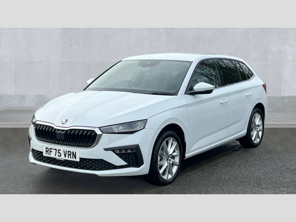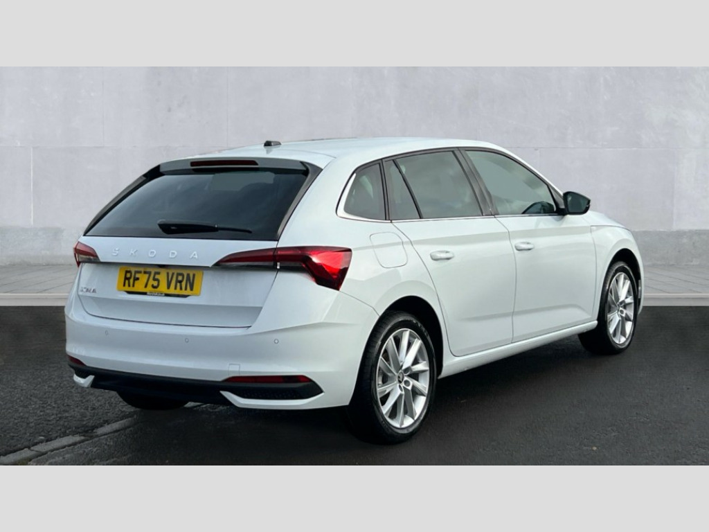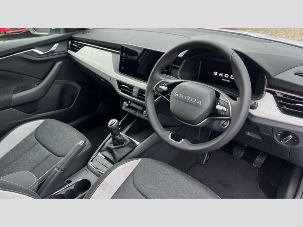 Skoda Scala 1.0 TSI 116 SE L Edition 5dr Advanced driver attention and drowsiness monitor, Bluetooth, e-Call (emergency call), Front assist system, PAS, Rear parking sensors, Rear view camera, Speed limiter, Tailgate, Traffic sign recognition, Virtual Cockpit - 10.25" digital display, Voice control system, Wireless smartlink, 4 USB C ports, 8 Speakers, 9.2" Skoda navigation display, DAB radio, Auto dimming rear view mirror, Automatic headlight control with manual coming and leaving home feature, Automatic intermittent wipers, Body colour bumpers, Body colour door mirrors and handles, Chrome moulding around grille, Chrome window frames, Front and rear electric windows, Heated rear window, LED 3rd brake light, LED daytime running lights, LED high beam, LED low beam, Light sensors, Privacy glass, Rear LED fog light, Rear side wing doors, Rear wiper, Tinted windows, Unique dark chrome design logo on alloy wheels, 12V socket in luggage compartment, 3 seat bench in 2nd row, Ambient lighting in white/red, Black / Copper armrest stitching, Cargo elements, Chrome inner door handles, Copper hotstamping, Door inserts in accent black, Driver and passenger sun visors with vanity mirror, Dual zone climate control, Front and rear roof lights, Front centre armrest, Front head restraints, Glasses storage in roof liner, Height adjustable driver seat, Height adjustable passenger seat, Ice scraper, Illuminated glove compartment, Inner circulation control with pollen filter, ISOFIX for front passenger seat, Isofix preparation for back seats, Leather gearknob and handbrake lever, Lodge cloth upholstery, Luggage net under rear parcel shelf, Manual lumbar support for front seats, Net package and top tether hooks in boot space, Pocket on the back of both front seats, incl. mobile phone pockets, Rear centre armrest, Single front passenger seat, Skoda lettering on steering wheel, Textile floor mats, Third rear headrest, Ticket holder, Top tether for front passenger seat, Umbrella in driver's door, Convenience pack without rear camera - Scala, 3x3 point rear seatbelts, ABS, Child locks, Curtain airbags and front side airbags, Disc brakes, Driver and front passenger airbags, ESP, Hill hold control, Manual leather parking brake, One tone horn, Passenger airbag switch off function, Seatbelt reminder for driver and front passenger, Tyre pressure monitoring system, Anti theft alarm system with interior monitoring, backup horn and towing protection, Anti-theft wheel bolts, Remote central locking with 2 remote folding keys, SAFE function for remote central locking, Decorative inserts