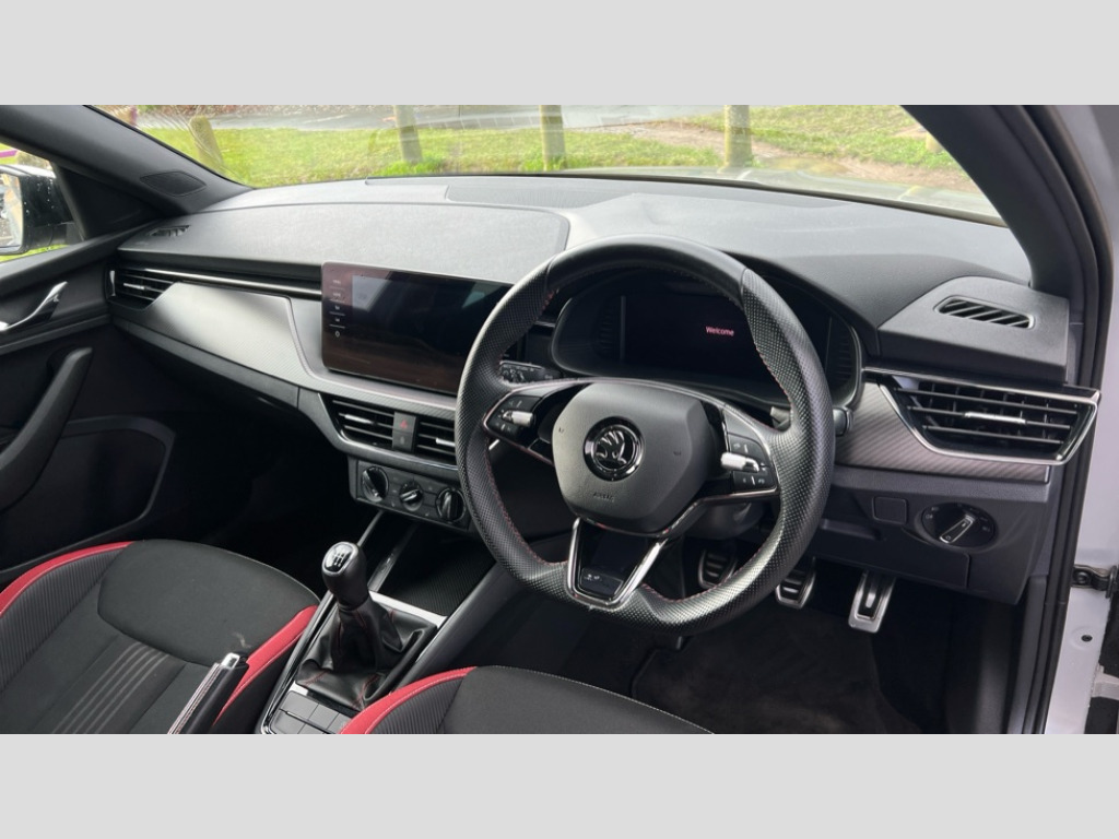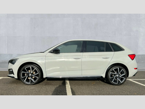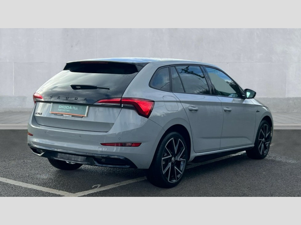 Skoda Scala 1.0 TSI 110 Monte Carlo 5dr Amundsen satellite navigation with 9.2" glass colour touchscreen with virtual cockpit, web radio, Bluetooth system, eCall emergency system, Front assist system, Monte carlo instrument cluster, PAS, Rain and light assist with auto dimming rear view mirror, Rear view camera, Speed limiter, 2 USB - C ports, 8 loudspeakers, DAB Digital radio, 3rd brake light, Automatic headlamp activation with Coming home and Leaving home feature, Black door mirrors, Black radiator grille, Black rear diffuser, Black roof spoiler, Body colour door handles, Electric folding door mirrors, Electrically adjustable and heated door mirrors, Front and rear electric windows, Front fog lights, LED daytime running lights, Privacy glass, Rear side wing doors, Rear wiper, Skoda across tailgate in black, Tinted windows, 12V Accessory socket in centre console, 3 seat bench in 2nd row, Aluminium pedals, Chrome inner door handles, Cloth upholstery, Front head restraints, Glasses storage in roof liner, Height adjustable passenger seat, ISOFIX for rear passenger seat, Leather gearknob and handbrake lever, Manual lumbar support for front seats, Reading lights for driver and front passenger, Single front passenger seat, Sun visor with make up mirror for front passenger, Textile floor mats, Third rear headrest, Umbrella, Exterior design pack - Scala, 3x3 point rear seatbelts, Curtain airbags, Emergency call and proactive services, Front head and side airbags, Hill hold control, Manual rear child locks, One tone horn, Passenger airbag switch off function, Seat belt reminder for all seats, Alarm, Anti-theft wheel bolts, Remote central locking with 2 remote folding keys, SAFE function for remote central locking, 18" Vega alloy wheels in black, Temporary space saver wheel