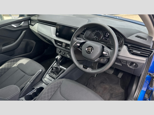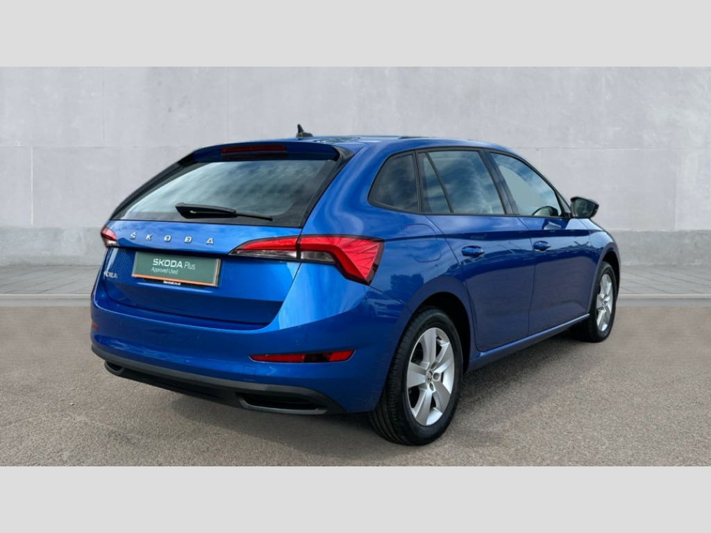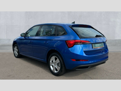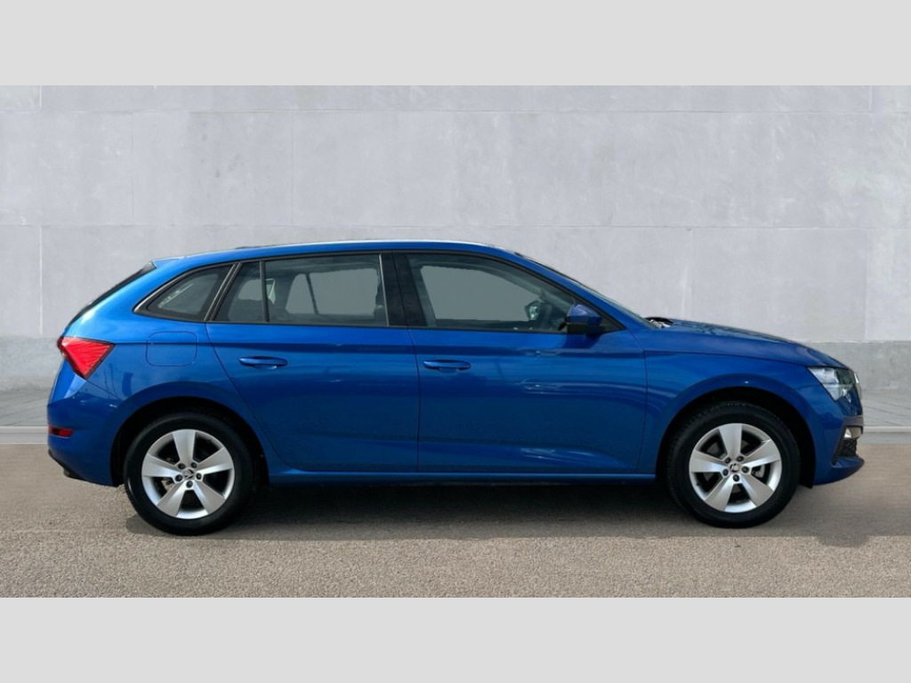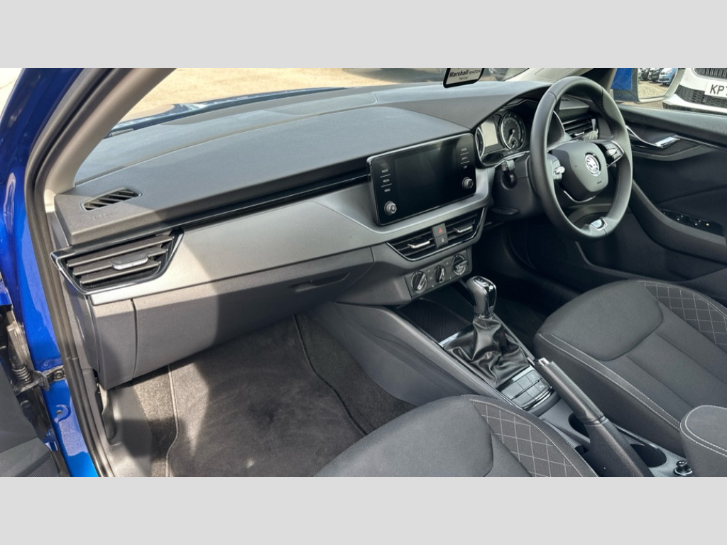 Skoda Scala 1.0 TSI 110 SE 5dr DSG Bluetooth system, eCall emergency system, PAS, Rain and light assist with auto dimming rear view mirror, Speed limiter, Tailgate, 2 USB - C ports, 8 loudspeakers, Bolero radio with 8" touchscreen display, DAB Digital radio, 3rd brake light, Automatic headlamp activation with Coming home and Leaving home feature, Body colour door mirrors and handles, Chrome grille surround, Dimming rear view mirror with black frame, Electrically adjustable and heated door mirrors, Front and rear electric windows, LED rear lights, Rear side wing doors, Rear wiper, Tinted windows, 12V Accessory socket in centre console, 3 seat bench in 2nd row, Chrome inner door handles, Cloth upholstery, Front head restraints, Glasses storage in roof liner, Height adjustable drivers seat, Height adjustable passenger seat, Instrument cluster with chrome painted decor ring, ISOFIX for rear passenger seat, Leather gearknob and handbrake lever, Manual lumbar support for front seats, Reading lights for driver and front passenger, Single front passenger seat, Sun visor with make up mirror for front passenger, Third rear headrest, Umbrella, 3x3 point rear seatbelts, Curtain airbags, Emergency call and proactive services, Front head and side airbags, Hill hold control, Manual rear child locks, One tone horn, Passenger airbag switch off function, Seat belt reminder for all seats, Alarm, Anti-theft wheel bolts, Remote central locking with 2 remote folding keys, SAFE function for remote central locking, Temporary space saver wheel