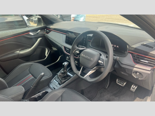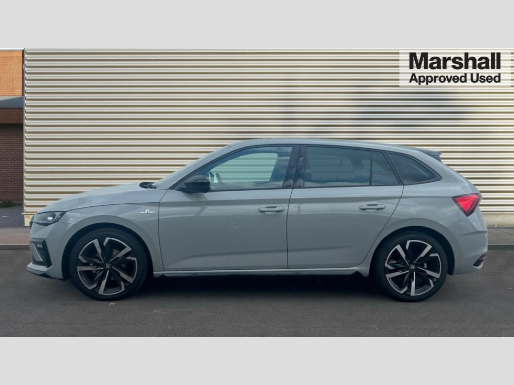 Skoda Scala 1.0 TSI 116 Monte Carlo Edition 5dr DSG Advanced driver attention and drowsiness monitor, Bluetooth, e-Call (emergency call), Front assist system, PAS, Rear parking sensors, Rear view camera, Speed limiter, Tailgate, Traffic sign recognition, Virtual Cockpit - 10.25" digital display, Voice control system, Wireless smartlink, 4 USB C ports, 8 Speakers, 9.2" Skoda navigation display, DAB radio, Auto dimming rear view mirror, Automatic headlamp activation with Coming home and Leaving home feature, Automatic high/low beam, Automatic intermittent wipers, Black door mirrors, Black lettering on boot lid, Black radiator grille, Black rear diffuser, Black roof spoiler, Body colour bumpers, Body colour door handles, Chrome moulding around grille, Extended tailgate glass, Front and rear electric windows, Heated rear window, LED 3rd brake light, LED brake lights, LED daytime running lights, LED high beam, LED low beam, Light sensors, Monte carlo plaque, Panoramic glass roof, Privacy glass, Rear LED fog light, Rear side wing doors, Rear wiper, Tinted windows, Unique dark chrome design logo on alloy wheels, 12V socket in luggage compartment, 3 seat bench in 2nd row, Aluminium pedals, Ambient lighting in white/red, Black / White armrest stitching, Black ceiling, Black roof headlining, Cargo elements, Chrome inner door handles, Door inserts in art.leather carbon, Driver and passenger sun visors with vanity mirror, Dual zone climate control, Front and rear roof lights, Front centre armrest, Front head restraints, Height adjustable driver seat, Height adjustable passenger seat, Ice scraper, Illuminated glove compartment, Inner circulation control with pollen filter, ISOFIX for front passenger seat, Isofix preparation for back seats, Leather gearknob and handbrake lever, Luggage net under rear parcel shelf, Manual lumbar support for front seats, Monte Carlo cloth upholstery, Net package and top tether hooks in boot space, Pocket on the back of both front seats, incl. mobile phone pockets, Rear centre armrest, Red hotstamping, Single front passenger seat, Skoda lettering on steering wheel, Sport seats, Textile floor mats, Third rear headrest, Ticket holder, Top tether for front passenger seat, Umbrella in driver's door, Light and view plus pack - Scala, 3x3 point rear seatbelts, ABS, Child locks, Curtain airbags and front side airbags, Disc brakes, Driver and front passenger airbags, ESP, Hill hold control, Manual leather parking brake, One tone horn, Passenger airbag switch off function, Seatbelt reminder for driver and front passenger, Tyre pressure monitoring system, Anti theft alarm system with interior monitoring, backup horn and towing protection, Anti-theft wheel bolts, Remote central locking with 2 remote folding keys, SAFE function for remote central locking, Carbon effect decorative inserts, 18" Ursa black diamond cut alloy wheels