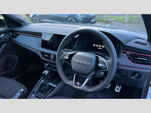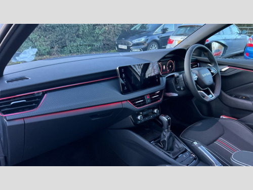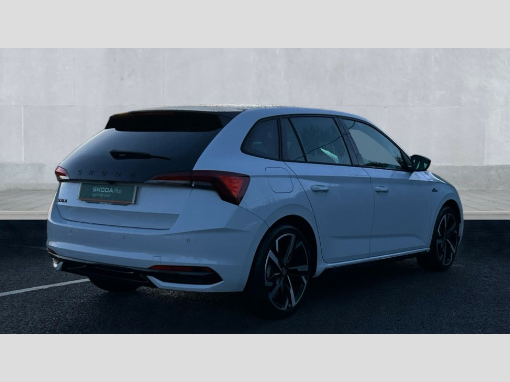 Skoda Scala 1.0 TSI 116 Monte Carlo Edition 5dr DSG Advanced driver attention and drowsiness monitor, Bluetooth, e-Call (emergency call), Front assist system, PAS, Rear parking sensors, Rear view camera, Speed limiter, Tailgate, Traffic sign recognition, Virtual Cockpit - 10.25" digital display, Voice control system, Wireless smartlink, Drive mode select with Sport Chassis Control and ECO mode, 4 USB C ports, 8 Speakers, 9.2" Skoda navigation display, DAB radio, Auto dimming rear view mirror, Automatic headlight control with manual coming and leaving home feature, Automatic intermittent wipers, Black door mirrors, Black lettering on boot lid, Black radiator grille, Black rear diffuser, Black roof spoiler, Black window frames, Body colour bumpers, Body colour door handles, Extended tailgate glass, Front and rear electric windows, Heated rear window, LED 3rd brake light, LED daytime running lights, LED high beam, LED low beam, Light sensors, Monte carlo plaque, Panoramic glass roof, Privacy glass, Rear LED fog light, Rear side wing doors, Rear wiper, Tinted windows, Unique dark chrome design logo on alloy wheels, 12V socket in luggage compartment, 3 seat bench in 2nd row, Aluminium pedals, Ambient lighting in white/red, Black / White armrest stitching, Black roof headlining, Cargo elements, Chrome inner door handles, Door inserts in art.leather carbon, Driver and passenger sun visors with vanity mirror, Dual zone climate control, Front and rear roof lights, Front centre armrest, Front head restraints, Height adjustable driver seat, Height adjustable passenger seat, Ice scraper, Illuminated glove compartment, Inner circulation control with pollen filter, ISOFIX for front passenger seat, Isofix preparation for back seats, Leather gearknob and handbrake lever, Luggage net under rear parcel shelf, Manual lumbar support for front seats, Monte Carlo cloth upholstery, Net package and top tether hooks in boot space, Pocket on the back of both front seats, incl. mobile phone pockets, Rear centre armrest, Red hotstamping, Single front passenger seat, Skoda lettering on steering wheel, Sport seats, Textile floor mats, Third rear headrest, Ticket holder, Top tether for front passenger seat, Umbrella in driver's door, Light and view plus pack - Scala, 3x3 point rear seatbelts, ABS, Child locks, Curtain airbags and front side airbags, Disc brakes, Driver and front passenger airbags, ESP, Hill hold control, Manual leather parking brake, One tone horn, Passenger airbag switch off function, Seatbelt reminder for driver and front passenger, Tyre pressure monitoring system, Anti theft alarm system with interior monitoring, backup horn and towing protection, Anti-theft wheel bolts, Remote central locking with 2 remote folding keys, SAFE function for remote central locking, Carbon effect decorative inserts, 18" Ursa black diamond cut alloy wheels