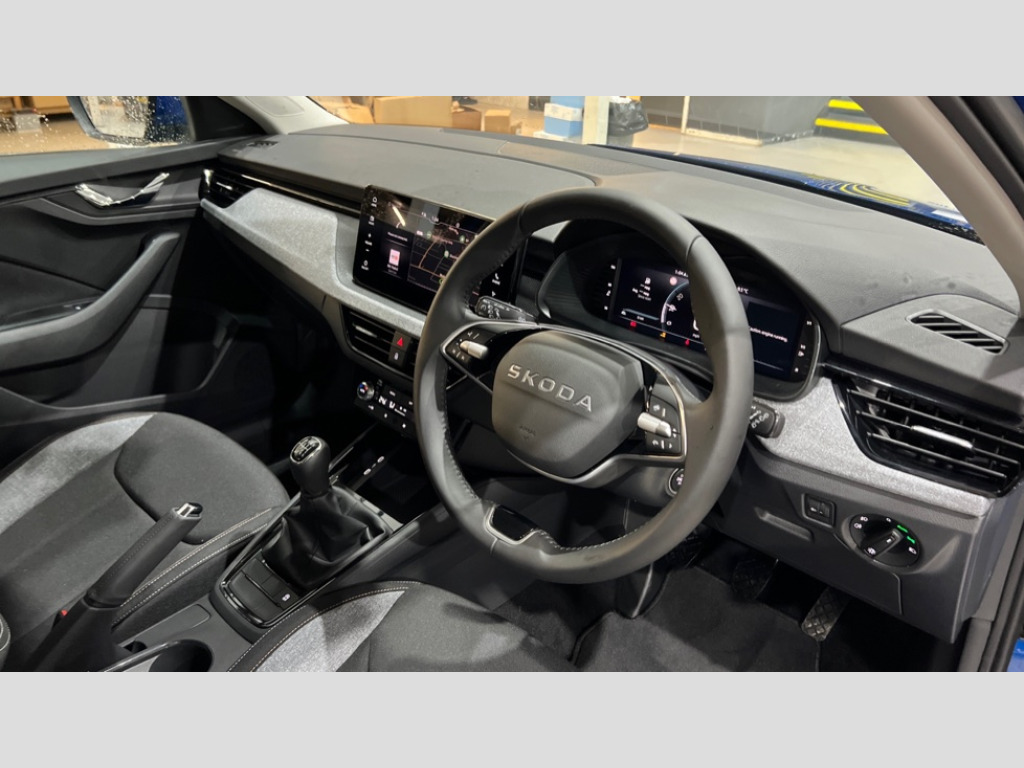 Skoda Scala 1.0 TSI 116 SE Edition 5dr Advanced driver attention and drowsiness monitor, Bluetooth, e-Call (emergency call), Front assist system, PAS, Rear parking sensors, Rear view camera, Speed limiter, Tailgate, Traffic sign recognition, Virtual Cockpit - 10.25" digital display, Wireless smartlink, 4 USB C ports, 8 Speakers, 9.2" Skoda navigation display, DAB radio, Auto dimming rear view mirror, Automatic headlight control with manual coming and leaving home feature, Automatic intermittent wipers, Black window frames, Body colour bumpers, Body colour door mirrors and handles, Chrome moulding around grille, Front and rear electric windows, Full LED headlights, Heated rear window, LED 3rd brake light, LED daytime running lights, LED front turning lights, LED high beam, LED low beam, Rear LED fog light, Rear side wing doors, Rear wiper, Tinted windows, Unique dark chrome design logo on alloy wheels, 12V socket in luggage compartment, 3 seat bench in 2nd row, Black / Grey armrest stitching, Black hotstamping, Cargo elements, Chrome inner door handles, Door inserts in satin black, Driver and passenger sun visors with vanity mirror, Dual zone climate control, Front and rear roof lights, Front centre armrest, Front head restraints, Glasses storage in roof liner, Height adjustable driver seat, Height adjustable passenger seat, Ice scraper, Illuminated glove compartment, Inner circulation control with pollen filter, ISOFIX for front passenger seat, Isofix preparation for back seats, Leather gearknob and handbrake lever, Loft cloth upholstery, Luggage net under rear parcel shelf, Manual lumbar support for front seats, Net package and top tether hooks in boot space, Pocket on the back of both front seats, incl. mobile phone pockets, Single front passenger seat, Skoda lettering on steering wheel, Textile floor mats, Third rear headrest, Ticket holder, Top tether for front passenger seat, Umbrella in driver's door, 3x3 point rear seatbelts, ABS, Child locks, Curtain airbags and front side airbags, Disc brakes, Driver and front passenger airbags, ESP, Hill hold control, Manual leather parking brake, One tone horn, Passenger airbag switch off function, Seatbelt reminder for driver and front passenger, Tyre pressure monitoring system, Anti theft alarm system with interior monitoring, backup horn and towing protection, Anti-theft wheel bolts, Remote central locking with 2 remote folding keys, SAFE function for remote central locking, Decord pad, door inserts Kota uni