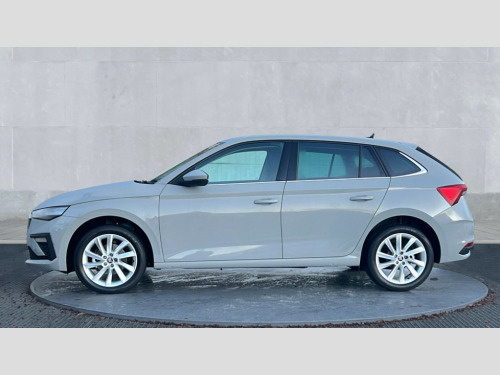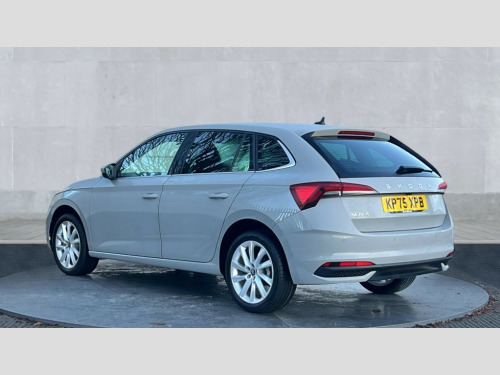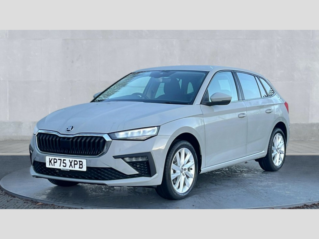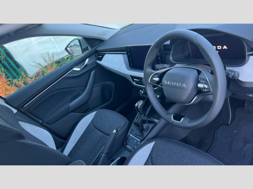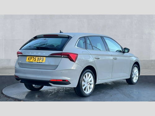Skoda Scala 1.0 TSI 116 SE L Edition 5dr DSG Advanced driver attention and drowsiness monitor, Bluetooth, e-Call (emergency call), Front assist system, PAS, Rear parking sensors, Rear view camera, Speed limiter, Tailgate, Traffic sign recognition, Virtual Cockpit - 10.25" digital display, Voice control system, Wireless smartlink, 4 USB C ports, 8 Speakers, 9.2" Skoda navigation display, DAB radio, Auto dimming rear view mirror, Automatic headlight control with manual coming and leaving home feature, Automatic intermittent wipers, Body colour bumpers, Body colour door mirrors and handles, Chrome moulding around grille, Chrome window frames, Front and rear electric windows, Heated rear window, LED 3rd brake light, LED daytime running lights, LED high beam, LED low beam, Light sensors, Privacy glass, Rear LED fog light, Rear side wing doors, Rear wiper, Tinted windows, Unique dark chrome design logo on alloy wheels, 12V socket in luggage compartment, 3 seat bench in 2nd row, Ambient lighting in white/red, Black / Copper armrest stitching, Cargo elements, Chrome inner door handles, Copper hotstamping, Door inserts in accent black, Driver and passenger sun visors with vanity mirror, Dual zone climate control, Front and rear roof lights, Front centre armrest, Front head restraints, Glasses storage in roof liner, Height adjustable driver seat, Height adjustable passenger seat, Ice scraper, Illuminated glove compartment, Inner circulation control with pollen filter, ISOFIX for front passenger seat, Isofix preparation for back seats, Leather gearknob and handbrake lever, Lodge cloth upholstery, Luggage net under rear parcel shelf, Manual lumbar support for front seats, Net package and top tether hooks in boot space, Pocket on the back of both front seats, incl. mobile phone pockets, Rear centre armrest, Single front passenger seat, Skoda lettering on steering wheel, Textile floor mats, Third rear headrest, Ticket holder, Top tether for front passenger seat, Umbrella in driver's door, Convenience pack without rear camera - Scala, 3x3 point rear seatbelts, ABS, Child locks, Curtain airbags and front side airbags, Disc brakes, Driver and front passenger airbags, ESP, Hill hold control, Manual leather parking brake, One tone horn, Passenger airbag switch off function, Seatbelt reminder for driver and front passenger, Tyre pressure monitoring system, Anti theft alarm system with interior monitoring, backup horn and towing protection, Anti-theft wheel bolts, Remote central locking with 2 remote folding keys, SAFE function for remote central locking, Decorative inserts