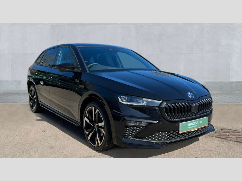 Skoda Scala 1.5 TSI Monte Carlo Edition 5dr DSG Advanced driver attention and drowsiness monitor, Bluetooth, e-Call (emergency call), Front assist system, PAS, Rear parking sensors, Rear view camera, Speed limiter, Tailgate, Traffic sign recognition, Virtual Cockpit - 10.25" digital display, Voice control system, Wireless smartlink, 4 USB C ports, 8 Speakers, 9.2" Skoda navigation display, DAB radio, Auto dimming rear view mirror, Automatic headlamp activation with Coming home and Leaving home feature, Automatic high/low beam, Automatic intermittent wipers, Black door mirrors, Black lettering on boot lid, Black radiator grille, Black rear diffuser, Black roof spoiler, Body colour bumpers, Body colour door handles, Chrome moulding around grille, Extended tailgate glass, Front and rear electric windows, Heated rear window, LED 3rd brake light, LED brake lights, LED daytime running lights, LED high beam, LED low beam, Light sensors, Monte carlo plaque, Panoramic glass roof, Privacy glass, Rear LED fog light, Rear side wing doors, Rear wiper, Tinted windows, Unique dark chrome design logo on alloy wheels, 12V socket in luggage compartment, 3 seat bench in 2nd row, Aluminium pedals, Ambient lighting in white/red, Black / White armrest stitching, Black ceiling, Black roof headlining, Cargo elements, Chrome inner door handles, Door inserts in art.leather carbon, Driver and passenger sun visors with vanity mirror, Dual zone climate control, Front and rear roof lights, Front centre armrest, Front head restraints, Height adjustable driver seat, Height adjustable passenger seat, Ice scraper, Illuminated glove compartment, Inner circulation control with pollen filter, ISOFIX for front passenger seat, Isofix preparation for back seats, Leather gearknob and handbrake lever, Luggage net under rear parcel shelf, Manual lumbar support for front seats, Monte Carlo cloth upholstery, Net package and top tether hooks in boot space, Pocket on the back of both front seats, incl. mobile phone pockets, Rear centre armrest, Red hotstamping, Single front passenger seat, Skoda lettering on steering wheel, Sport seats, Textile floor mats, Third rear headrest, Ticket holder, Top tether for front passenger seat, Umbrella in driver's door, Light and view plus pack - Scala, 3x3 point rear seatbelts, ABS, Child locks, Curtain airbags and front side airbags, Disc brakes, Driver and front passenger airbags, ESP, Hill hold control, Manual leather parking brake, One tone horn, Passenger airbag switch off function, Seatbelt reminder for driver and front passenger, Tyre pressure monitoring system, Anti theft alarm system with interior monitoring, backup horn and towing protection, Anti-theft wheel bolts, Remote central locking with 2 remote folding keys, SAFE function for remote central locking, Carbon effect decorative inserts, 18" Ursa black diamond cut alloy wheels