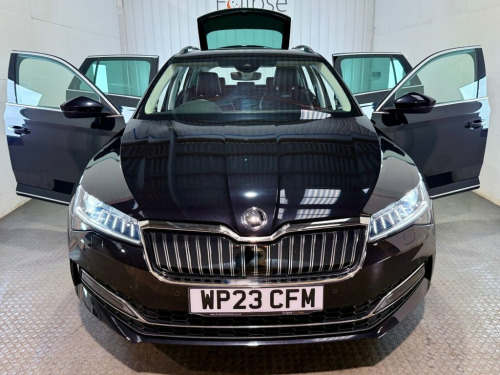 **THIS VEHICLE MAY BE AT OUR 150-CAR STORAGE FACILITY. PLEASE CALL AHEAD TO ARRANGE VIEWING AT OUR WINCHESTER SALES SITE** MOT May 2026. Serviced at 9k, 19k and 37k miles by Skoda. This well looked after Skoda Superb petrol plug-in hybrid is the ideal option for those looking for a more comfortable driving experience. Finished in a stunning Black Magic with a matching black leather interior along with 18 inch antares alloy wheels, this Superb is filled to the brim with features to further add to the experience such as adaptive cruise control, lane assist, front and rear parking sensors, rear view parking camera, tri-zone climate control and more. Powered by a 1.4 litre petrol engine complimented by a 13kWh battery and an automatic gearbox making this a smooth, reliable car to drive. 10amp Mains UK 3-pin Charge Cable - Mode, 12V Socket on Central Console - Front an, 16amp AC Charge Cable for Wallbox or Cha, 18in Alloy Wheels - Antares, 18in Alloy Wheels - Propus Aero Anthraci, 2-Spoke Leather Multifunction Steering W, 3D Map Navigation, 7 Airbags - Front - Front Side - Curtain, ACC - Adaptive Cruise Control, Aero Front Windscreen Wipers with Interm, Alarm with Interior Monitoring - Tilt Se, Auto Dimming Rear View Mirror, Black Magic, Bluetooth, Body Coloured Door Mirrors and Door Hand, Canton Sound System, CareConnect Including Emergency Call, Child Lock in Rear Doors - Power-Operate, Chrome in Rear Diffuser, Chrome Strip Between Rear Lights and Low, Chrome Window Surrou