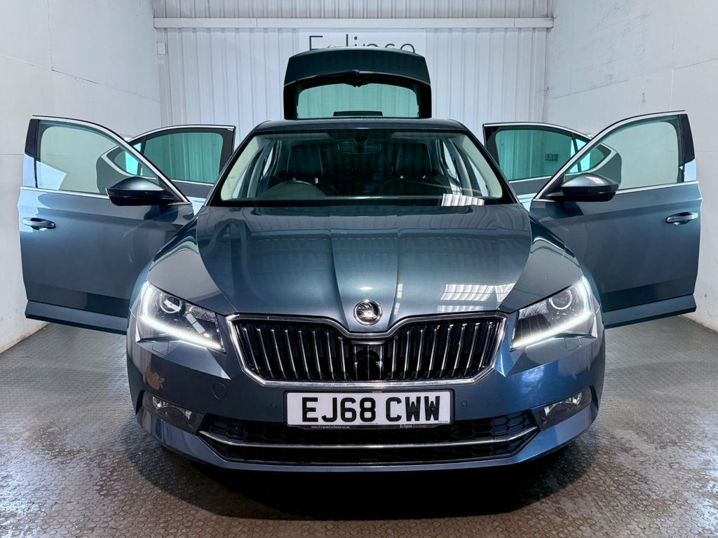 **THIS VEHICLE MAY BE AT OUR 150-CAR STORAGE FACILITY. PLEASE CALL AHEAD TO ARRANGE VIEWING AT OUR WINCHESTER SALES SITE** Skoda Superb 1.5 TSI ACT SE L Executive Hatchback. First registered in December 2018 (18 Reg). Finished in Business Grey with a Black Leather Interior and 18 inch alloy wheels. Spec includes Heated Electric Front Seats with Memory Function | Heated Rear Seats | Front and Rear Park Assist | Satellite Navigation | Apple Car Play | Android Auto | DAB Radio | Adaptive Cruise Control with Speed Limiter | Three Zone Climate Control | Powered Tailgate. Serviced at 5040 Miles | 9688 Miles | 16809 Miles | 36690 Miles | 52518 Miles. 12V Socket on Central Console - Front an, 18in Alloy Wheels - Pegasus, 18in Alloy Wheels - Zenith, 3 Spoke Leather Sports Multi-Function St, 7 Airbags - Front - Front Side - Curtain, Aero Windscreen Wipers with Intermittent, Alarm with Interior Monitoring - Tilt Se, Auto Dimming Rear View Mirror, Bi-Xenon Headlights - AFS and LED Daytim, Blind Spot Detection, Bluetooth, Body Coloured Door Mirrors and Door Hand, Bolero Radio with 8in Touchscreen Displa, Boot Net Programme, Business Grey, CareConnect Including Emergency Call, Colour Multifunction Trip Computer, Columbus Touchscreen Satellite Navigatio, DAB Radio, Drive Mode Selection, Driver and Front Passenger Seatbelt Warn, Driver Fatigue Se
