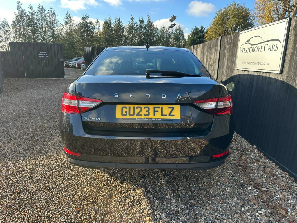 Westgrove Cars are delighted to be able to offer for sale this Skoda Superb 1.5 TSI ACT SE Technology Euro 6 (s/s) 5dr. This car comes with a Full Service History and two keys are supplied. Skoda Dealer Warranty until April 2026. Longer Term Warranty can be purchased if required. Highly competitive finance options are available. We are easy to locate and only 7 minutes from the M25 Junction 11. At Westgrove Cars we operate on an appointment only basis, however we will always do our upmost to accommodate all appointments. If traveling by public transport, then just give us a call and we can arrange a collection service for you to make your journey as easy as possible. If you have any questions just give us a call as we're always happy to help anyway we can. ather - black, 12v socket on central console - front and rear, 17in alloy wheels - stratos, 2-spoke leather multifunction steering wheel, 7 airbags - front - front side - curtain - drivers knee with front passenger deactivation switch, acc - adaptive cruise control, aero front windscreen wipers with intermitted function, alarm with interior monitoring - tilt sensor and back up horn, amundsen touchscreen navigation system, auto dimming rear view mirror, bluetooth, body coloured door mirrors and door handles, careconnect including emergency call, child lock in rear doors, chrome grille surround with chrome rib elements, chrome window surrounds, dab radio, drive mode selection, driver fatigue sensor, driver and front passenger seatbelt warning light, dual-zone air conditioning with humidity sensor and control, esc - electronic stability control, electric auxiliary air heater, electrically adjustable drivers seat with memory function and lumbar support, electrically adjustable heated and folding door mirrors with memory function, electrically folding door mirrors with illuminated boarding spots, electro-mechanical power steering, electronic engine immobiliser, electronic parking brake, front armrest with storage box, front assist with predictive pedestrian protection, front fog lights, front and rear electric windows, glovebox - illuminated and cooled, head restraints - height adjustable front and rear, heated front seats, height adjustable driver and front passenger seat, isofix child seat fittings on outer rear seats, ice scraper in fuel filler cap, infotainment online - 1 year, interior lights with control switches, keyless start-stop, led headlights with daytime running lights, light assist with high beam control, luggage compartment - removable parcel shelf, one umbrella compartments in driver door - including one umbrella in driver door, overhead glasses storage compartment, parking sensors - front and rear, privacy glass, rain sensor, rear centre armrest with cup holders, rear led lights - low functionality, remote central locking with 2 keys and safe - preventing unlocking from inside, smartlink, split and folding rear seats, sun visor with illuminated vanity mirror, tpms - tyre pressure monitoring system, ticket holder on a pillar, two usb ports - 1 usb-c in front centre console - 1 usb-a in the front centre armrest., tyre repair kit, virtual cockpit, voice control, wireless smartlink plus for apple carplay, xds+ advance stability control