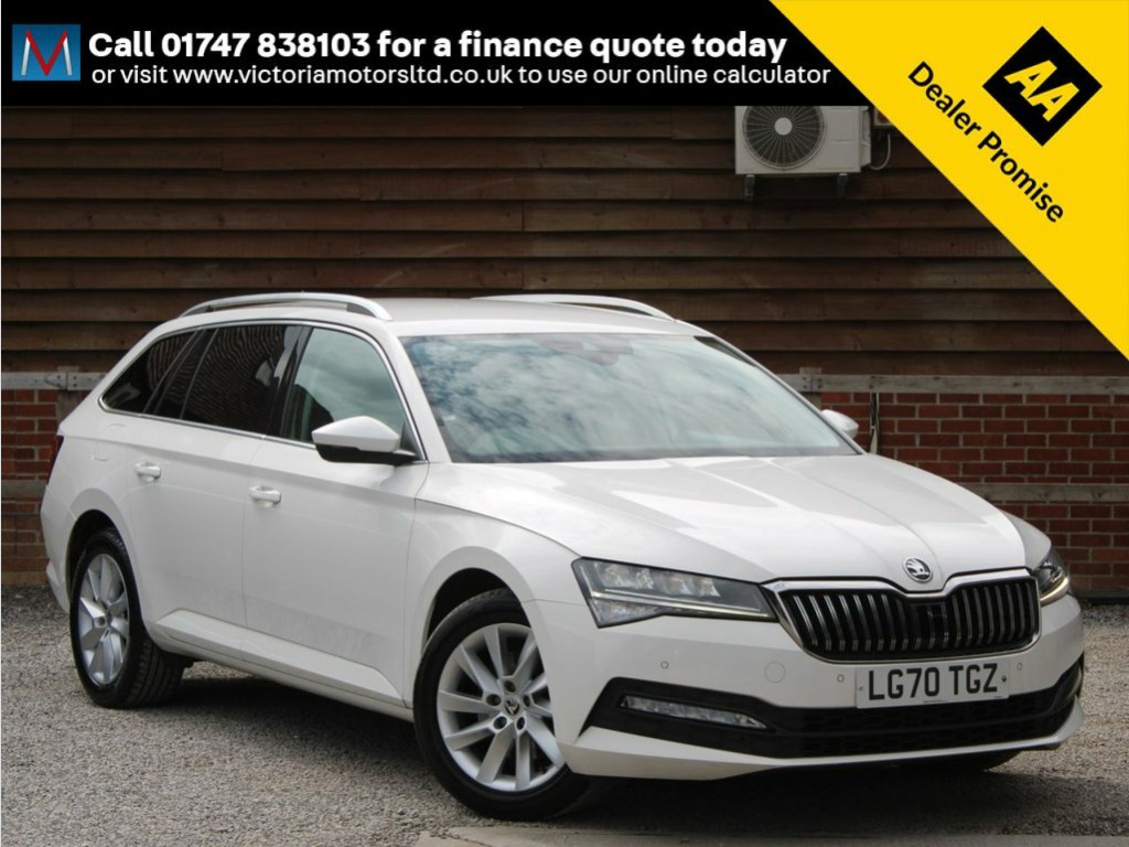 ***FOR VIEWINGS AND TEST DRIVES CALL US ON 01747 838103 TO BOOK AN APPOINTMENT***Superb low mileage high spec Superb estate automatic fitted with Skoda's 1.5 litre turbo petrol ULEZ compliant engine producing impressive power and great fuel economy of over 50 mpg combined finished in white with equipment including full leather interior with heated seats, the newer wide touch screen media unit with satellite navigation, DAB radio and apple car play resulting in the ability to mirror the apps from your Iphone onto the car media screen including Google maps and Spotifiy, media connections, bluetooth, auto air conditioning, auto lights, parking aid, roof rails, alloy wheels and more, 1 owner, 21800 miles, service history, spacious boot***PART EXCHANGE AVAILABLE***USE THE FINANCE CALCULATOR ON OUR WEBSITE www.victoriamotorsltd.co.uk AND QUOTE YOURSELF A MONTHLY PAYMENT FIGURE TODAY WITH ZERO DEPOSITS AVAILABLE*** 12V Socket on Central Console - Front an, 17in Alloy Wheels - Stratos, 2-Spoke Leather Multifunction Steering W, 7 Airbags - Front - Front Side - Curtain, ACC - Adaptive Cruise Control, Aero Windscreen Wipers with Intermittent, Alarm with Interior Monitoring - Tilt Se, Amundsen Touchscreen Navigation System, Auto Dimming Rear View Mirror, Blind Spot Detection, Bluetooth, Body Coloured Door Mirrors and Door Hand, CareConnect Including Emergency Call, Chrome Grille Surround with Chrome Rib E, Chrome Window Surrounds, DAB Radio, Drive Mode Selection, Driver Fatigue Sensor, Driver and Front Passenger Seatbelt Warn, Dual-Zone Air Conditioning with Humidity, ESC - Electronic Stability Control, Ele