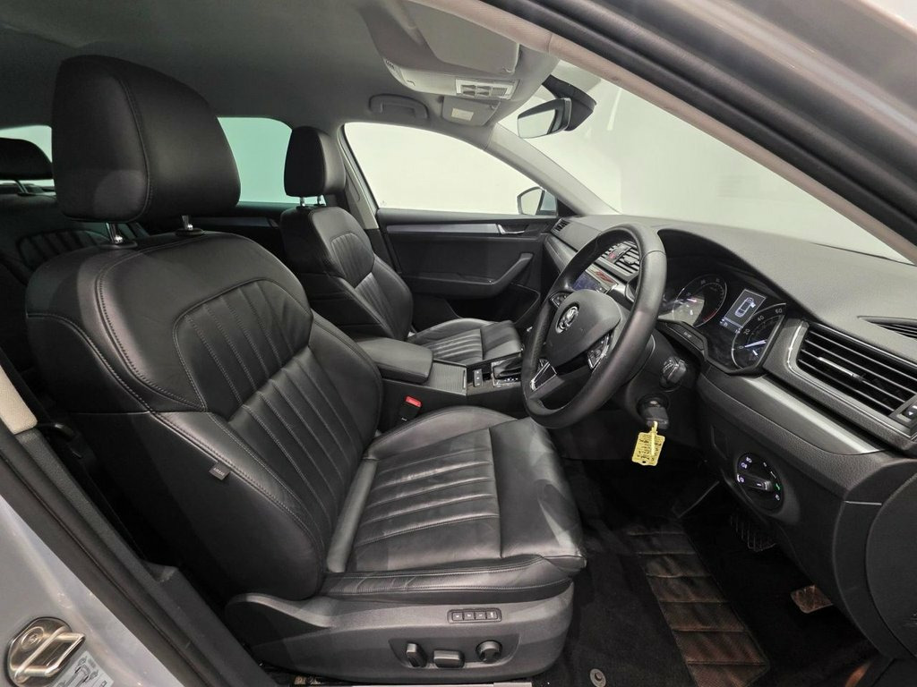 2 PREVIOUS KEEPERS + DOCUMENTED SERVICE HISTORY RECORD + AT SCREEN PRICE COMES WITH 12 MONTHS MOT AND ENGINE OIL SERVICE + EYE CATCHING PETROL BRILLIANT SILVER METALLIC PAINTWORK AND CONTRASTING FULL BLACK LEATHER UPHOLSTERY + ELECTRIC-MEMORY-HEATED FRONT SEATS WITH E/LUMBAR SUPPORT + MATT BRUSHED TITANIUM INTERIOR TRIM + DRIVING MODE SELECTION ( Economy- Normal- Sport- Individual ) + 18 INCH ALLOY WHEELS + ALUMINIUM ROOF RAILS AND EXTERIOR TRIM + TINTED GLASS AND DARKER REAR PRIVACY GLASS + STOP-START + SPORTS DIALS + MULTIFUNCTIONAL LEATHER STEERING WHEEL + DRIVER ASSIST + REAR ASSIST PARKING SYSTEM WITH ACOUSTIC AND VISUAL ON SCREEN WARNING + L.E.D. HEADLIGHTS WITH JET WASH AND L.E.D. DAYTIME RUNNING LIGHTS + ROAD SIGN RECOGNITION + SATELLITE NAVIGATION SYSTEM + VOICE CONTROL SYSTEM + BLUETOOTH CONNECTIVITY + SKODA CONNECT + SMARTLINK + ADAPTIVE CRUISE CONTROL + ON BOARD COMPUTER AND DRIVER'S INFORMATION SYSTEM + SKODA MULTIMEDIA- SD CARD-USB-AUX + DAB RADIO + AUTO DUAL ZONE CLIMATE CONTROL- AIR CONDITIONING + TYRE PRESSURE LOSS INDICATOR + AUTO LIGHTS, AUTO WIPERS, AUTO DIMMING REAR VIEW MIRROR + ARMRESTS WITH DRINKS HOLDER AND STORAGE + TEMPERATURE CONTROLLED FRONT ARMREST + AUTO HOLD BRAKES + POWER STEERING + REMOTE CENTRAL LOCKING + 4X ELECTRIC WINDOWS + HEATED AND POWER FOLDING E-DOOR MIRRORS + ALARM-IMMOBILISER + SUNVISORS WITH ILLUMINATED VANITY MIRRORS + RETRACTABLE BOOT SPACE LOAD COVER + THROUGH LOAD FACILITY + SUPERB EMBOSSED SILL KICK PLATES + E/TAILGATE ( Traffic Sign Recognition, Smart Light Assist, Leather - Black, Park Assist, Light Assist with High Beam Control, DCC - Dynamic Chassis Control, Media Command, Brilliant Silver, Crew Protection Assistant and Rear Side , Luggage Compartment - Retractable Parcel, Tri-Zone Climate Control, Waste Bin in Door Panel, Rear Backrest Release from Boot, LED Package Plus, Heated Front and Rear Seats, Partition Net Screen, Electrically Adjustable Front Seats, Heated Windscreen Washer Nozzles, Temporary Space Saver Spare Wheel - PJA, Heated Windscreen, 18in Alloy Wheels - Modus, 12V Socket on Central Console - Front an, 18in Alloy Wheels - Zenith, 3 Spoke Leather Sports Multi-Function St, 7 Airbags - Fron