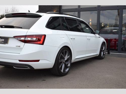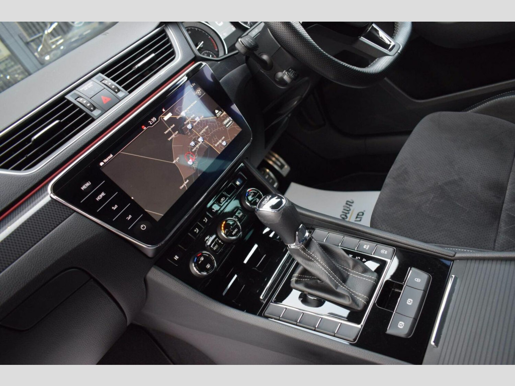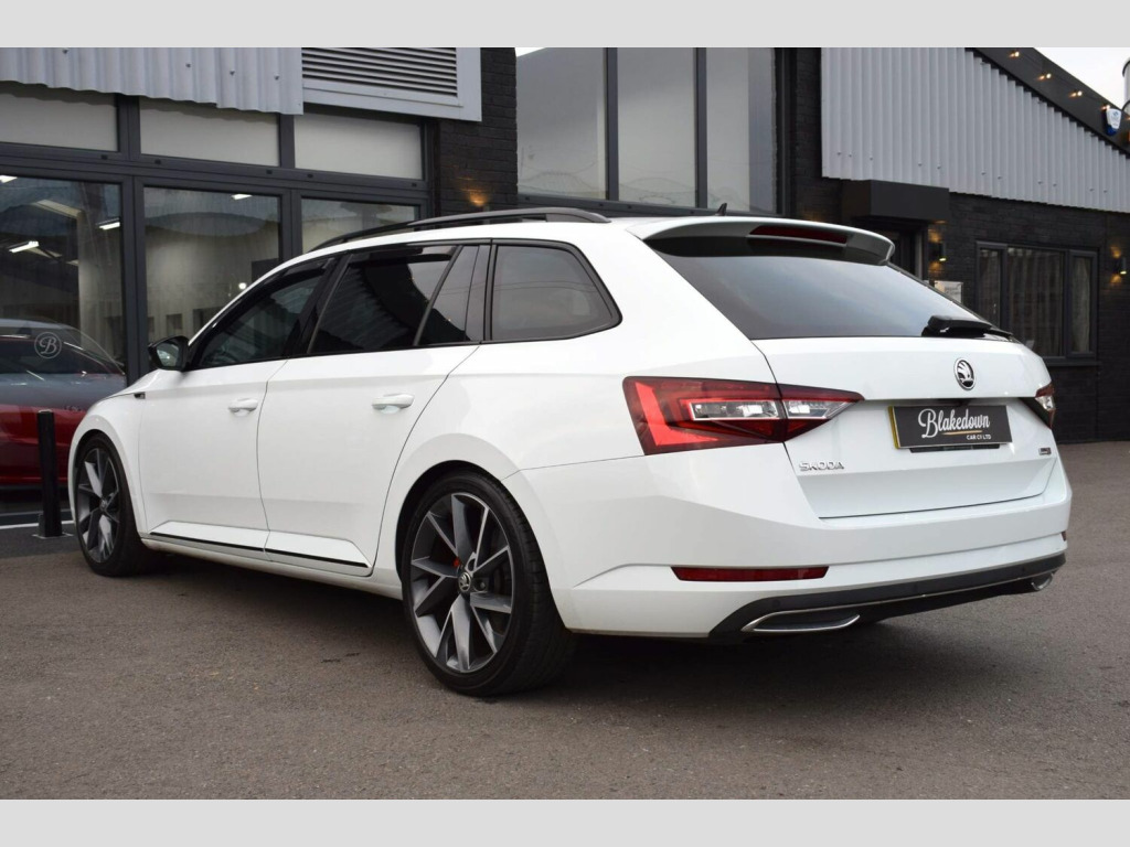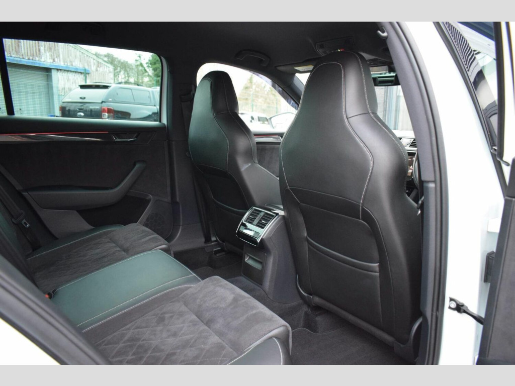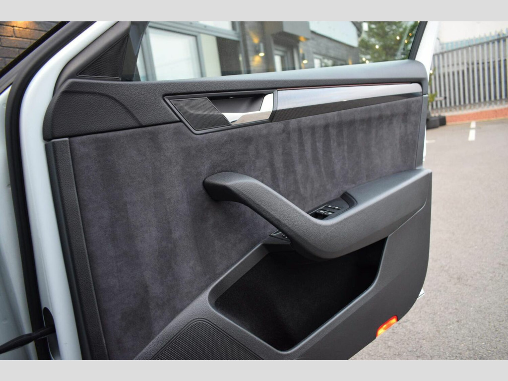 2018 18 SKODA Superb 2.0 TDI SportLine DSG Estate finished in Candy White with black leather/alcantara interior. 54850 miles covered which is supported by full main dealer service history with digital printout present. This enthusiast owned car has been very tastefully and subtly modified with a safe and reliable Celtic Tuning Stage 1 ECU calibration and accompanying DSG calibration with installation certificate present. This results in an impressive power output of around 200bhp and 288lb/ft torque. Supporting/additional upgrades include subtle lowering springs, wheel spacers for improved stance, wind deflectors and dynamic rear indicators. Presented in fantastic condition throughout and supplied with two keys, handbooks and all documentation etc. Very well equipped from factory with an impressive list of features including: Reversing Camera, Luggage Compartment - Retractable Parcel Shelf, 19in Vega Alloy Wheels, 3 Spoke Leather Supersport Multifunctional Steering Wheel with Silver Stitching, ACC - Adaptive Cruise Control, Amundsen Touchscreen Navigation System, Bi-Xenon Headlights - AFS and LED Daytime Running Lights, Bluetooth, Carbon Optic Interior Elements, Dual-Zone Air Conditioning, Electrically Adjustable Drivers Seat with Memory Function and Lumbar Support, Gloss Black Roof Rails, In-Car Voice Enhancement, Keyless Entry and Start-Stop System with SAFE System, LED Interior Light Package, Parking Sensors - Front and Rear, Privacy Glass, Rear LED Lights, SmartLink Plus, TPMS - Tyre Pressure Monitoring System, Two Umbrella Compartments in Driver and Front Passenger Doors with Umbrellas, USB Port and more.