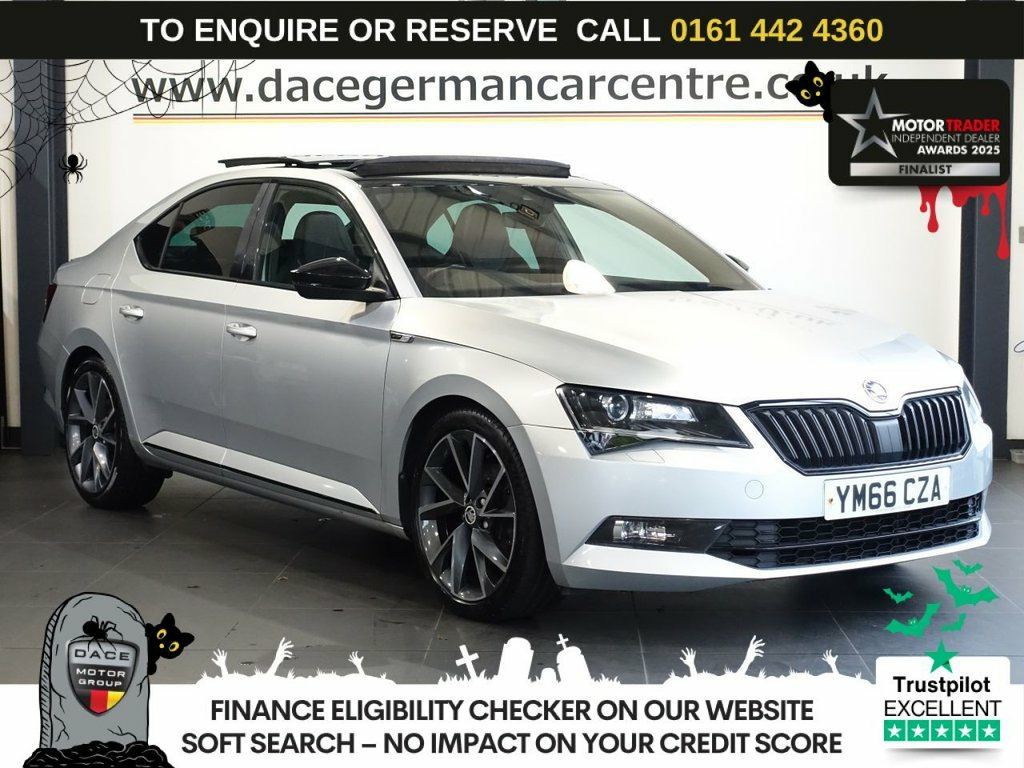 SKODA SUPERB TDI SPORTLINE FINISHED IN A STUNNING BRILLIANT SILVER AND BLACK HALF LEATHER INTERIOR COMING WITH FULL SERVICE HISTORY (8 SERVICES) INCLUDING A CAMBELT AND WATER PUMP CHANGE IN 2022, PANORAMIC ROOF, HEATED FRONT SEATS, SATELLITE NAVIGATION, ELECTRIC DRIVER SEAT ADJUSTMENT WITH MEMORY FUNCTION, HEATED FRONT WINDSCREEN, KEYLESS START, 19 INCH ALLOYS, PRIVACY GLASS, PARKING SENSORS, DAB DIGITAL RADIO, IN CAR ENTERTAINMENT, MULTI FUNCTION STEERING WHEEL, DUAL CLIMATE CONTROL, AIR CONDITIONING, ELECTRIC WINDOWS, ELECTRIC DOOR MIRRORS. •••••••••• F I N A N C E • A V A I L A B L E •••••••••• - *** NOT SURE YOU'RE ELIGIBLE FOR CAR FINANCE? *** CHECK TODAY USING OUR FREE CAR FINANCE CHECKER ON OUR WEBSITE.*** Dace Motor Group have a dedicated team of finance experts waiting to help with your enquiry. Over the past 30 years we have forged relationships with the country's largest and best finance houses. We are specialists in Hire Purchase (HP), Personal Contract Purchase (PCP) as well as assisting those with poor credit or previous credit problems - •••••••••• A B O U T • U S •••••••••• - At Dace German Car Centre, we are very proud to have been named the first Trading Standards Approved Car Retailer, with process and procedures developed with and a 12V Socket on Central Console - Front an, 19in Vega Alloy Wheels with Anti-Theft B, ACC - Adaptive Cruise Control, Aero Windscreen Wipers with Intermittent, Airbags, Alarm with Interior Monitoring - Tilt Se, Auto Dimming Rear View Mirror, Bi-Xenon Headlights - AFS and LED Daytim, Bluetooth, Brilliant Silver, Carbon Optic Interior Elements, Columbus Touchscreen Satellite Navigatio, Cornering Front Fog Lights, DAB Radio, Door Handles - Body Coloured, Drive Mode Selection, Driver Alert with Fatigue Sensor, Driver and Front Passenger Seatbelt Warn, Driving Mode Selection, Dual-Zone Air Conditioning with Humidity, Electrically Adjustable Drivers Seat wit, Electrically Adjustable Heated and Foldi,